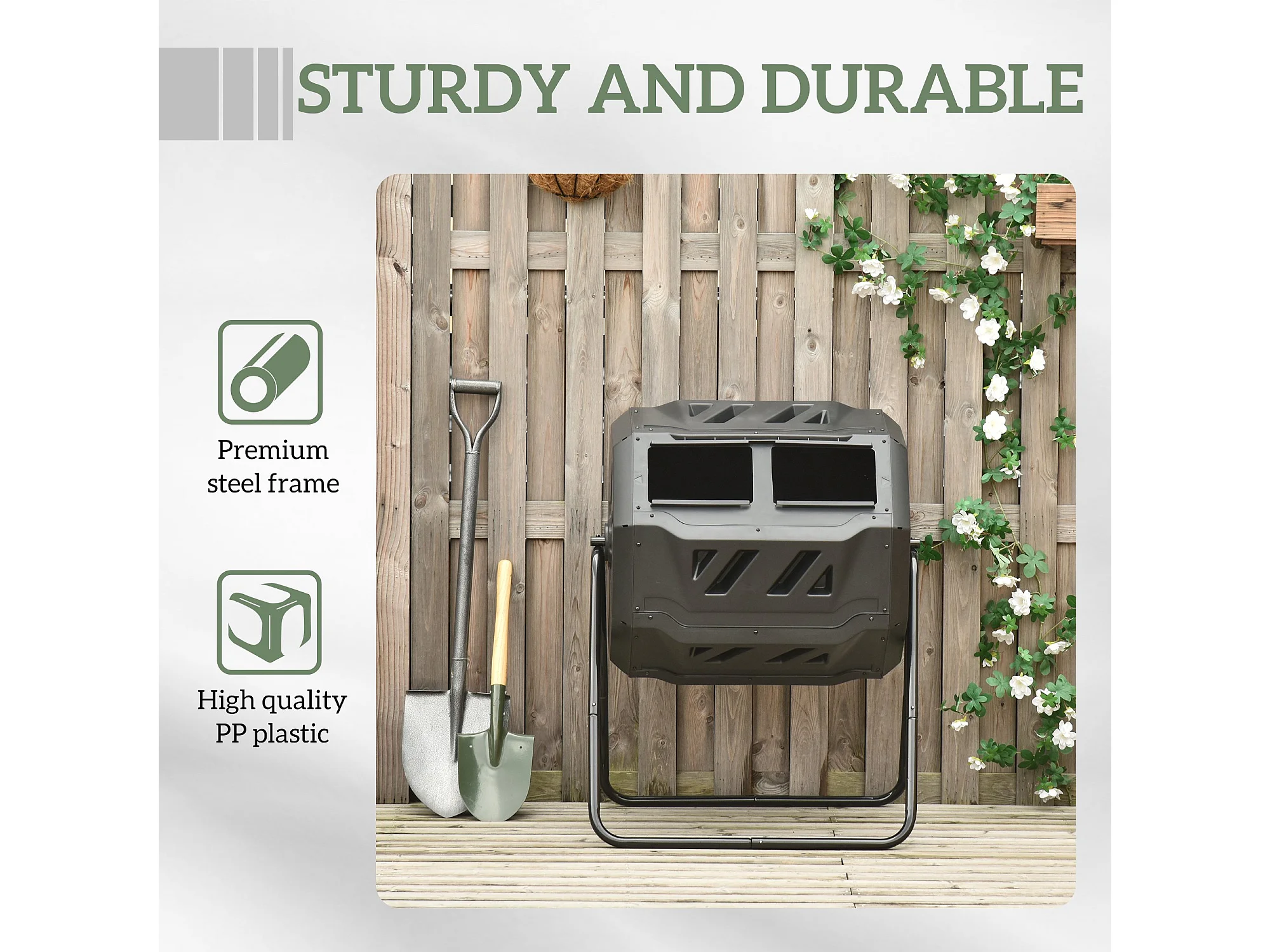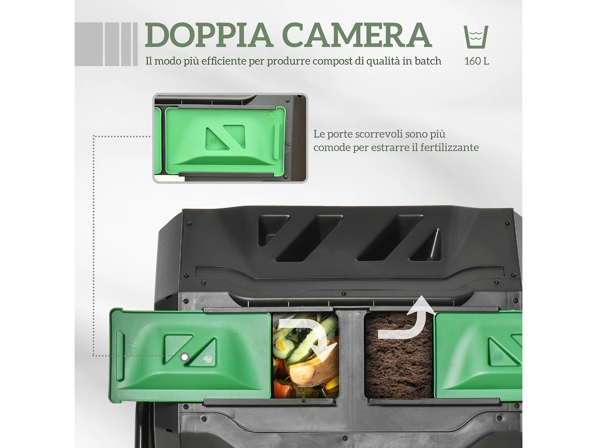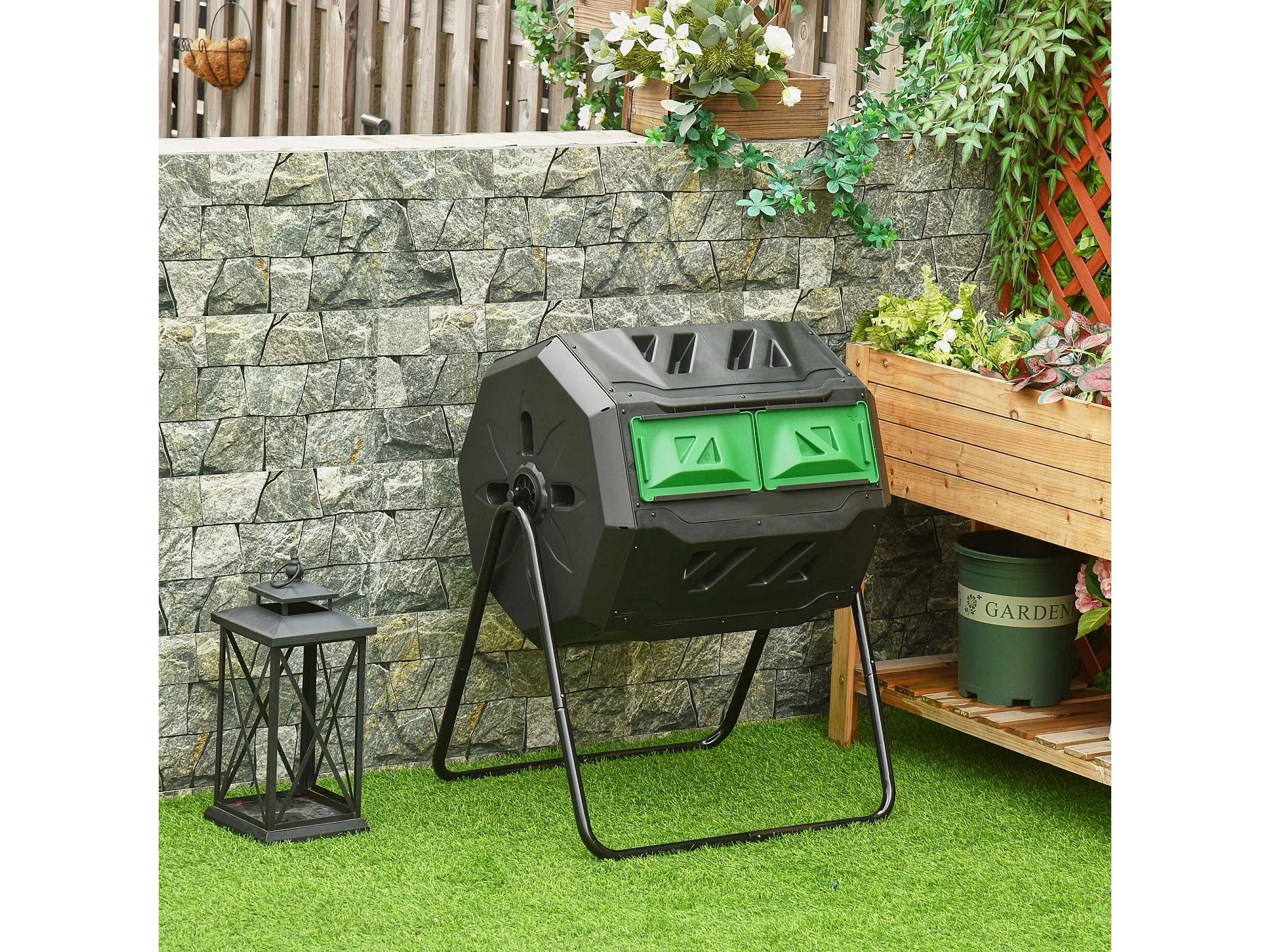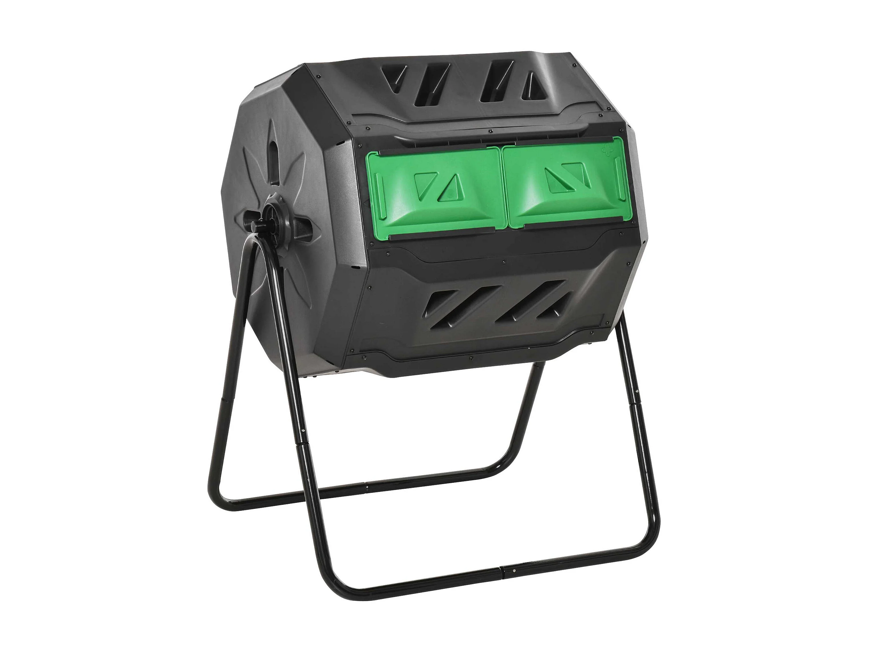 Compostiera da giardino girevole a 2 sezioni in acciaio e pp nero