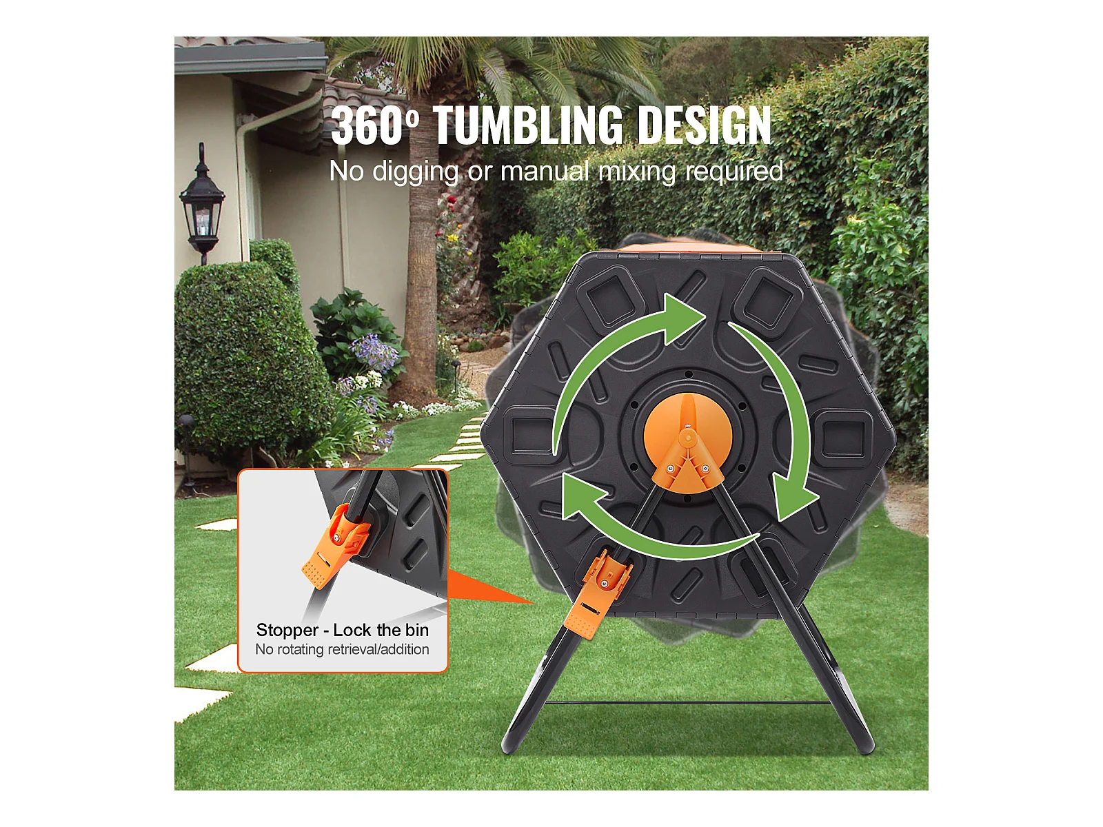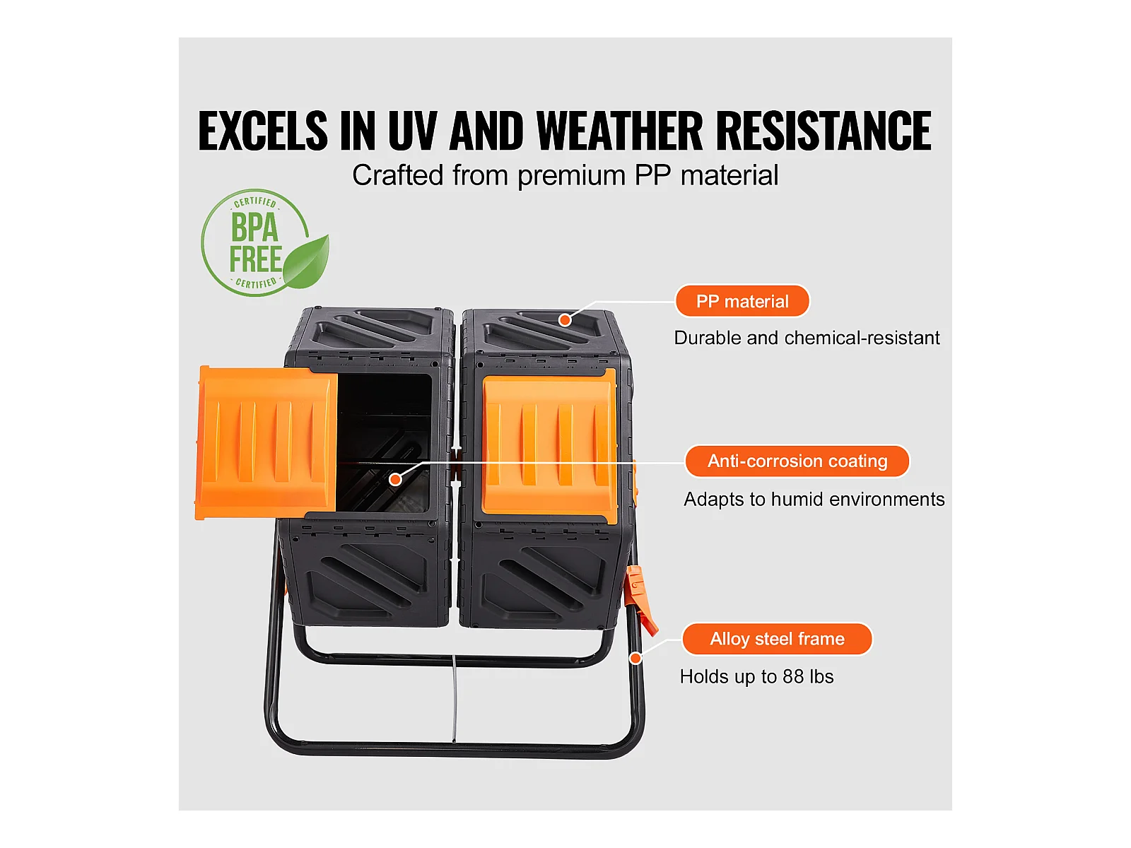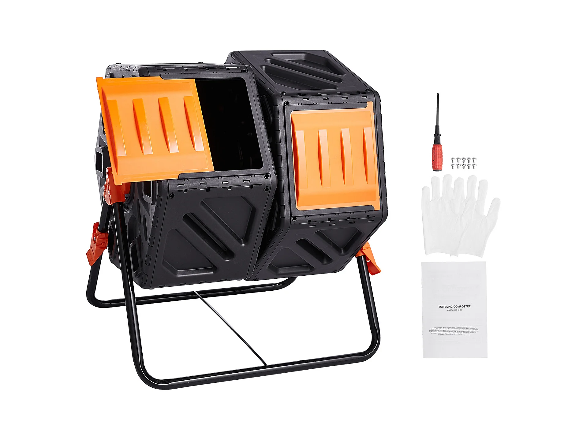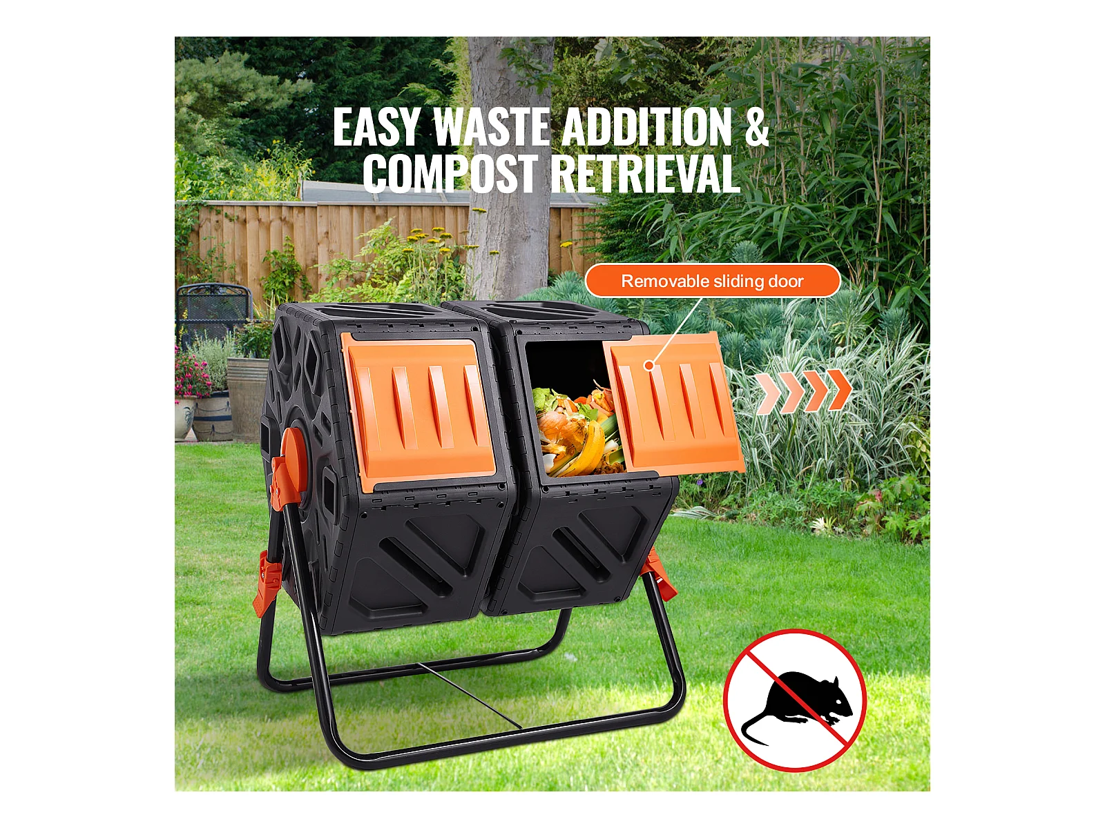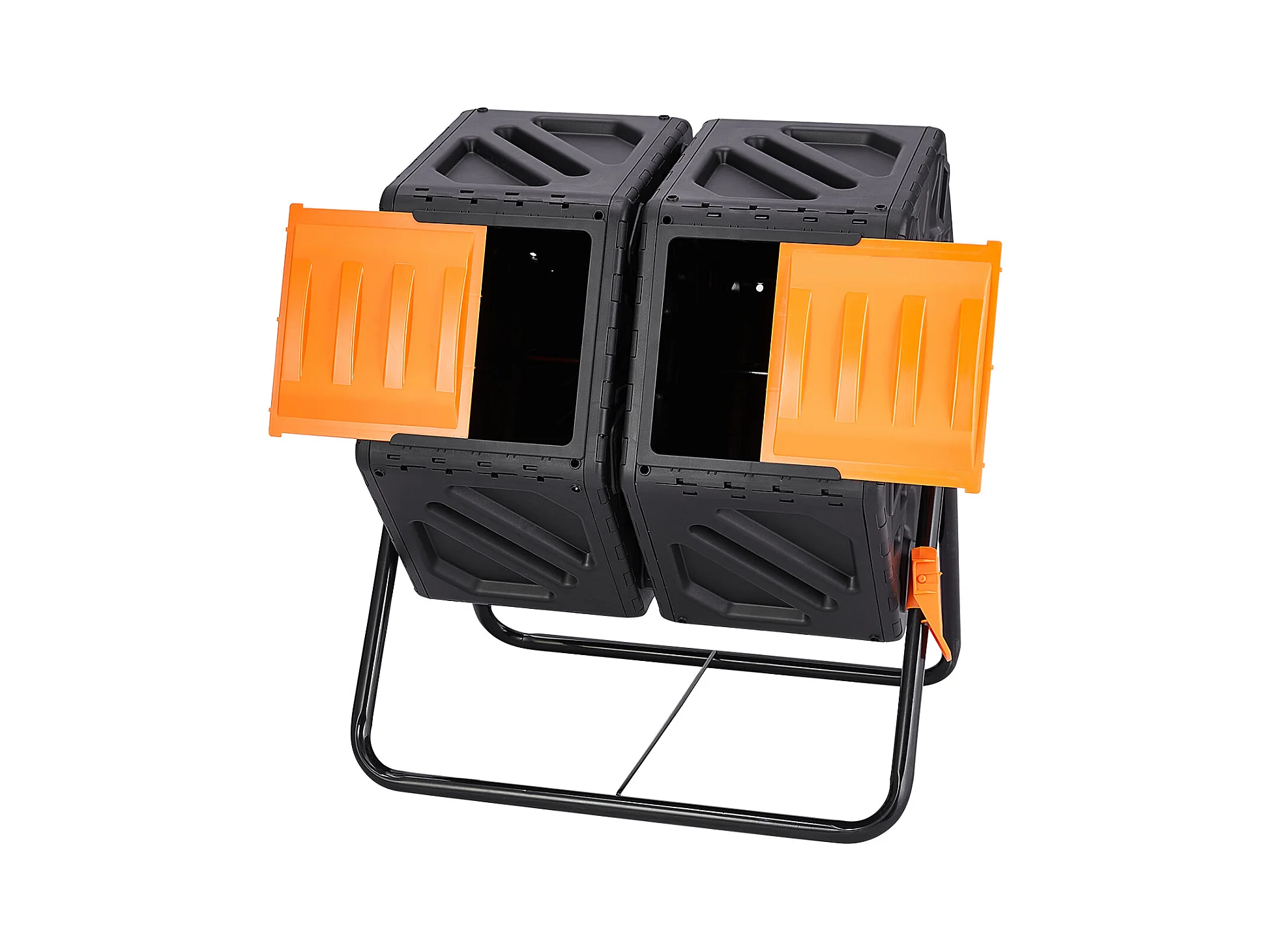 Compostiera SucceBuy a Doppia Camera da 43 Galloni, Tamburo Rotante con Porte Scorrevoli