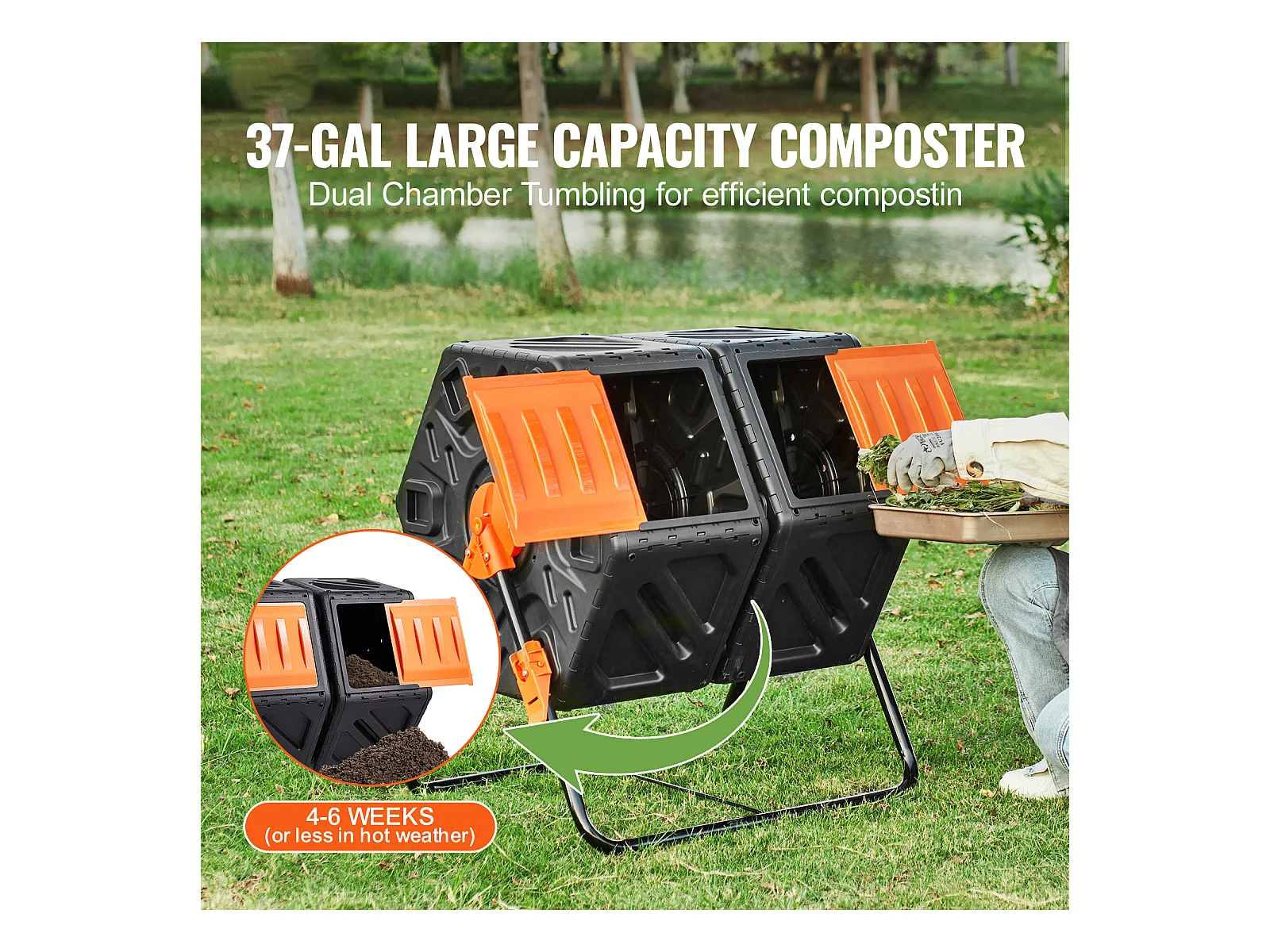 Compostiera SucceBuy a Doppia Camera da 37 Galloni, Tamburo Rotante con Porte Scorrevoli