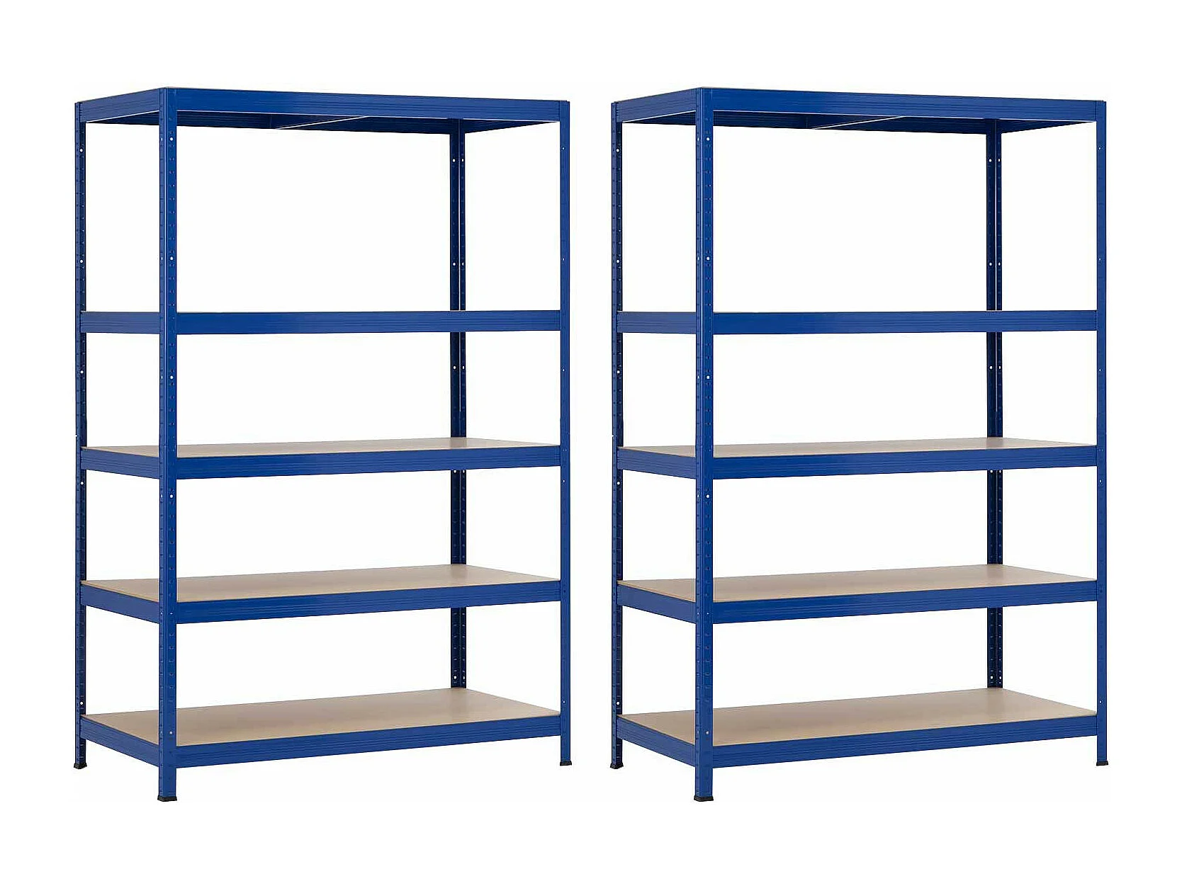 Confezione 2 Scaffali Modulari con 5 Ripiani Regolabili 180x120x60cm 1250Kg Blu Thinia Home