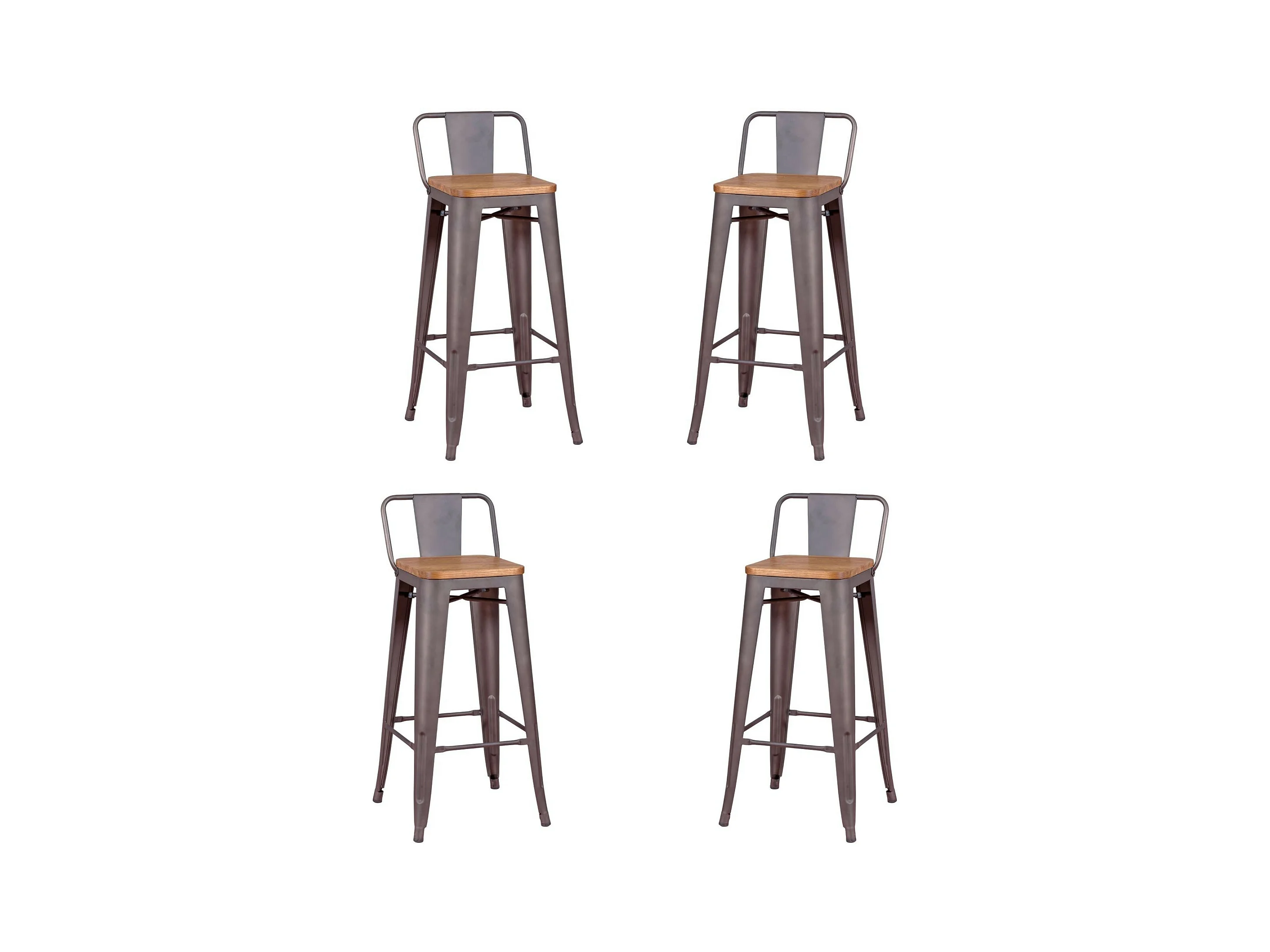 Confezione da 4 sgabelli in metallo con sedute in legno - Bistro - Antico