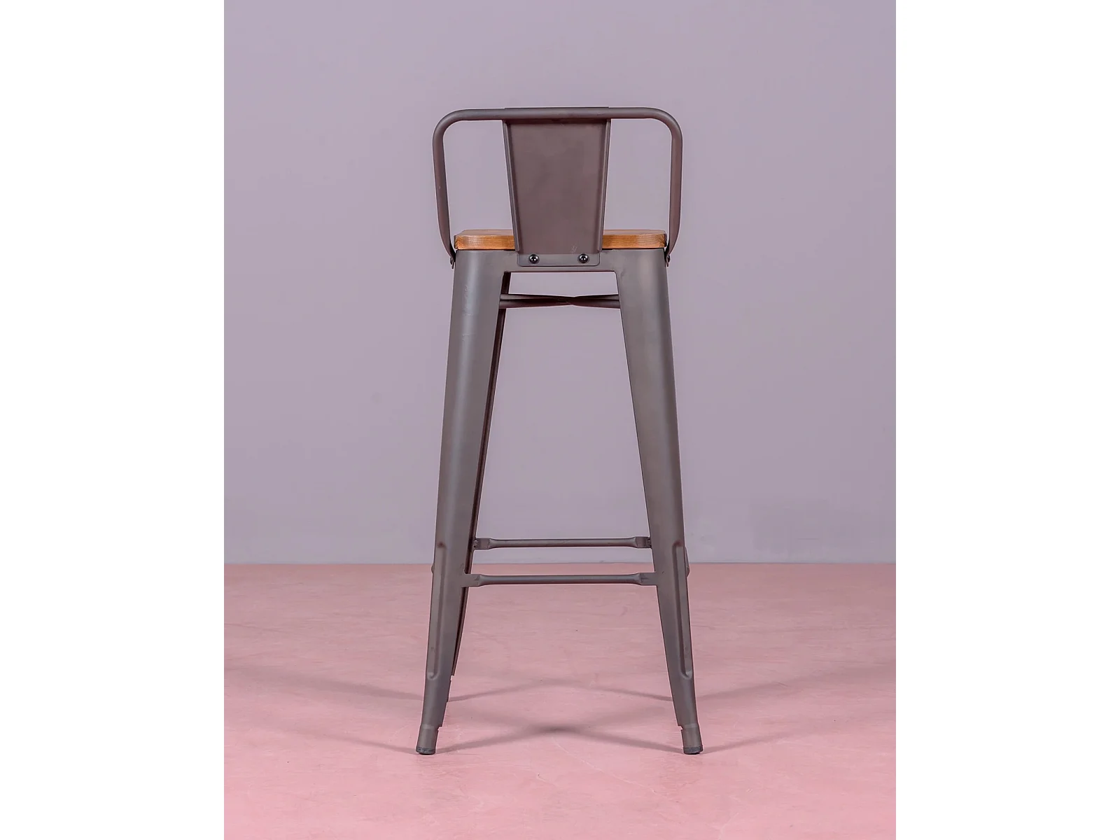 Sgabello industriale in acciaio invecchiato con schienale basso e seduta in legno - Bistro - Antico