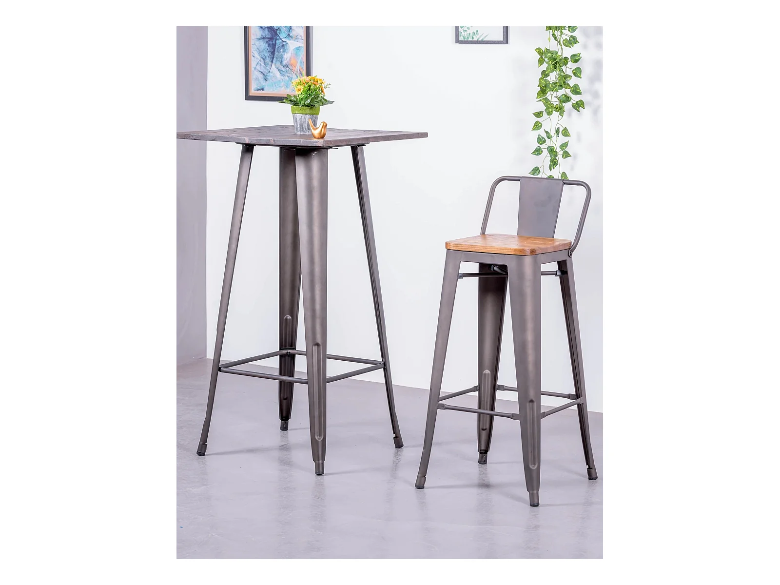 Sgabello bistrot design industriale MCW-A73 legno metallo verniciato grigio