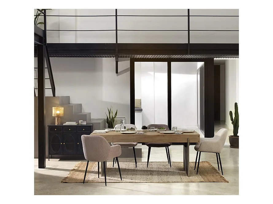 Tavolo da pranzo 6 persone in Legno di hevea e Metallo Nero Naturale chiaro - COMULIA