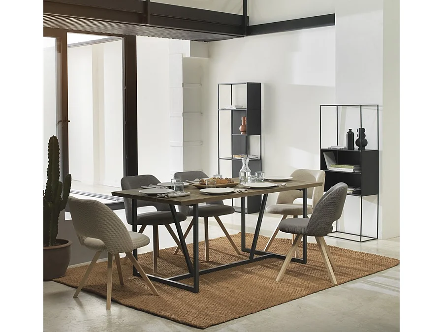 Tavolo da pranzo 6 persone in Legno di hevea e Metallo Nero Naturale chiaro - COMULIA