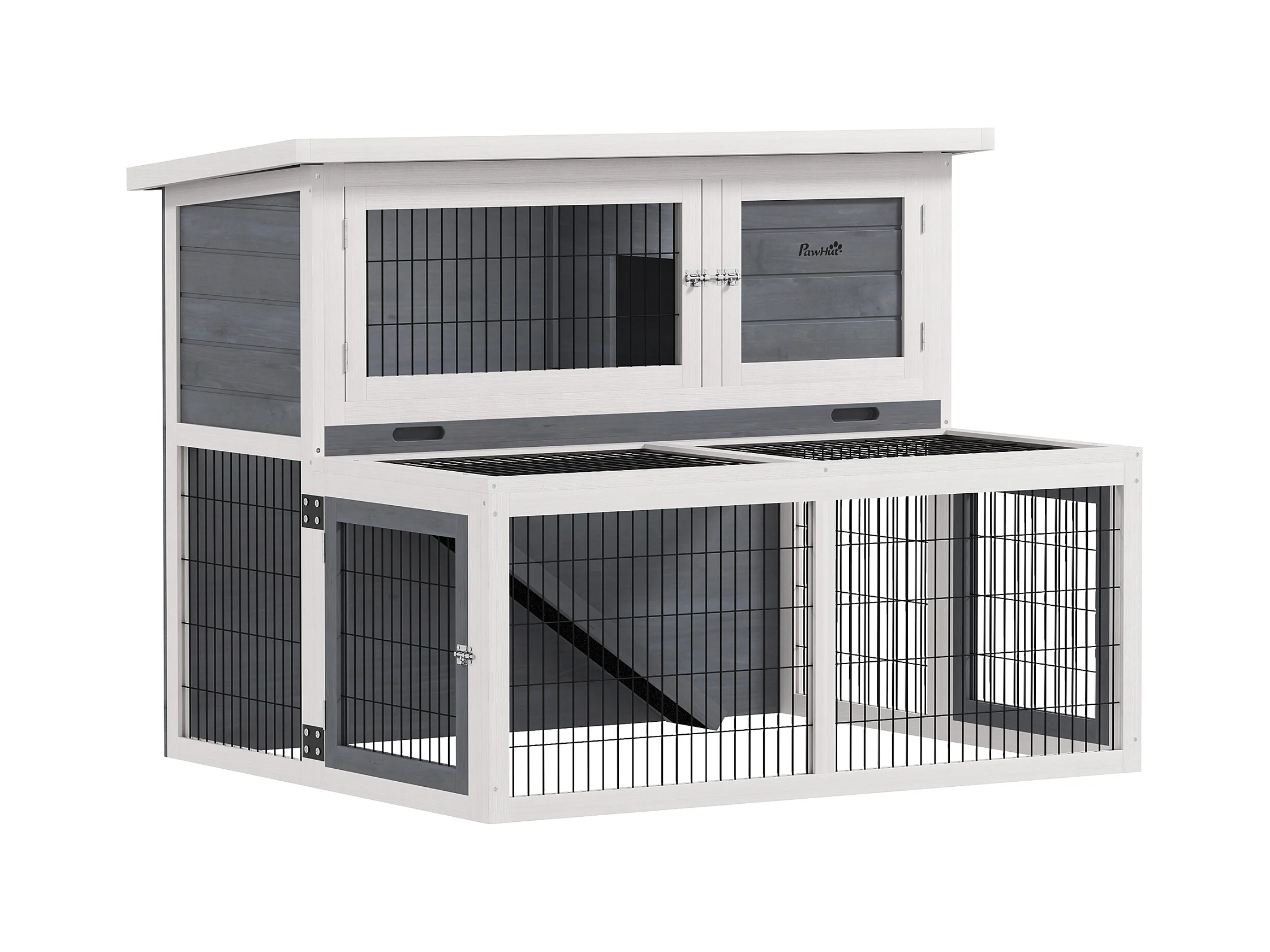 Conigliera a 2 livelli con rampa e 3 vassoi grigia e bianca