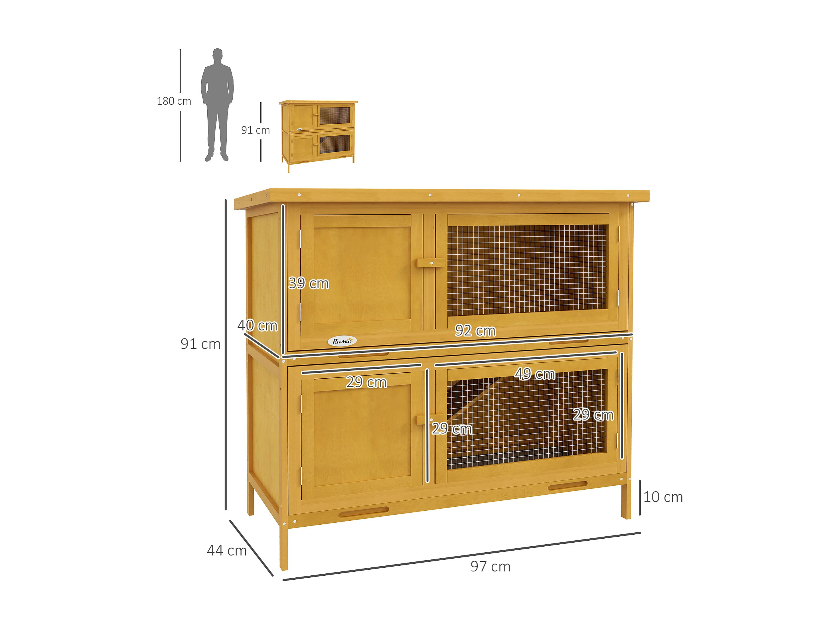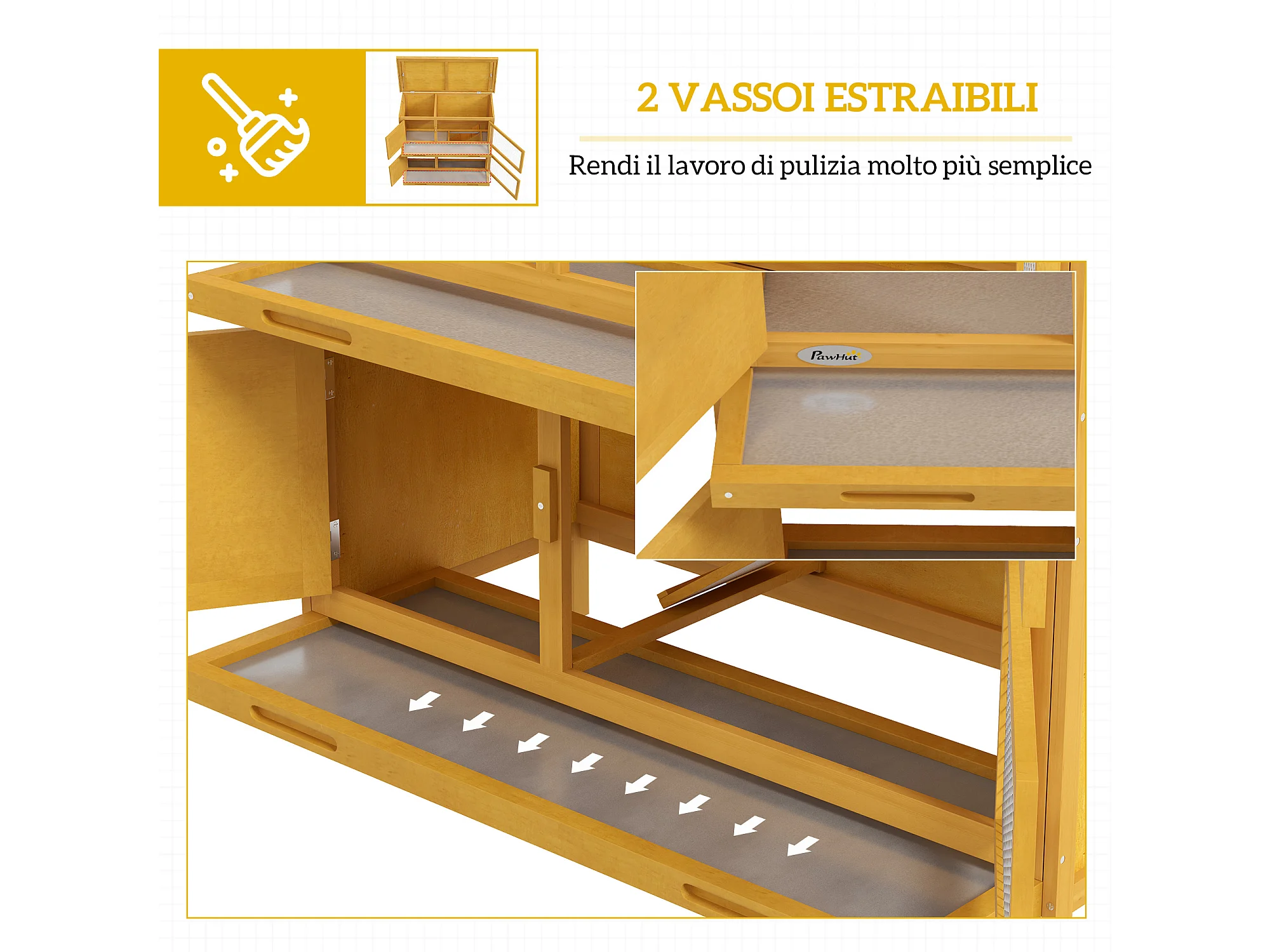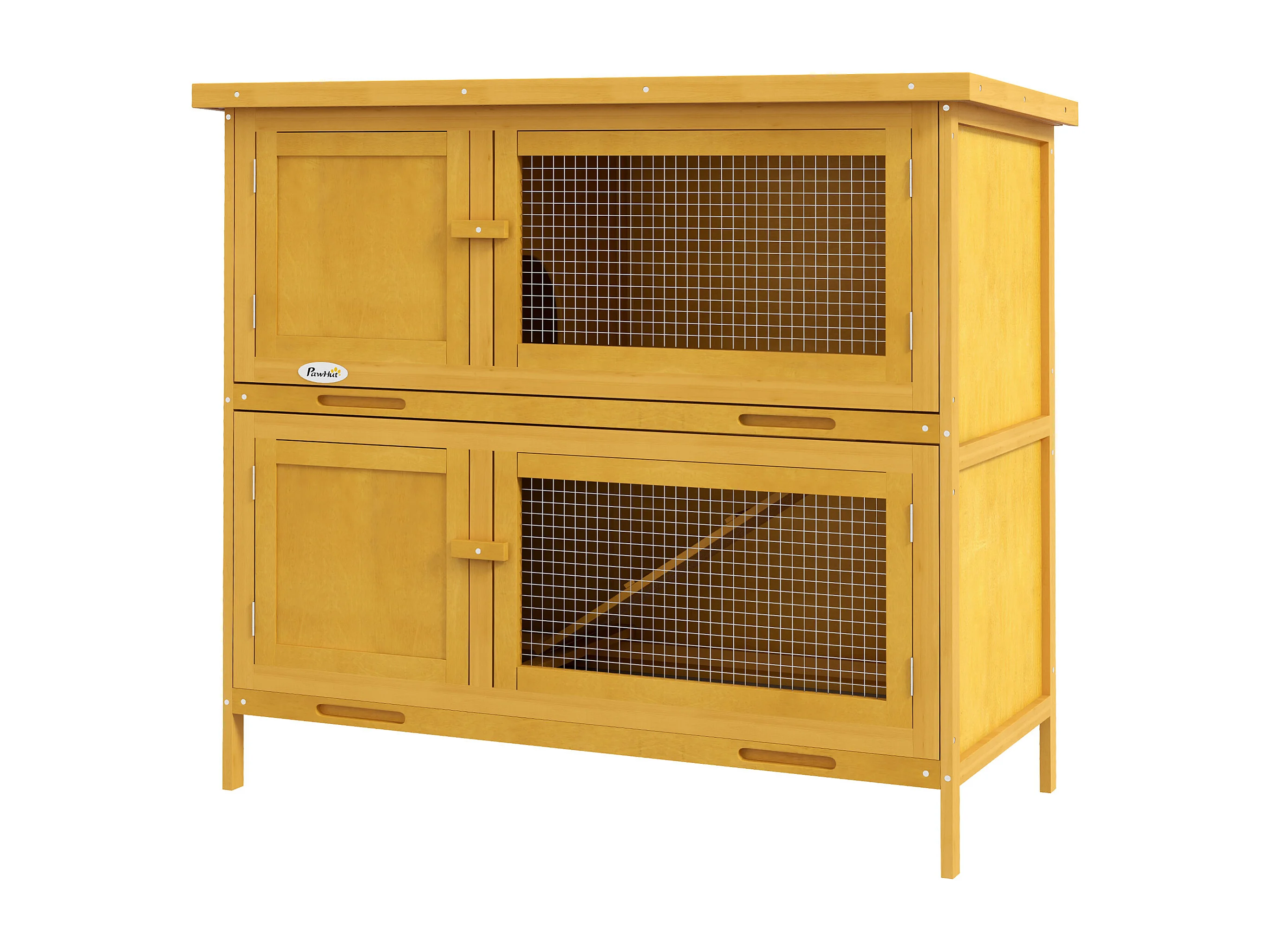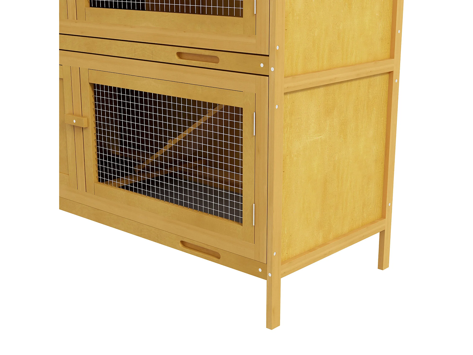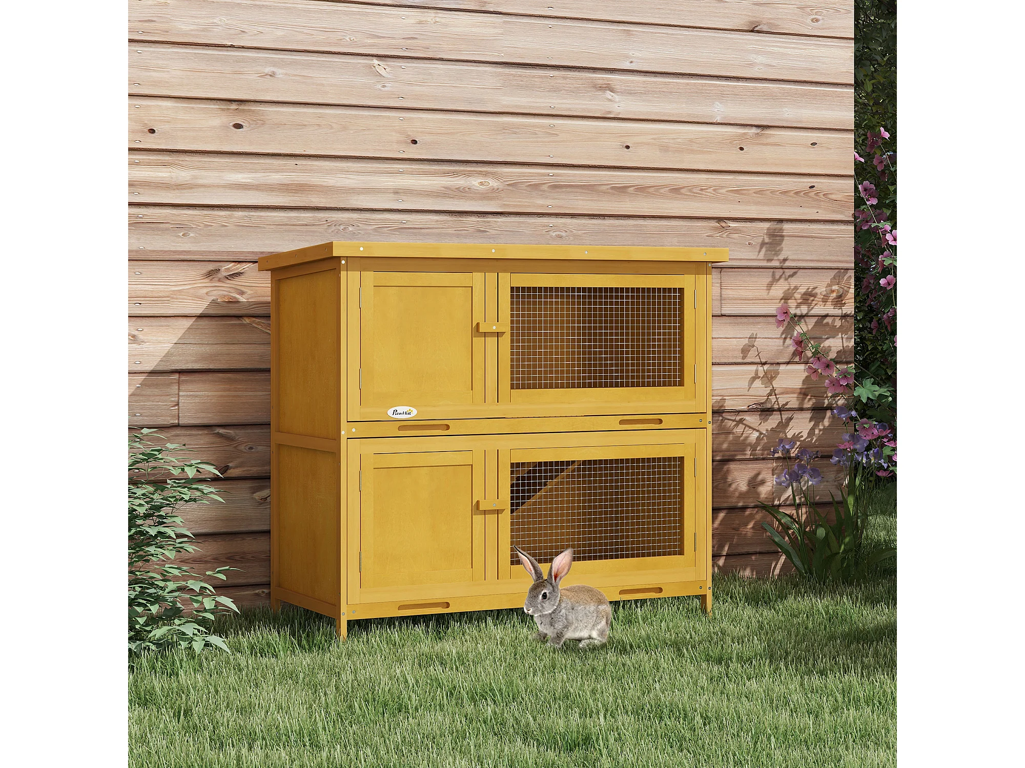 Conigliera a 2 livelli con rampa in legno di abete giallo
