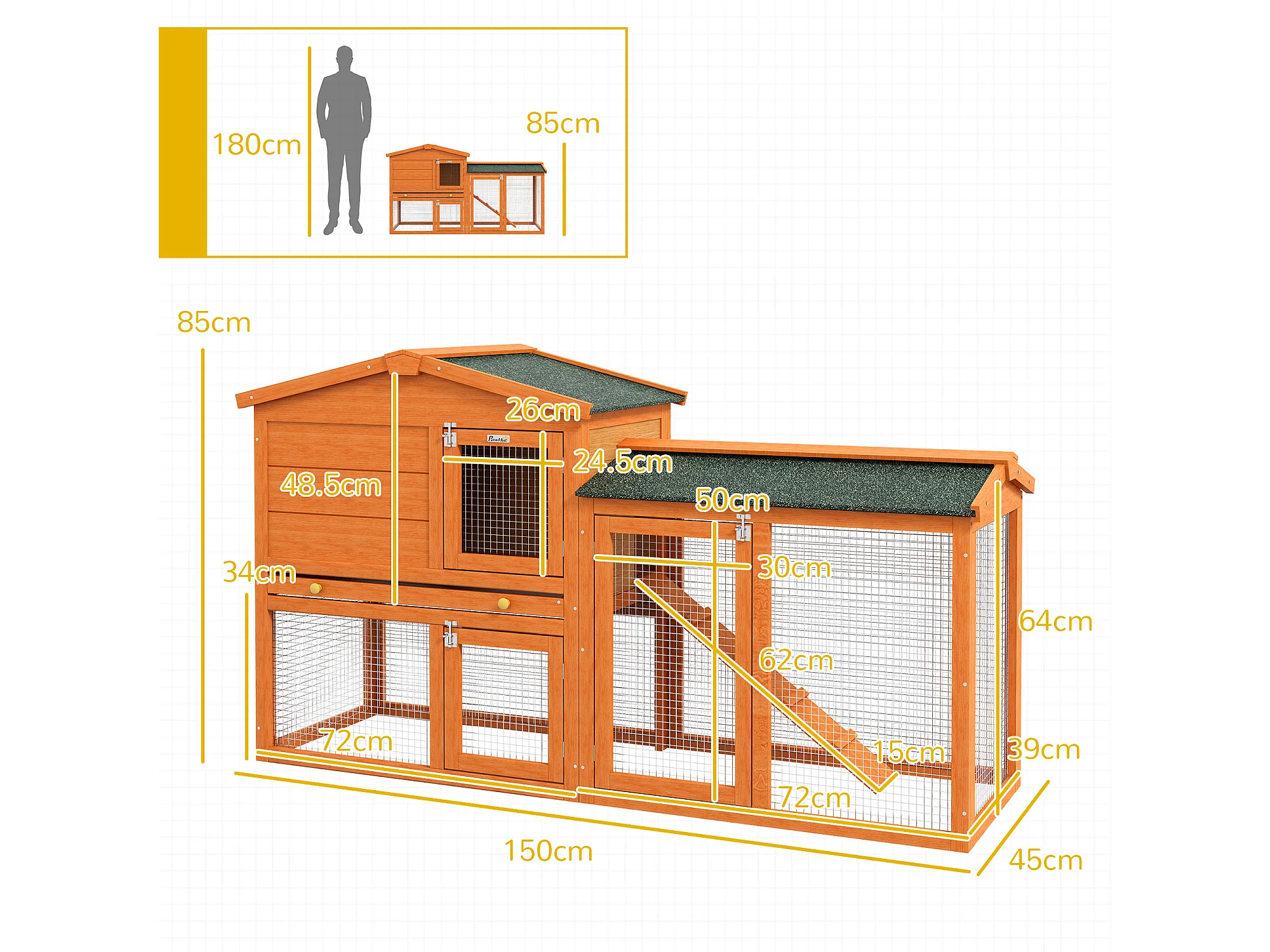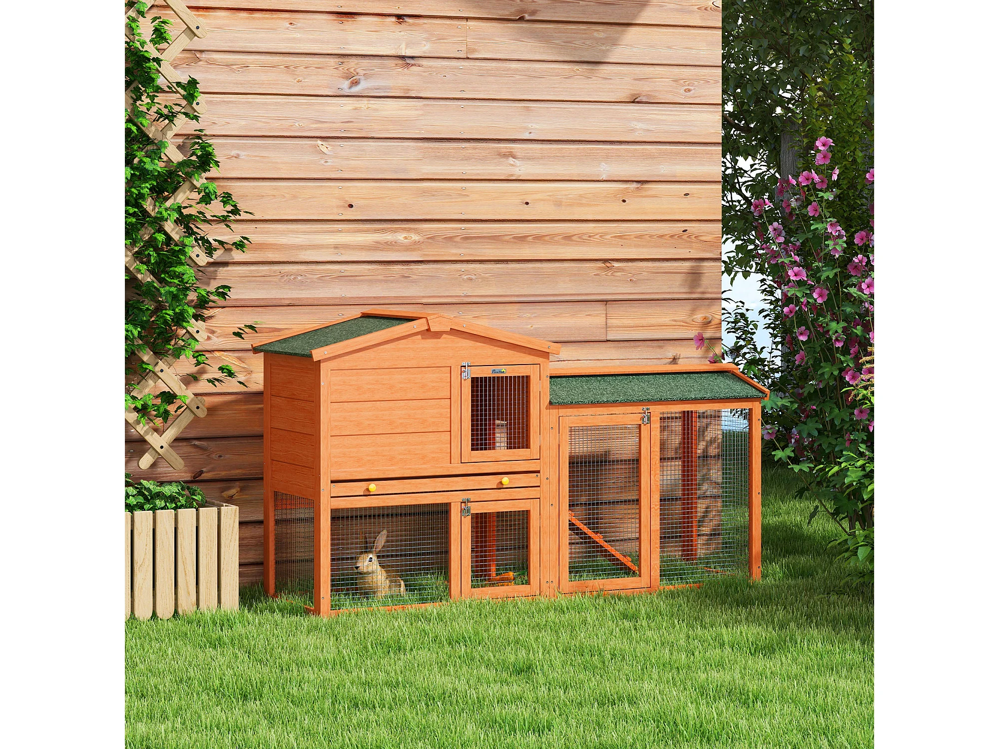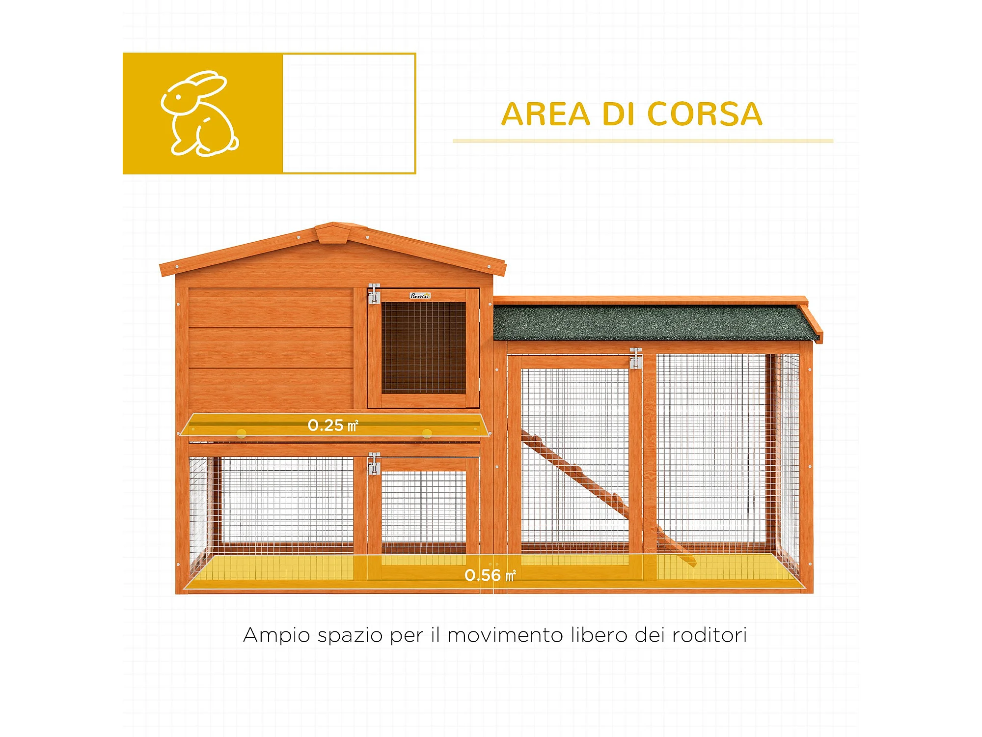 Conigliera da esterno 2 livelli in legno con casetta per 1-2 conigli