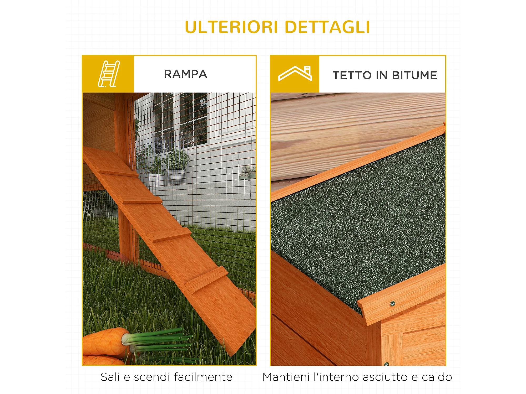 Conigliera da esterno con casetta e 2 recinti in legno 309x69.5x87cm