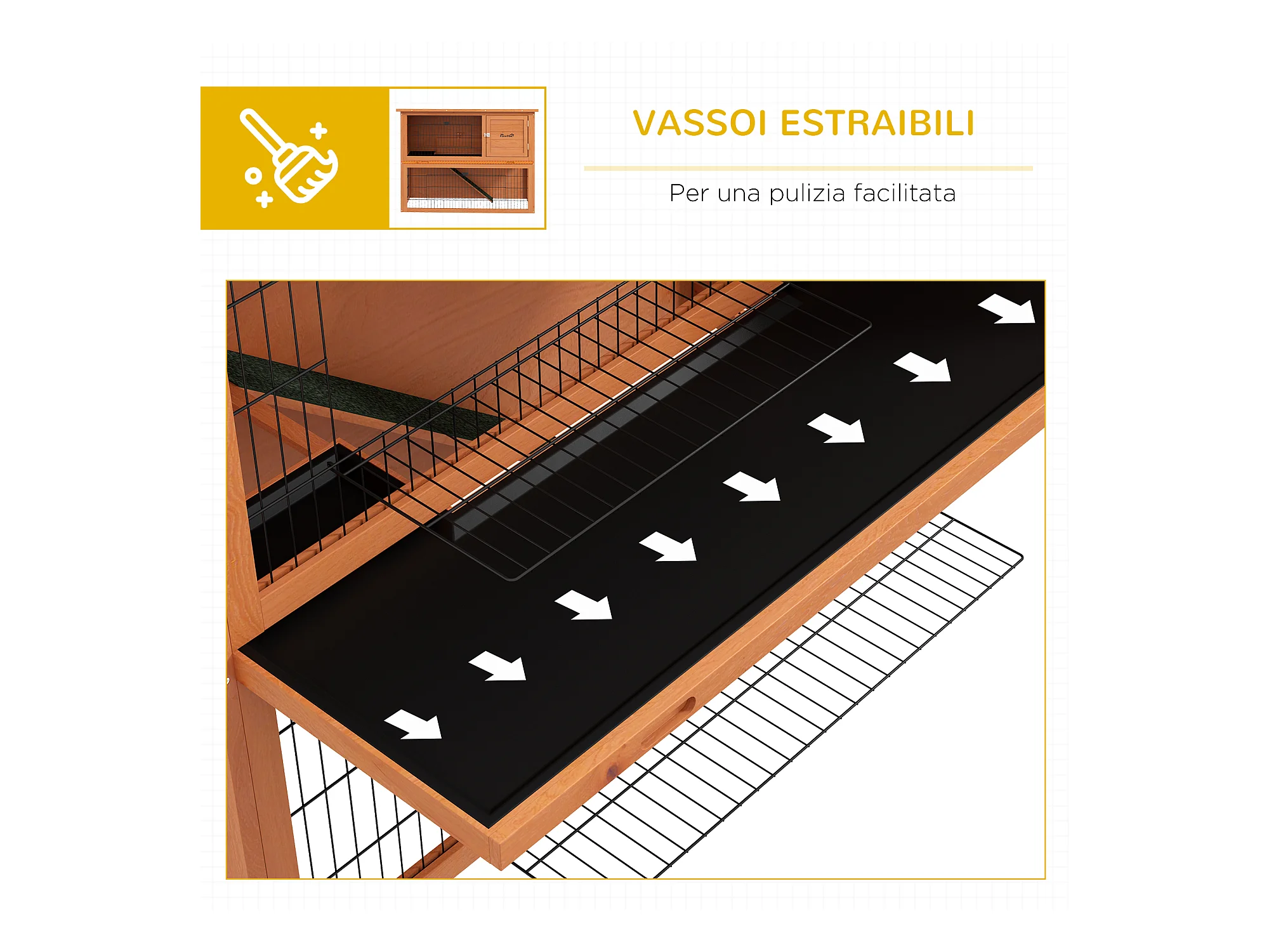 Conigliera in legno 2 piani con casetta rampa e vassoio estraibile