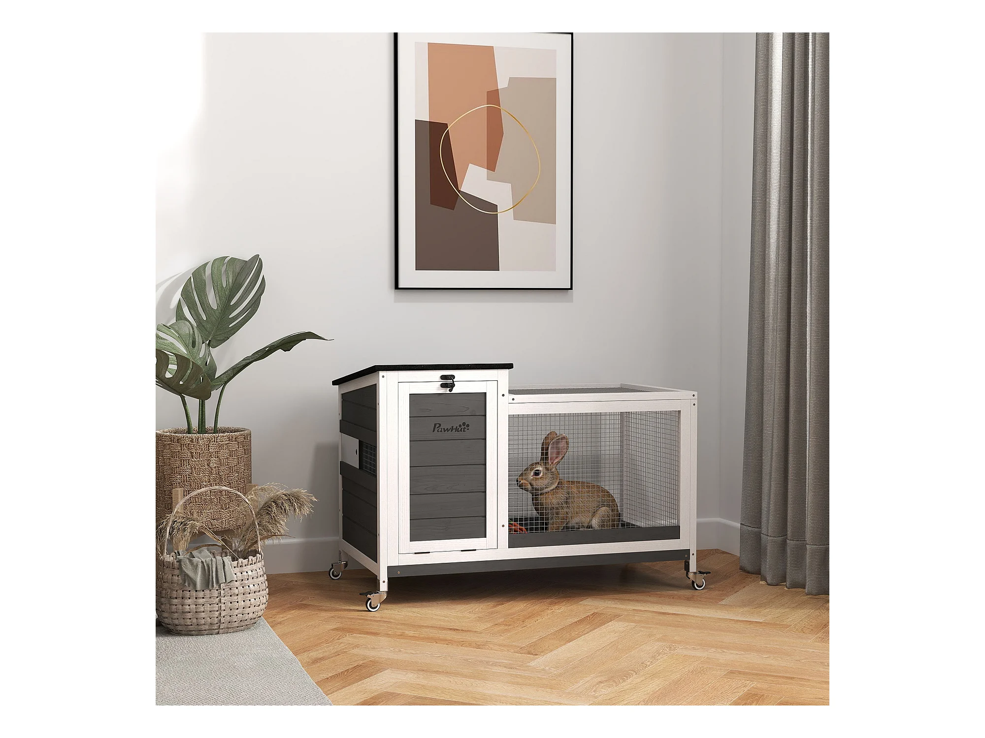Conigliera in legno con casetta e area aperta per 1 coniglio 90x53x50cm