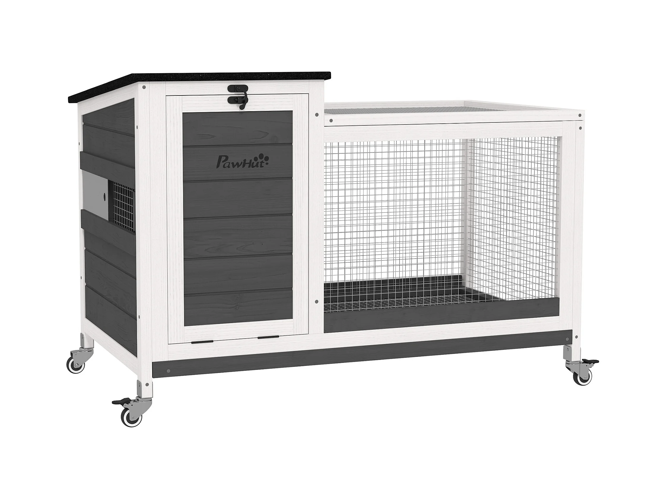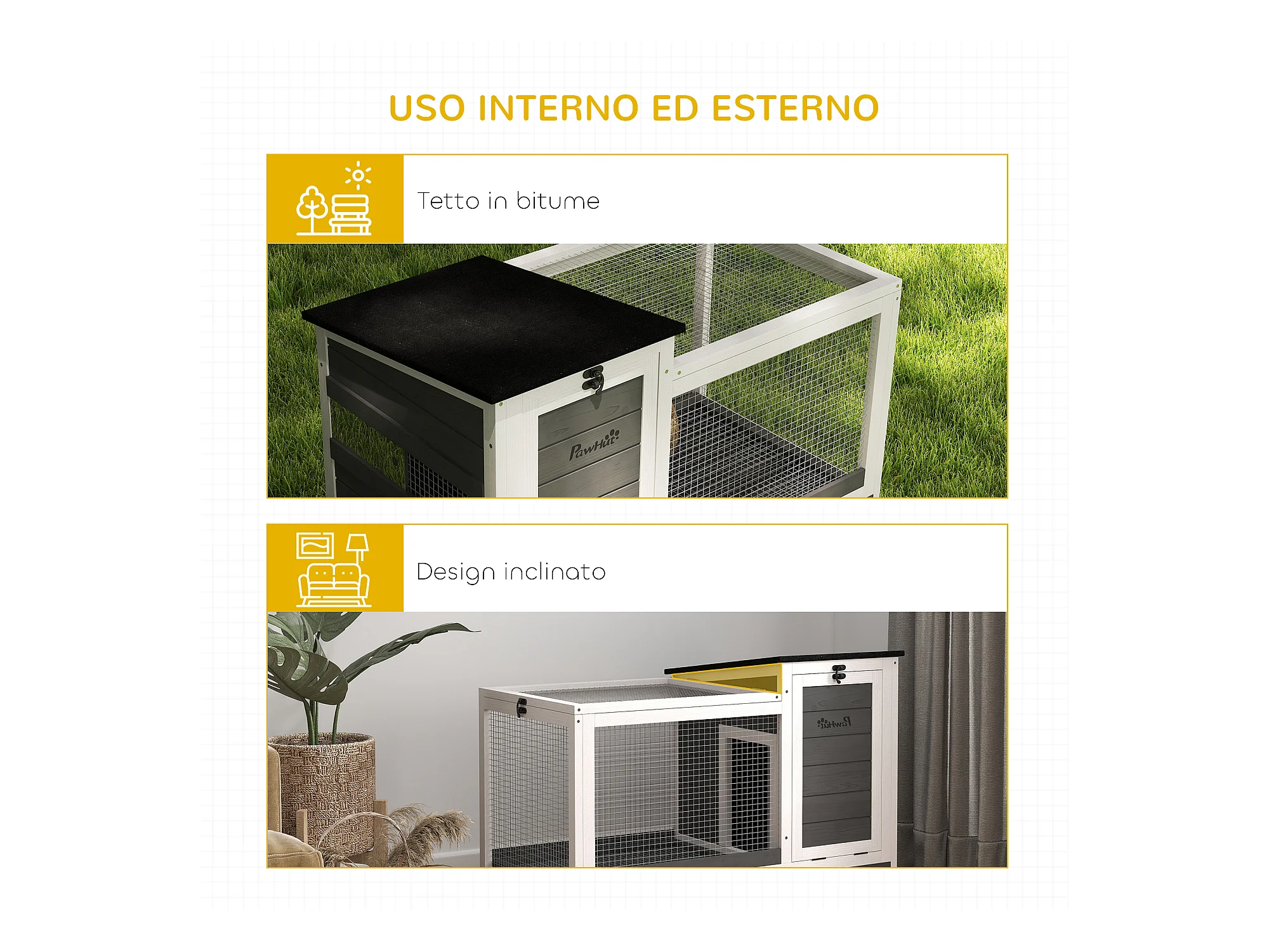Gabbia per conigli e roditori conigliera da esterno in legno grigio