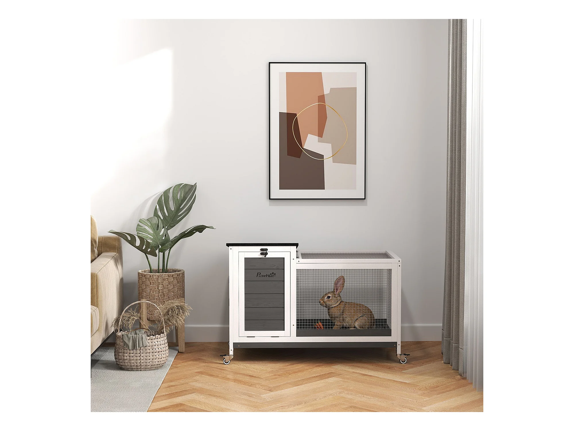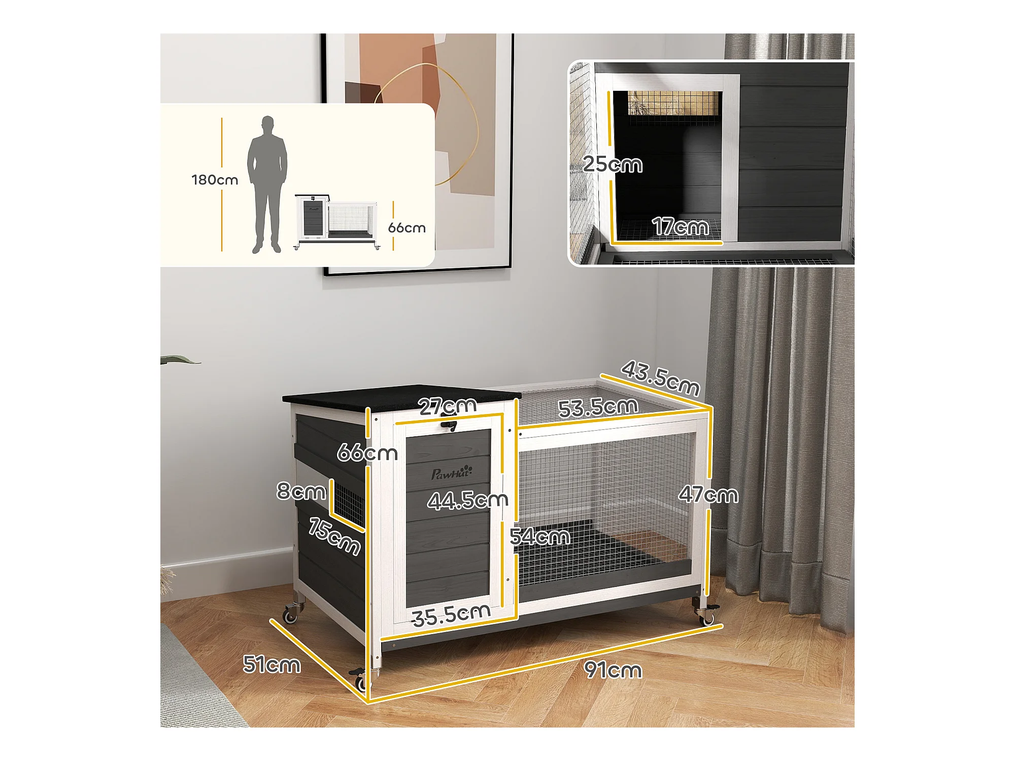 Gabbia per conigli e porcellini d'india, 4 ruote, casetta e rampa, legno