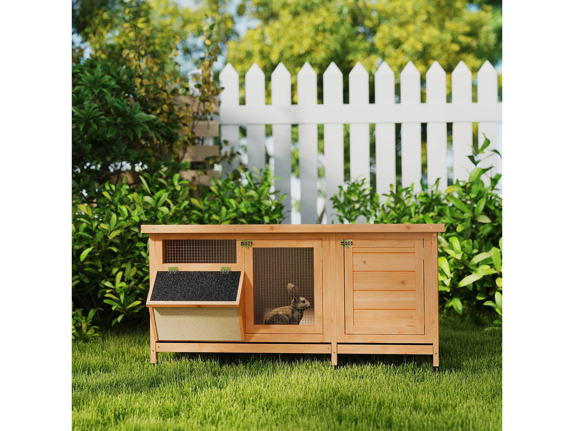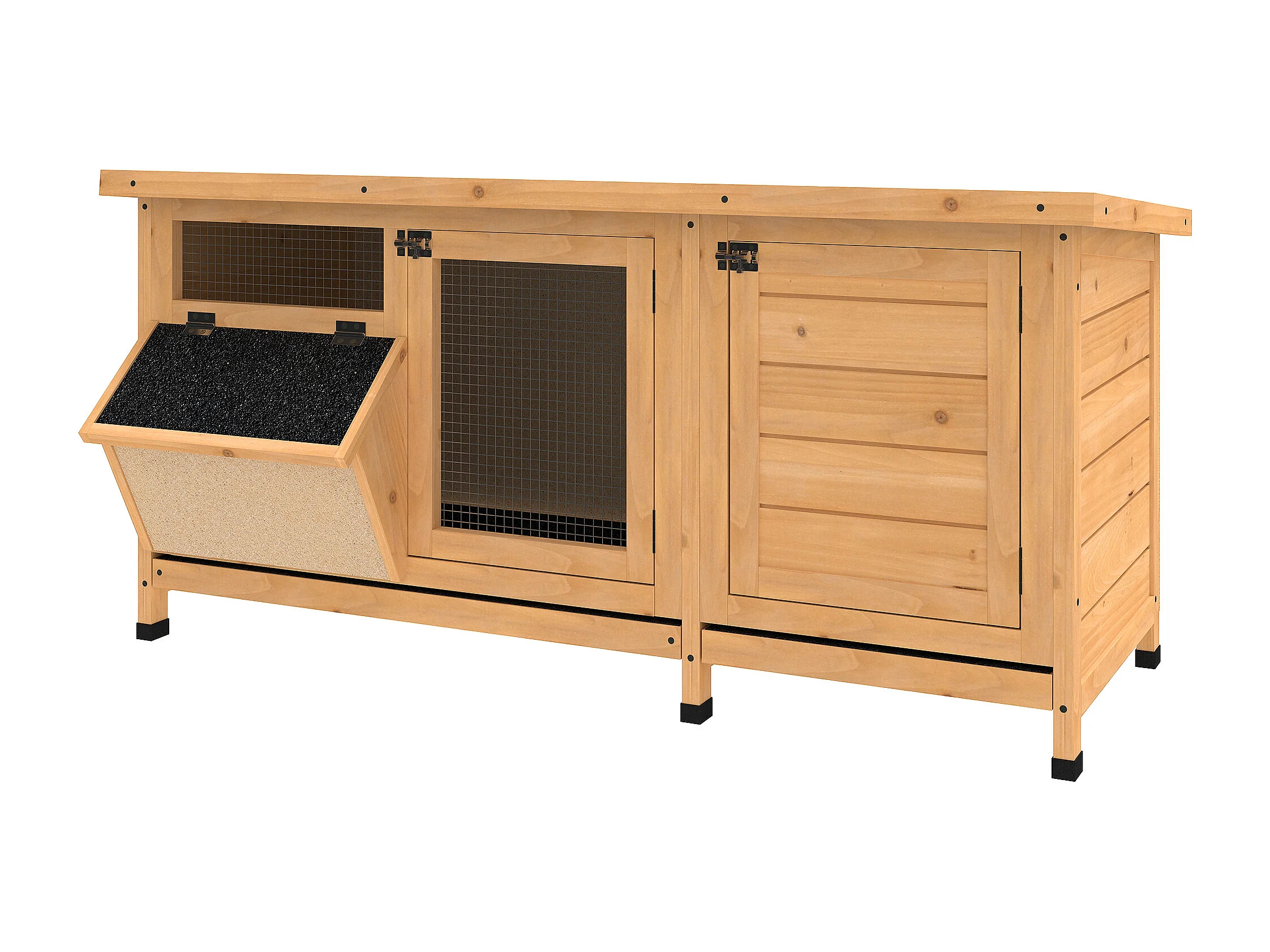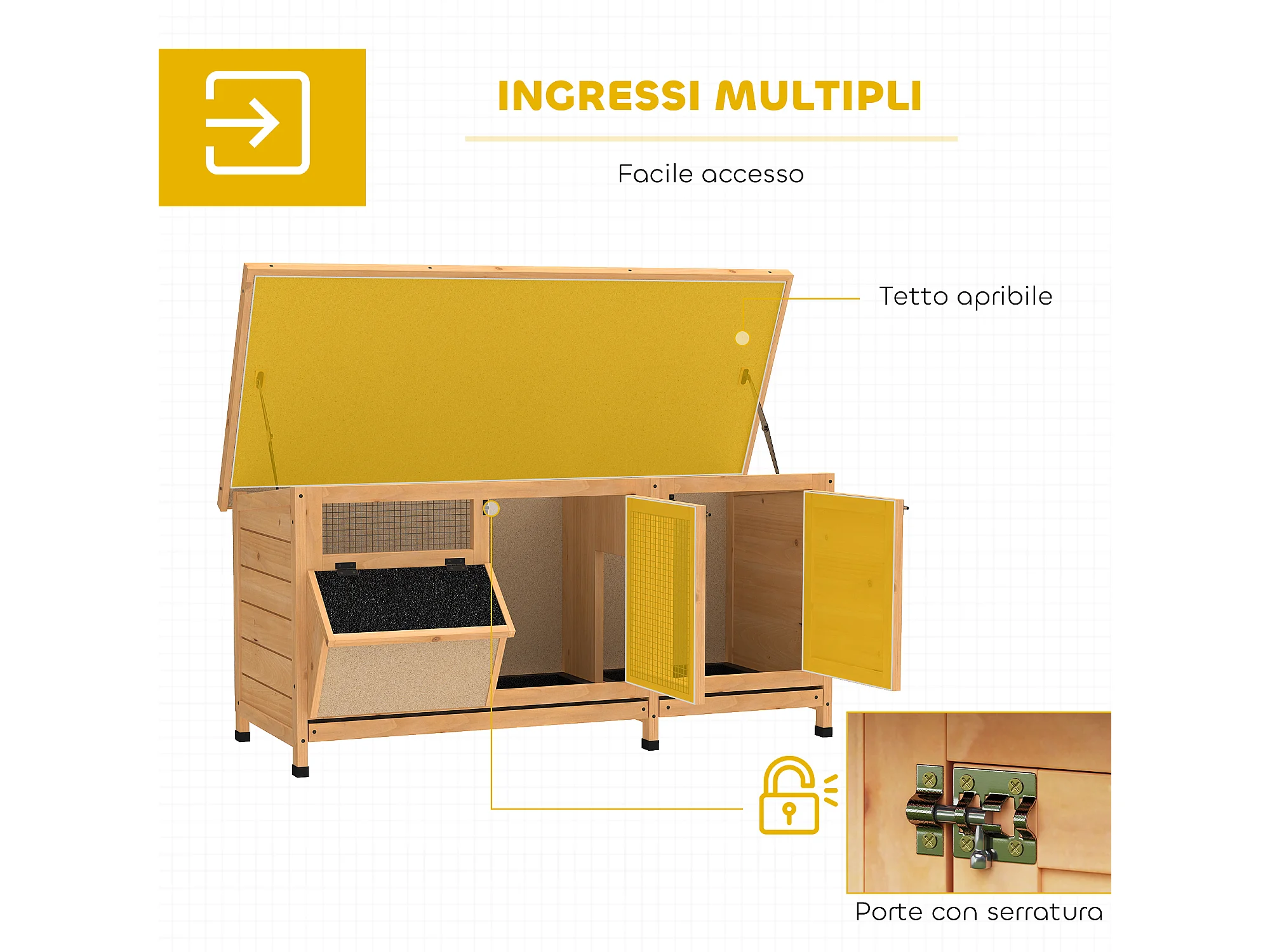Conigliera da esterno con mangiatoia e vassoi estraibili giallo
