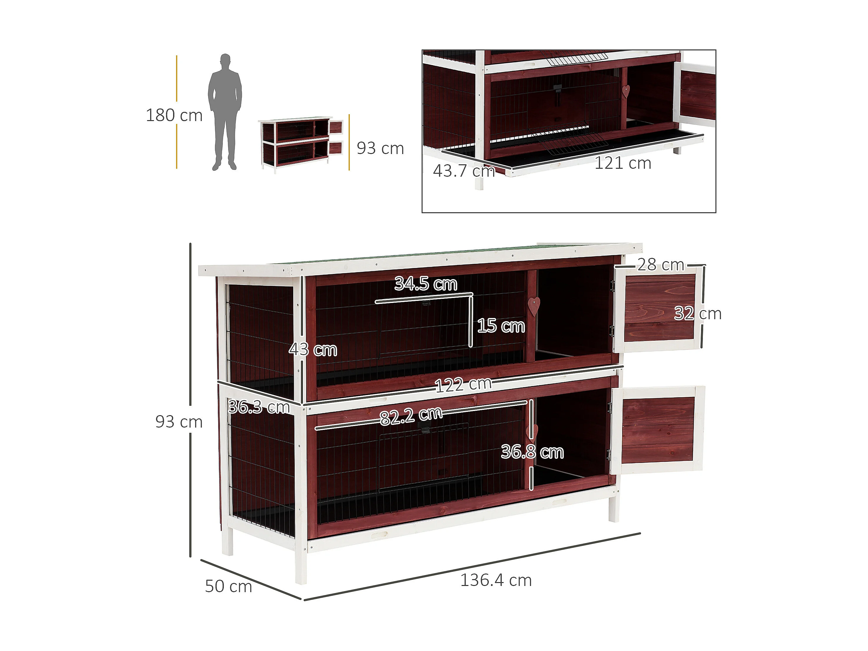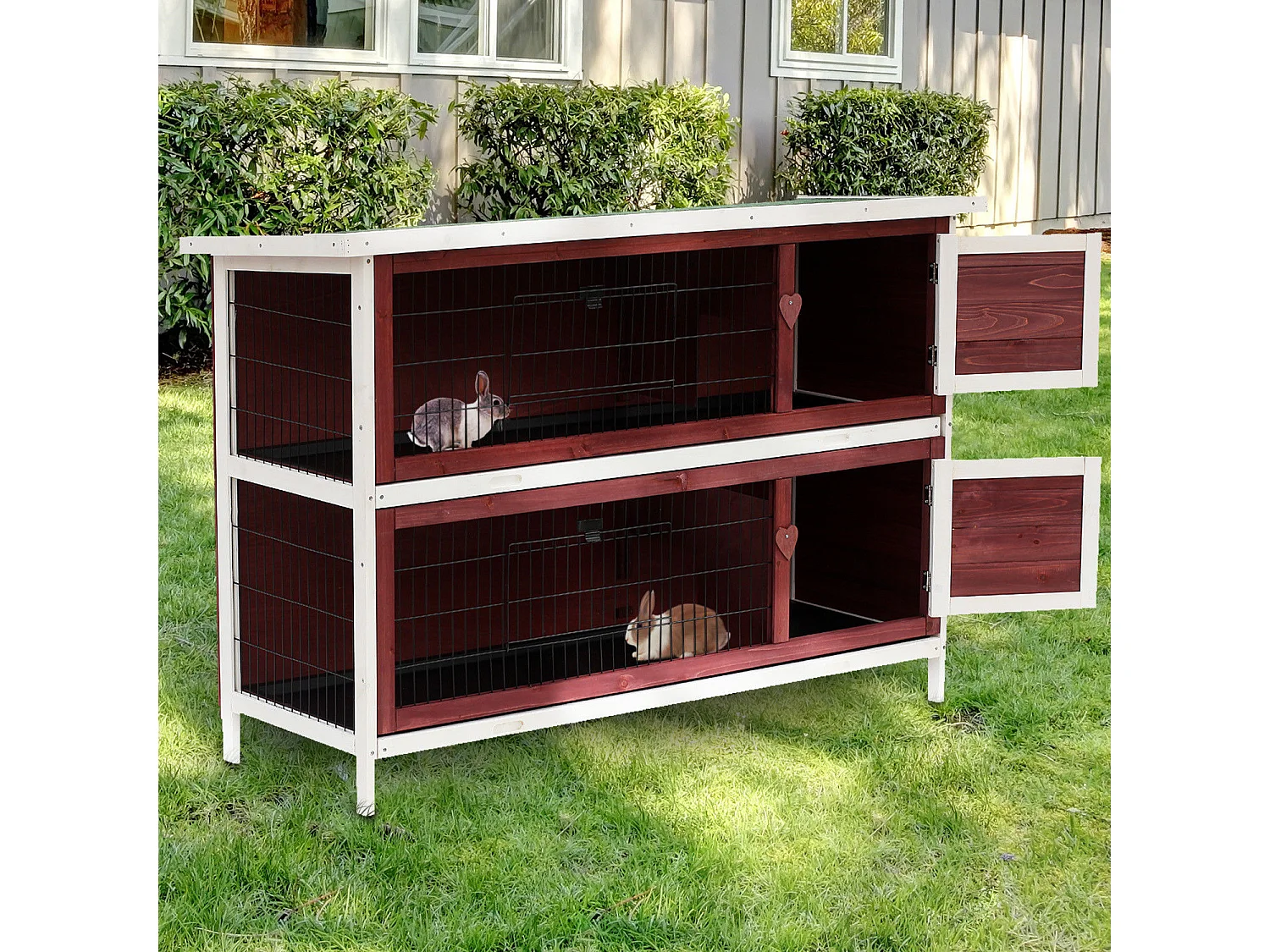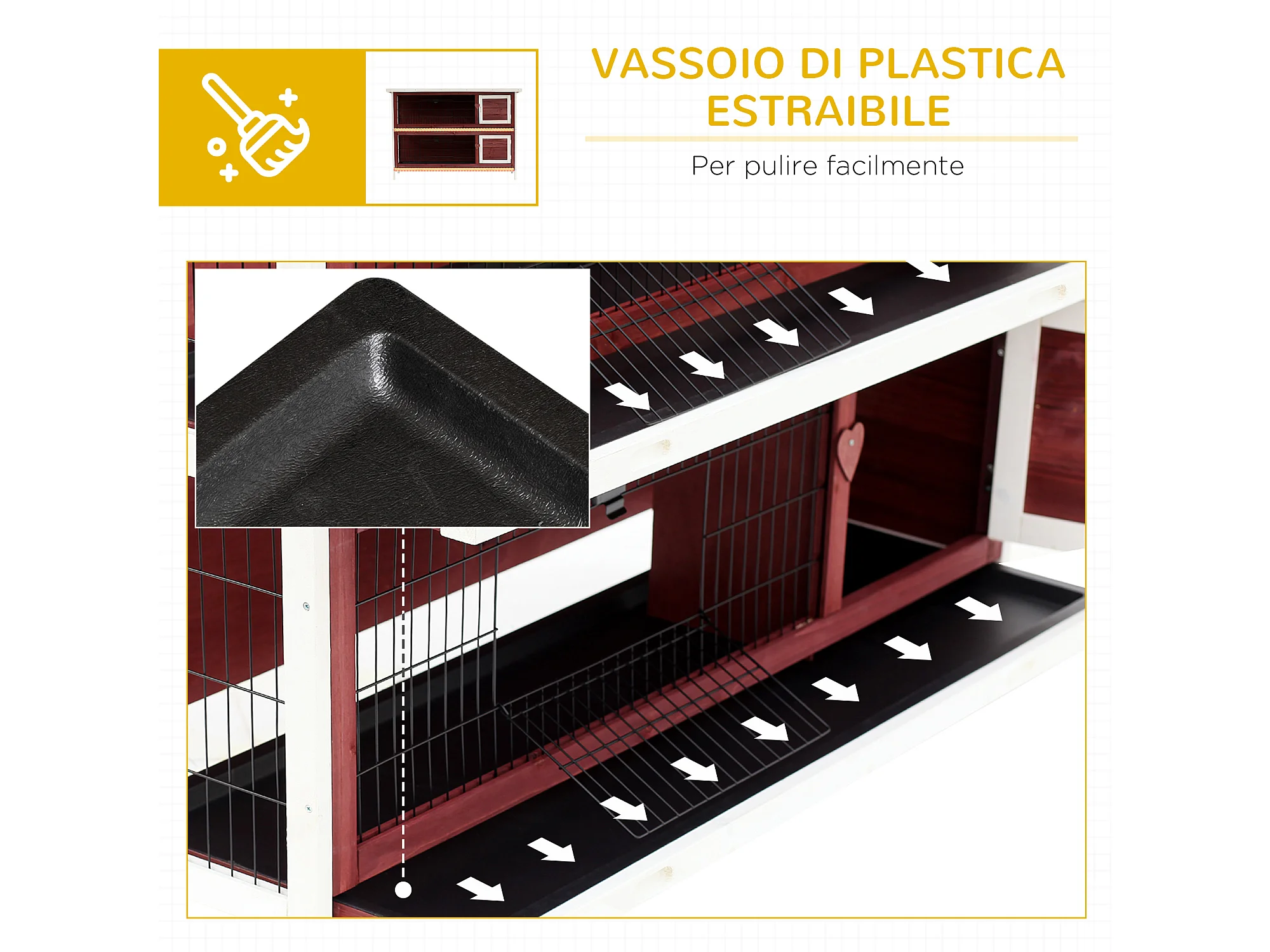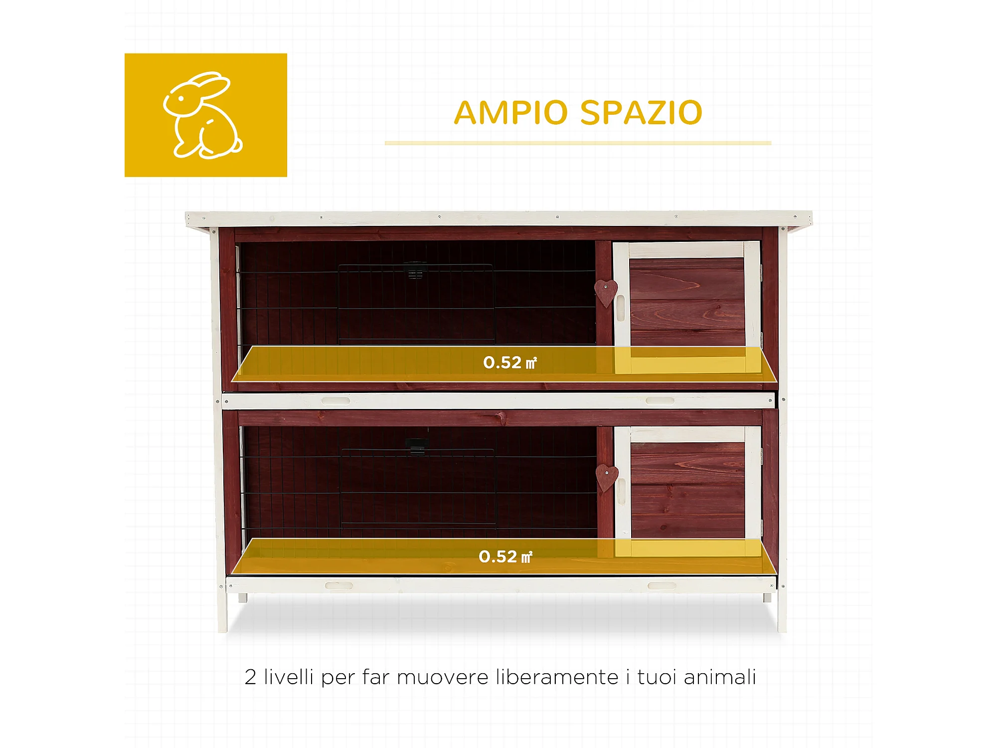 Conigliera da esterno 2 livelli in legno con casetta per 1-2 conigli