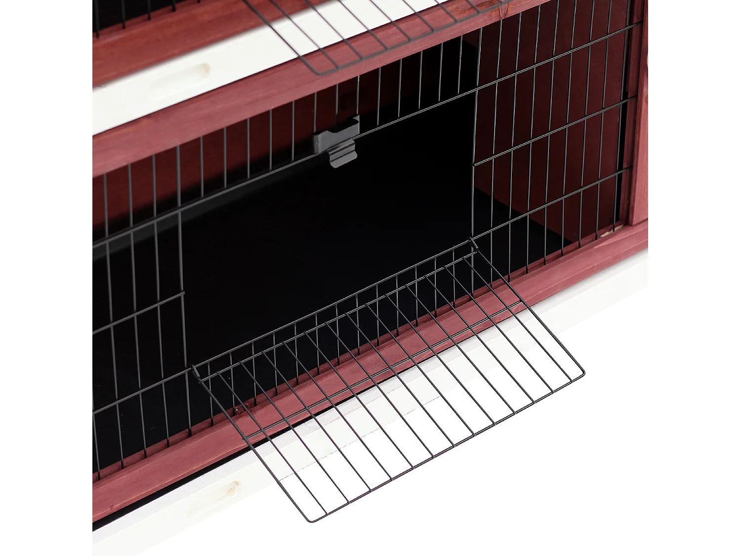 Conigliera a 2 livelli in legno con casetta, rampa e vassoio marrone