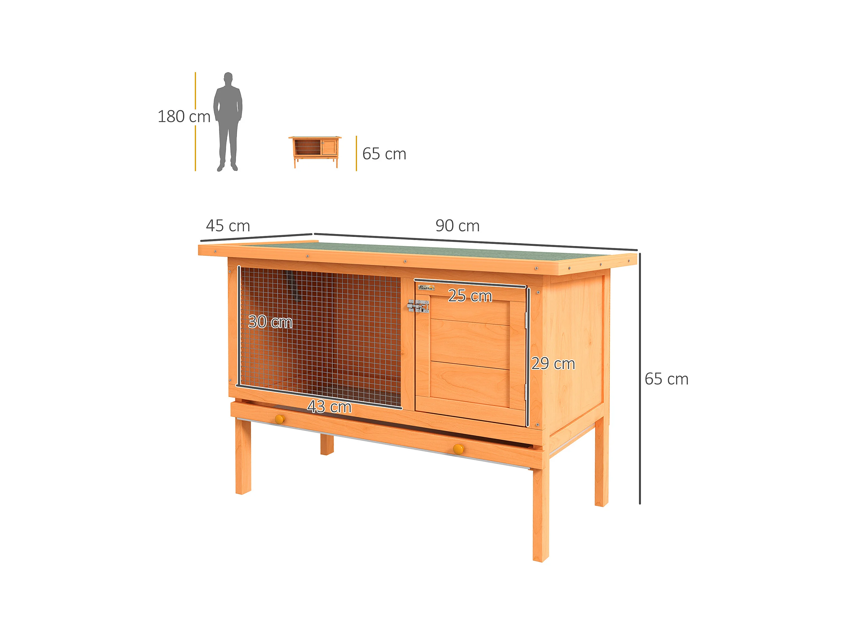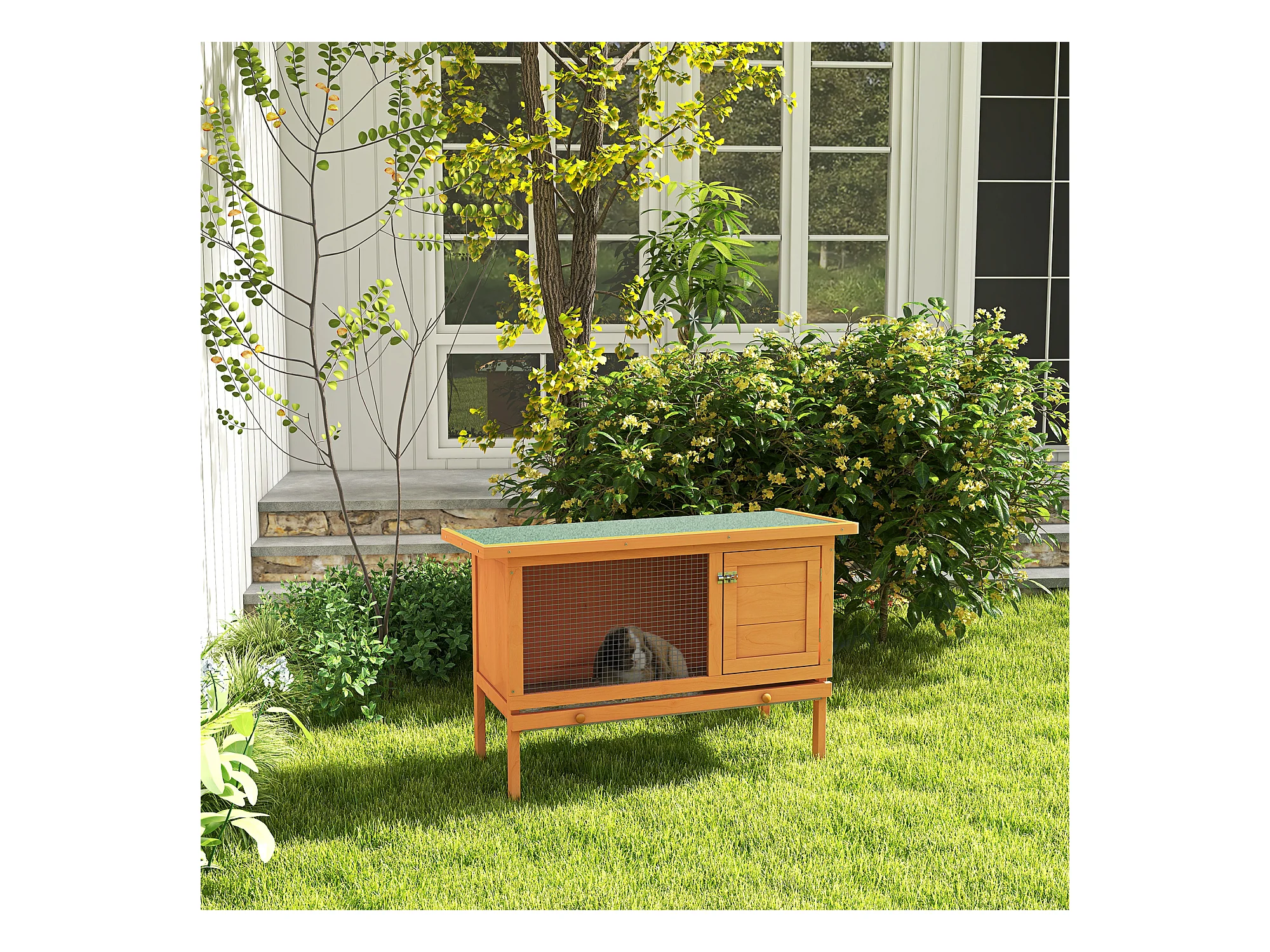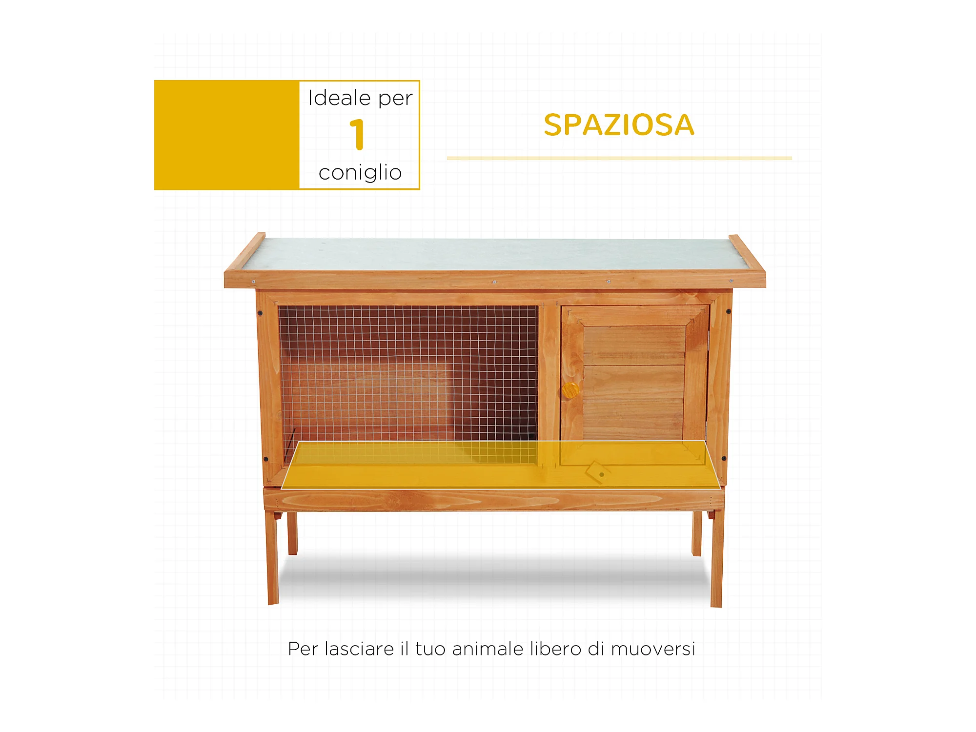 Conigliera in legno con casetta e area aperta per 1 coniglio 90x53x50cm