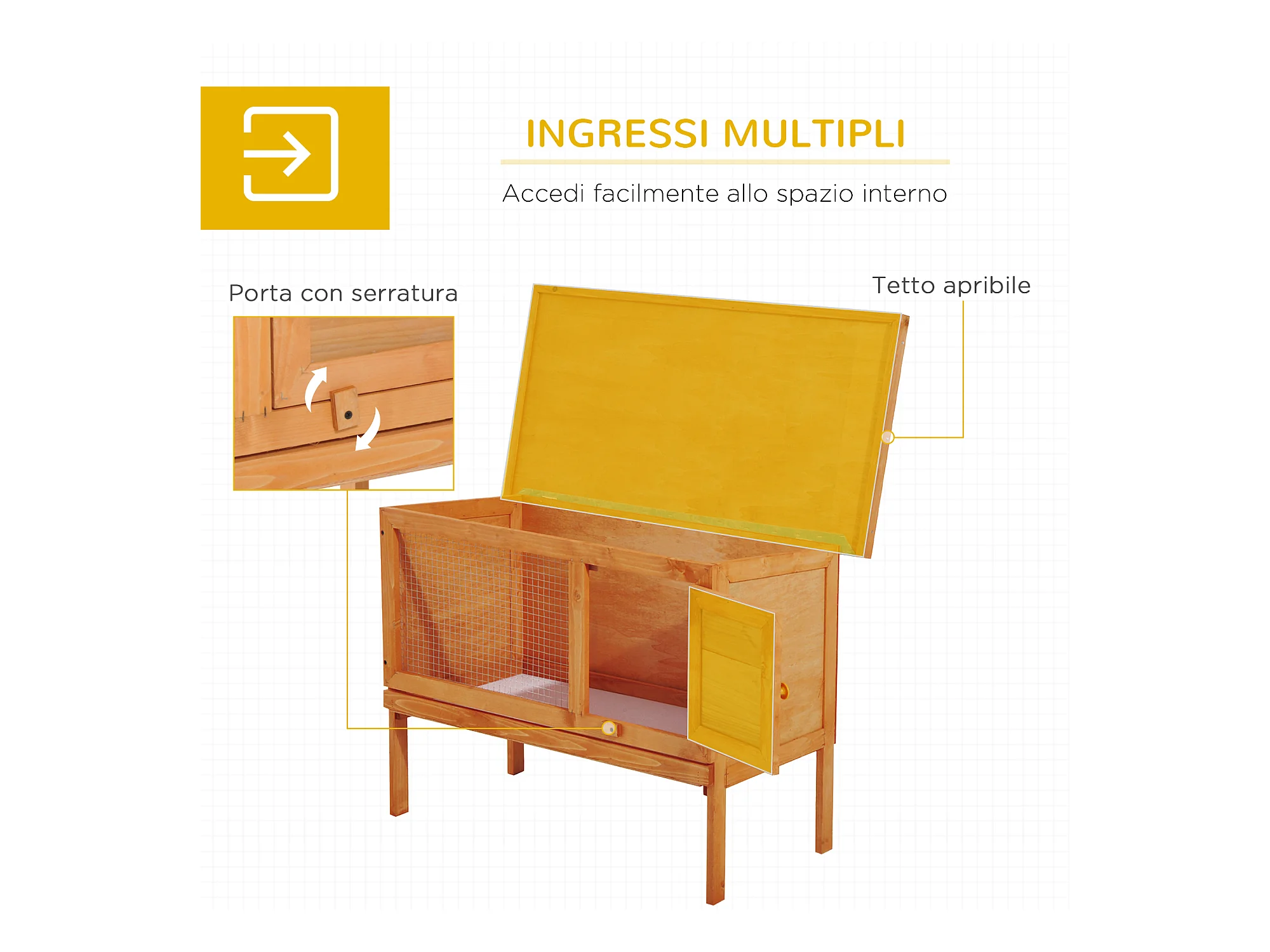 Conigliera gabbia in legno da esterno per conigli, porcellini d'india