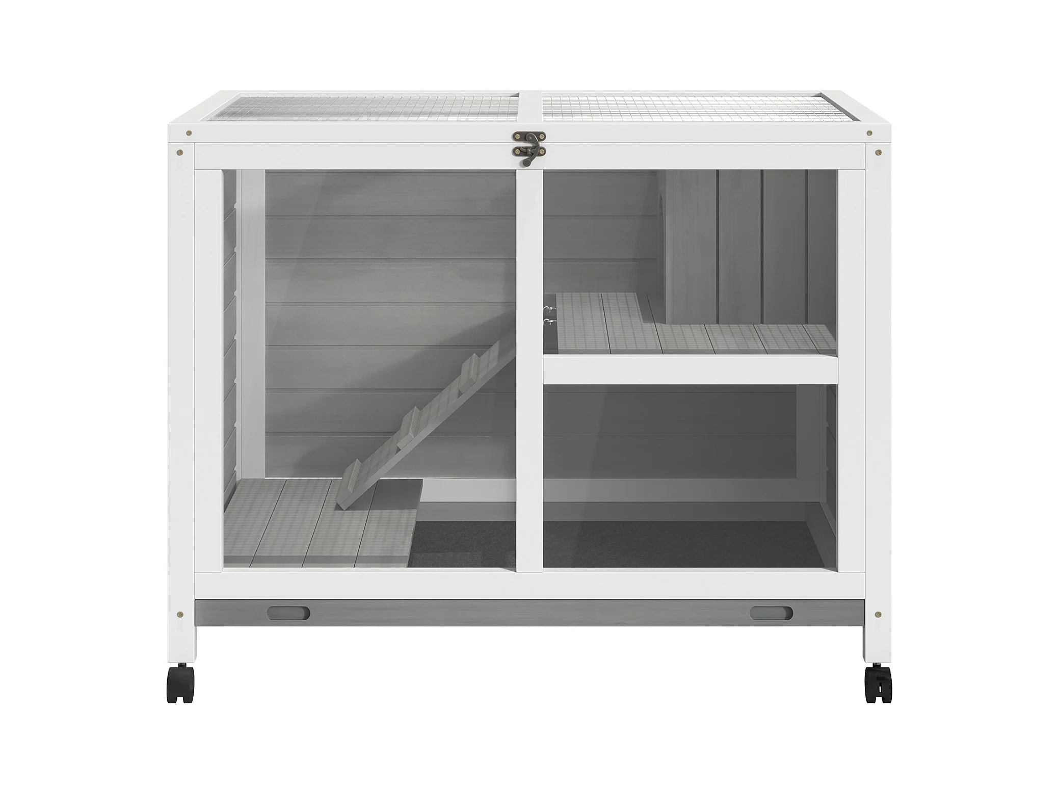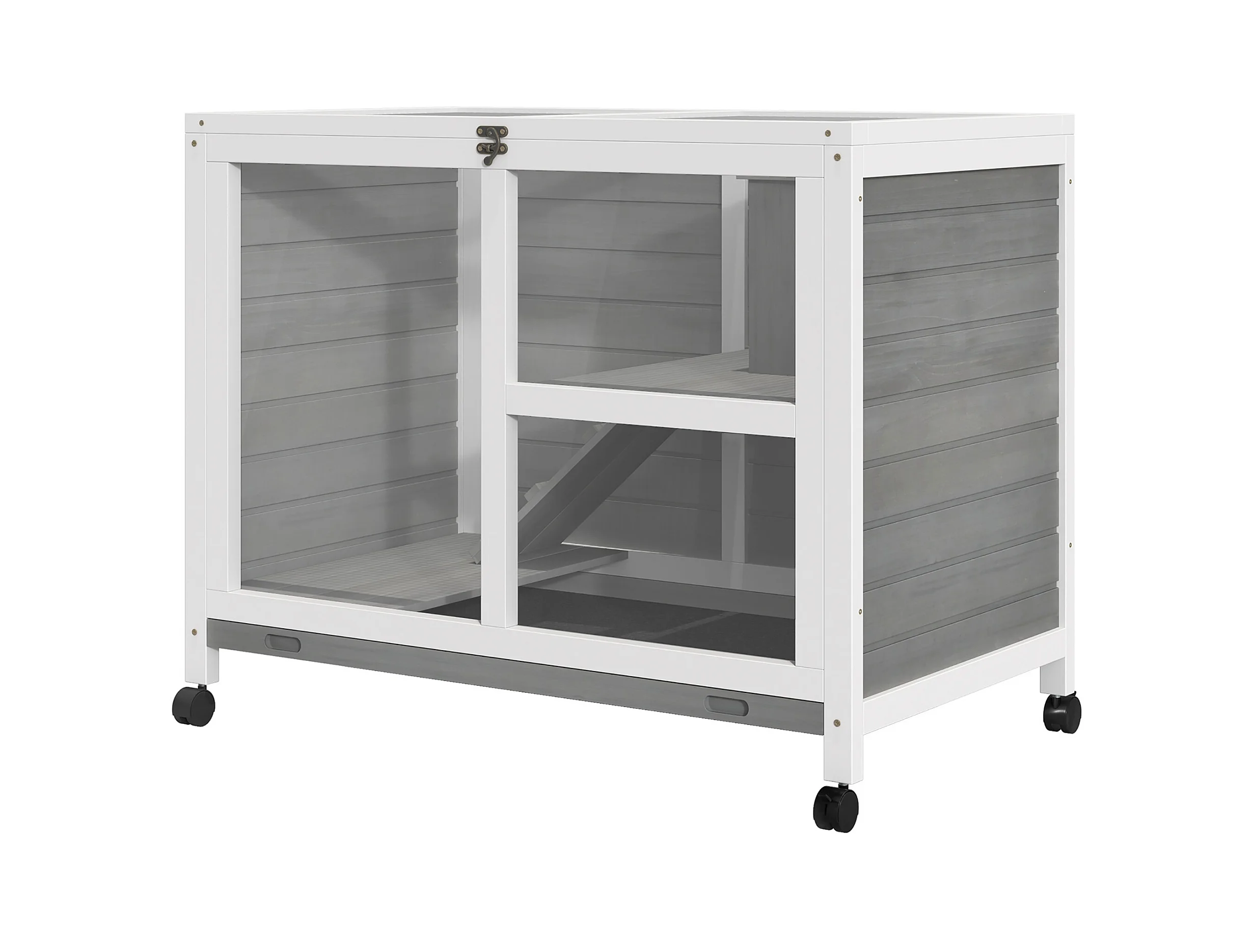 Conigliera a 2 livelli con rampa e 3 vassoi grigia e bianca