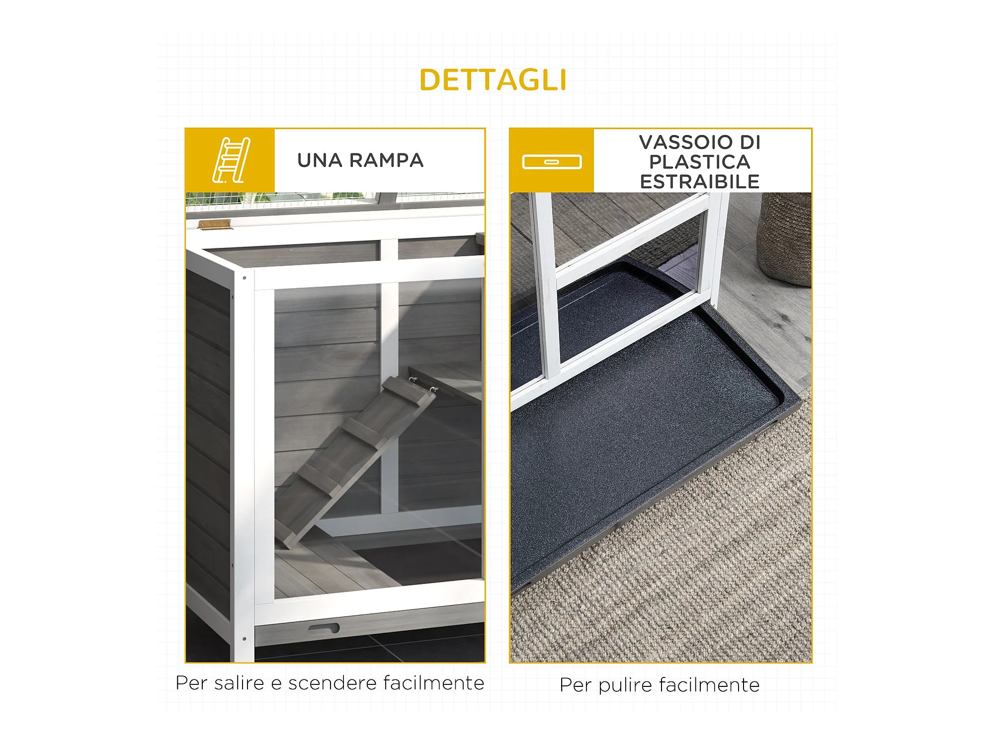 Conigliera in legno 2 piani con casetta rampa e vassoio estraibile