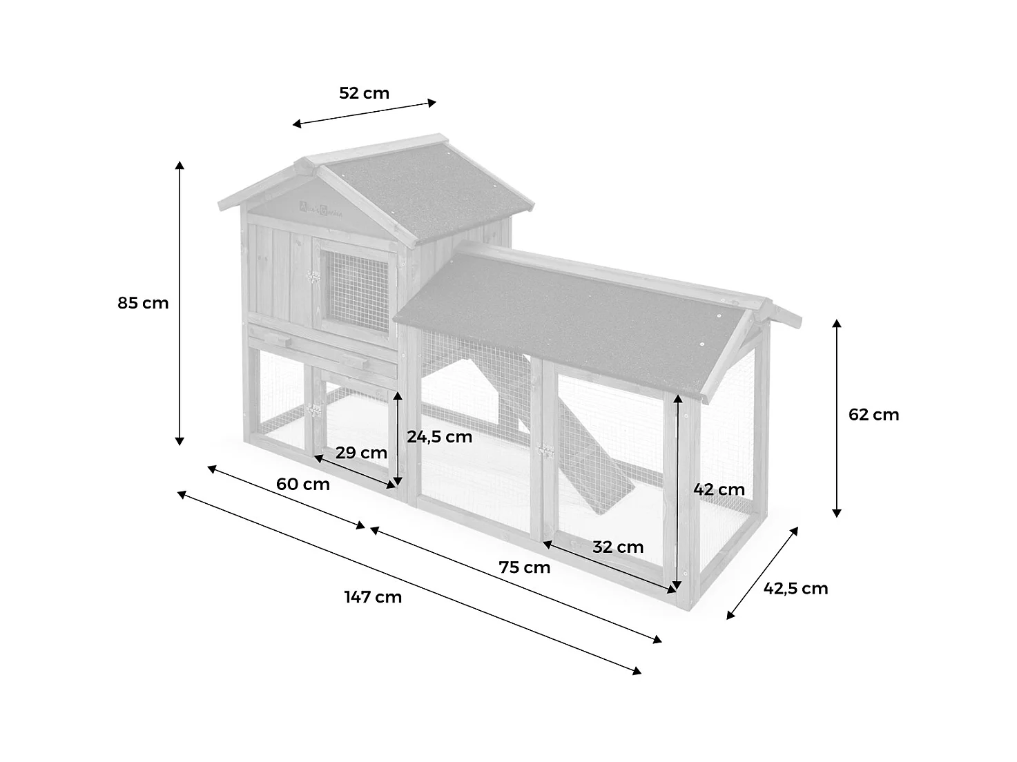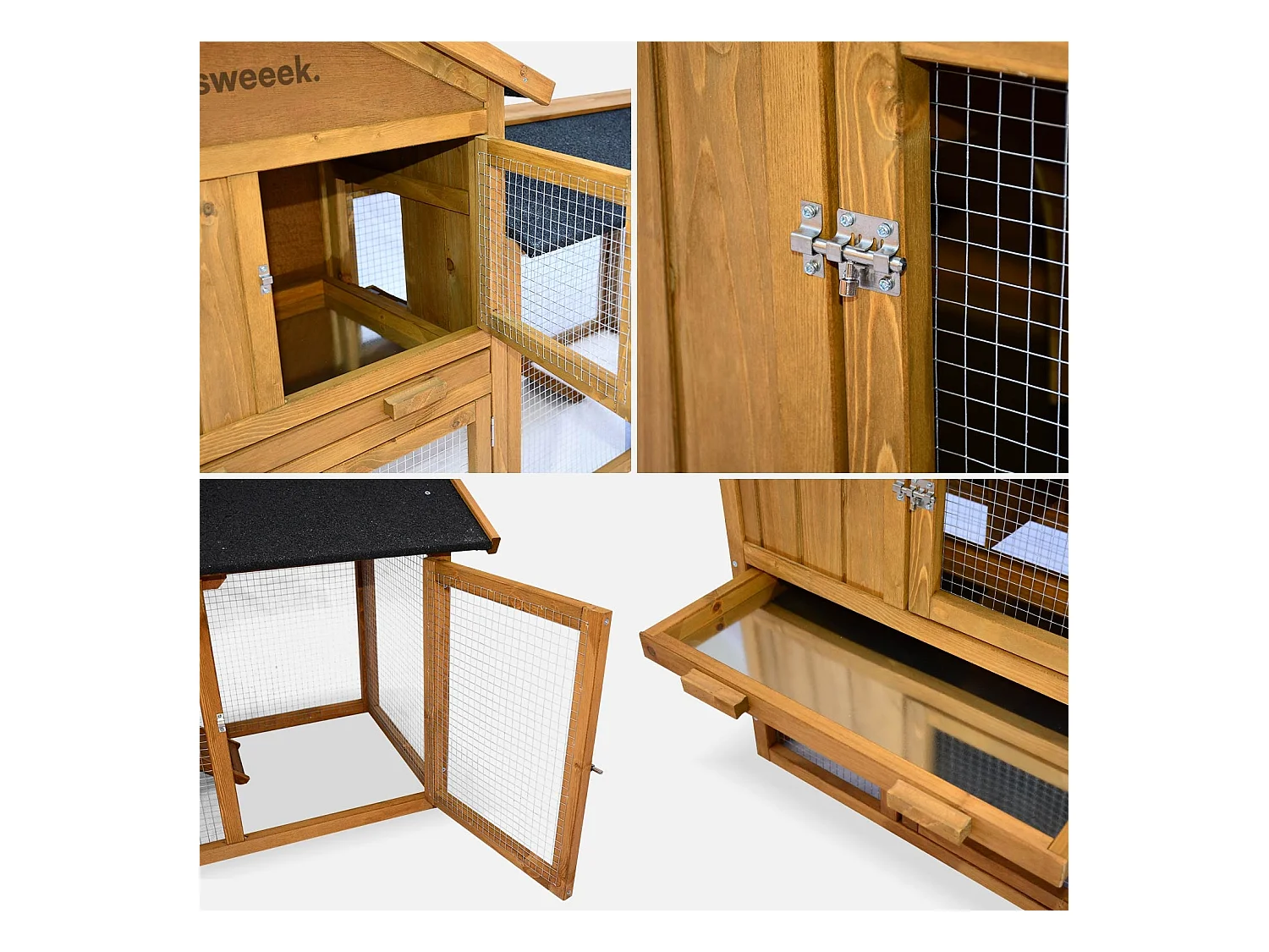 Conigliera in legno per conigli e roditori con recinto, 4 conigli,