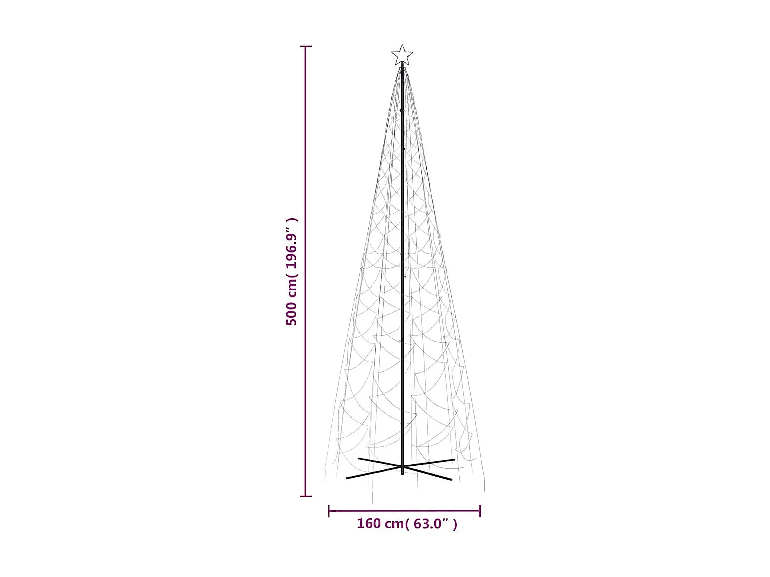 Cono per albero di Natale 1400 LED blu 160x500 cm