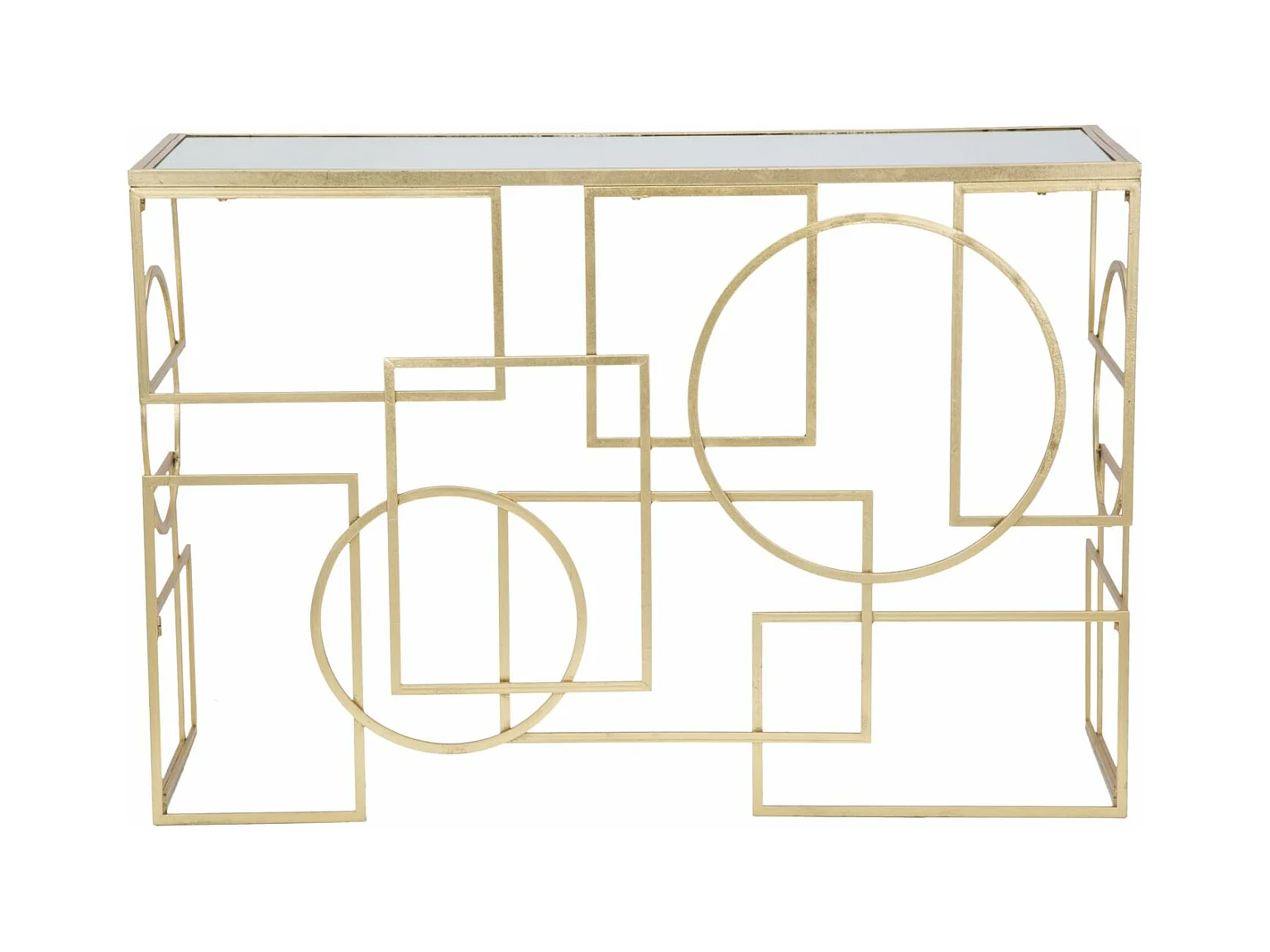 Consolle geometrica in metallo e specchio dorata cm 120x40x80