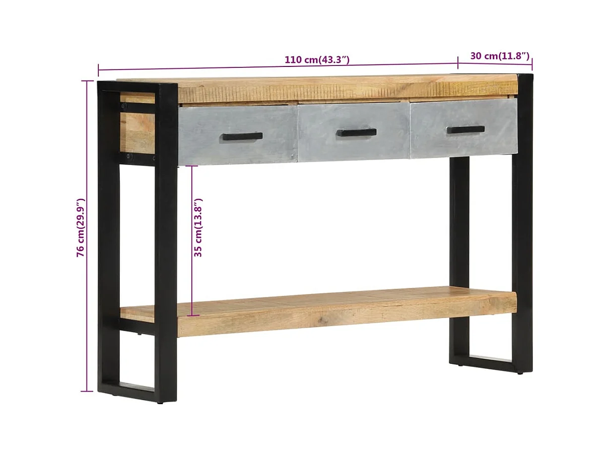 Consolle 110x30x76 cm in legno massello di mango grezzo