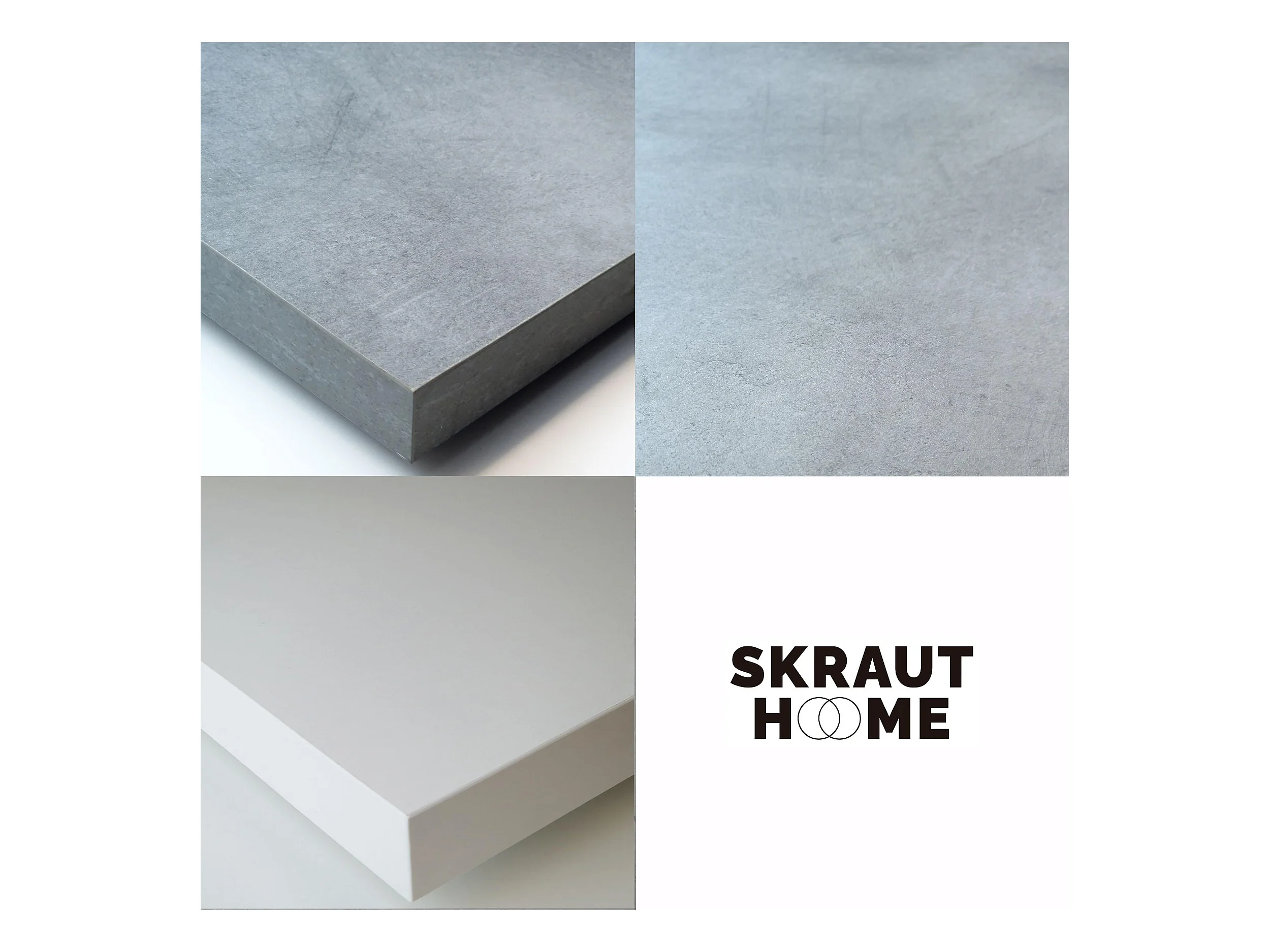 Consolle allungabile, 262x90x73cm, Per 12 persone, Gambe in legno, Bianco e cemento