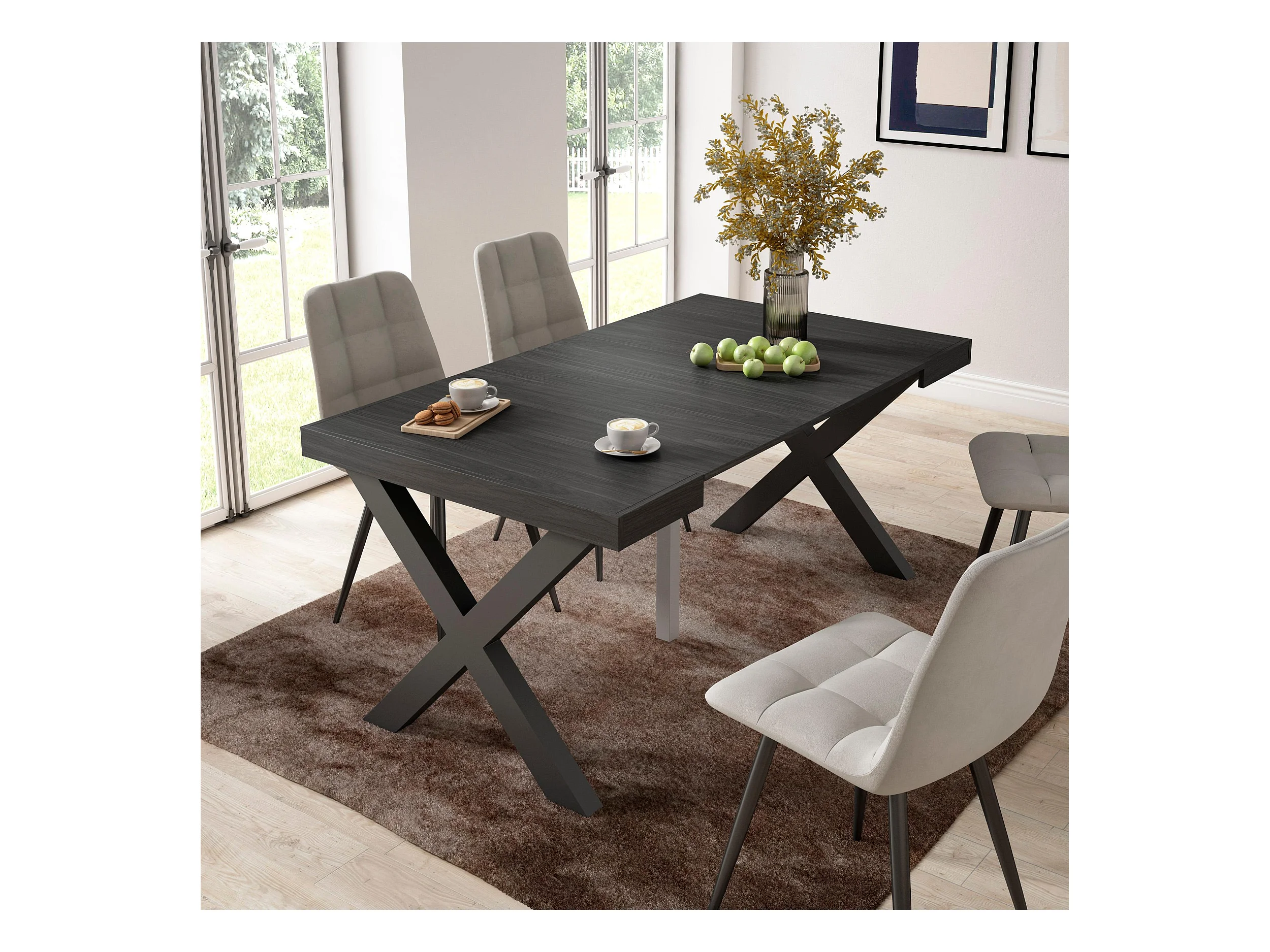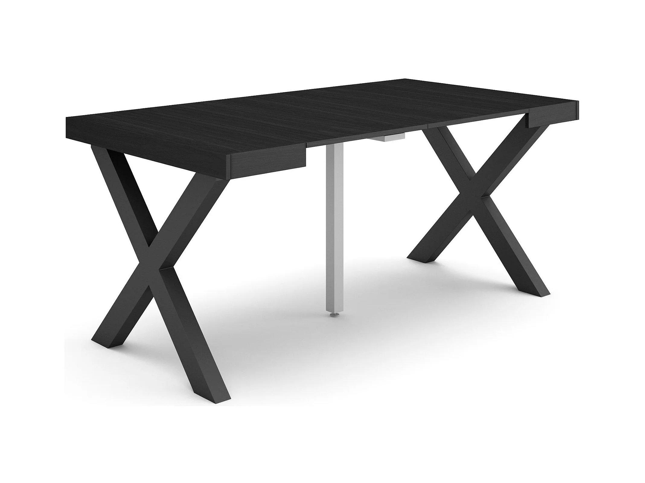 Consolle allungabile, 160x90x73cm, Per 8 persone, Gambe in legno, Nero