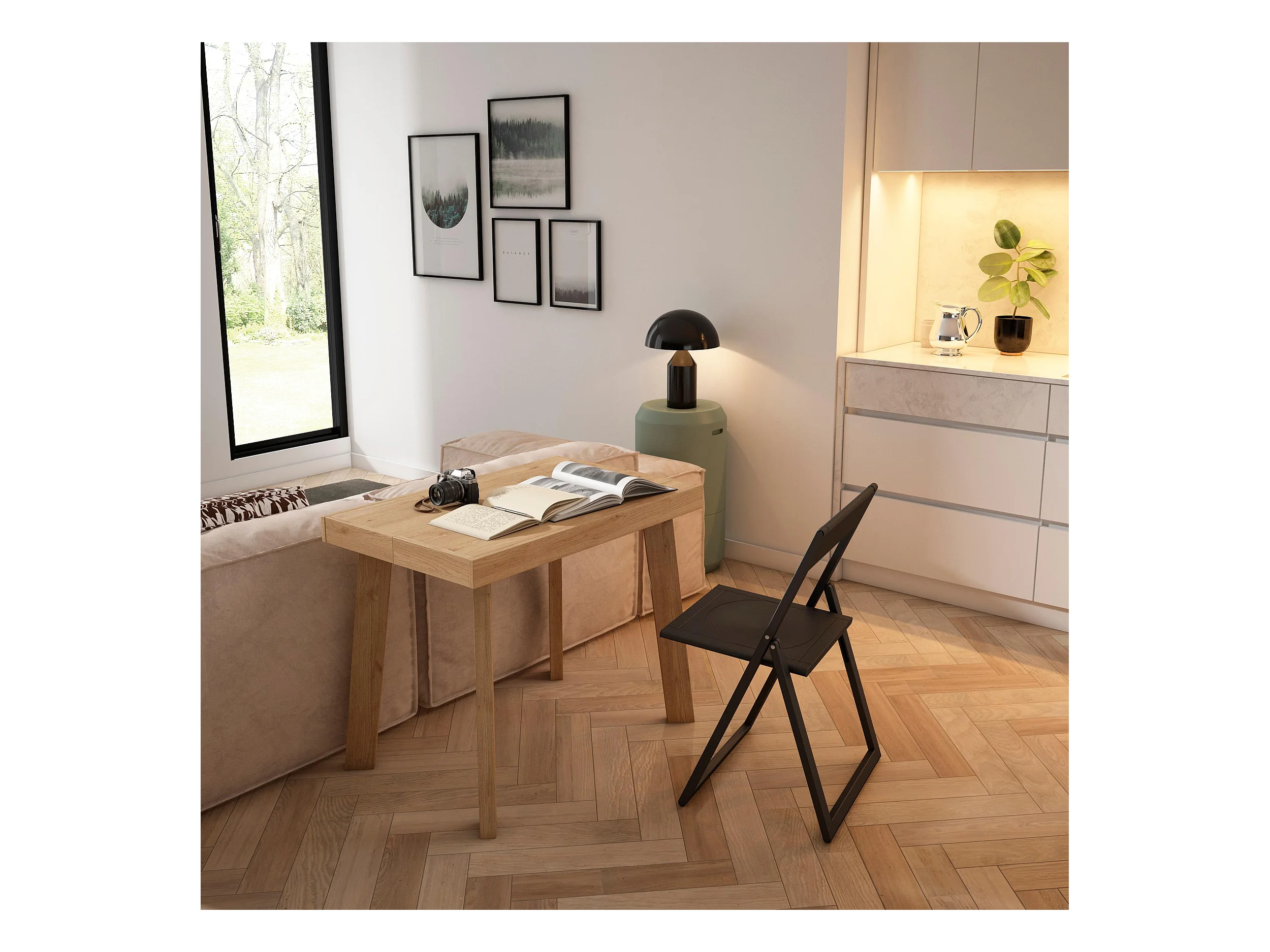 Consolle allungabile, 262x90x73cm, Per 12 persone, Gambe in legno, Rovere e nero