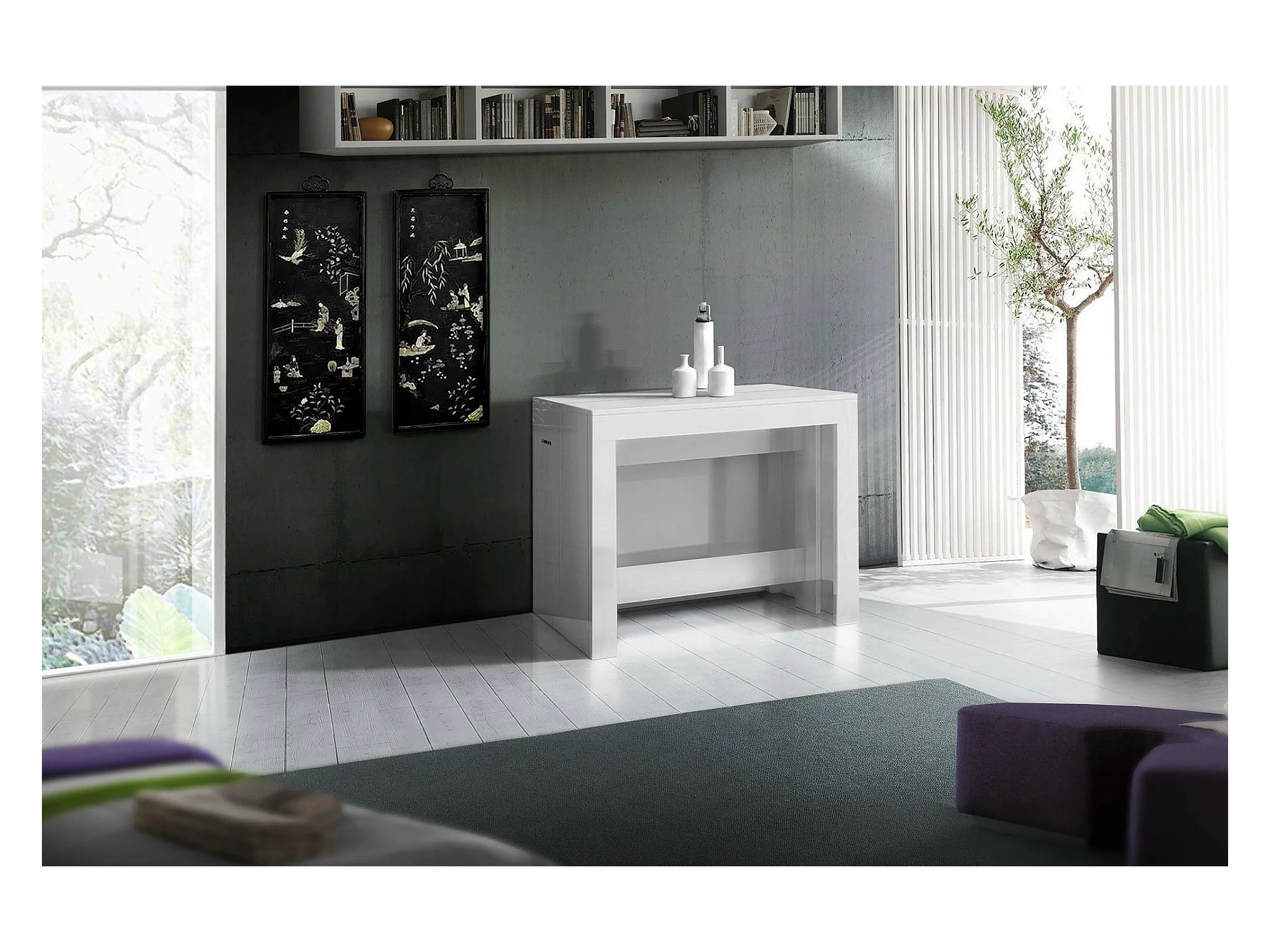 Tavolo allungabile Nanni, Consolle allungabile fino a 10 posti, Consolle estensibile 100% Made in Italy, cm 140/190x90h75, Bianco lucido