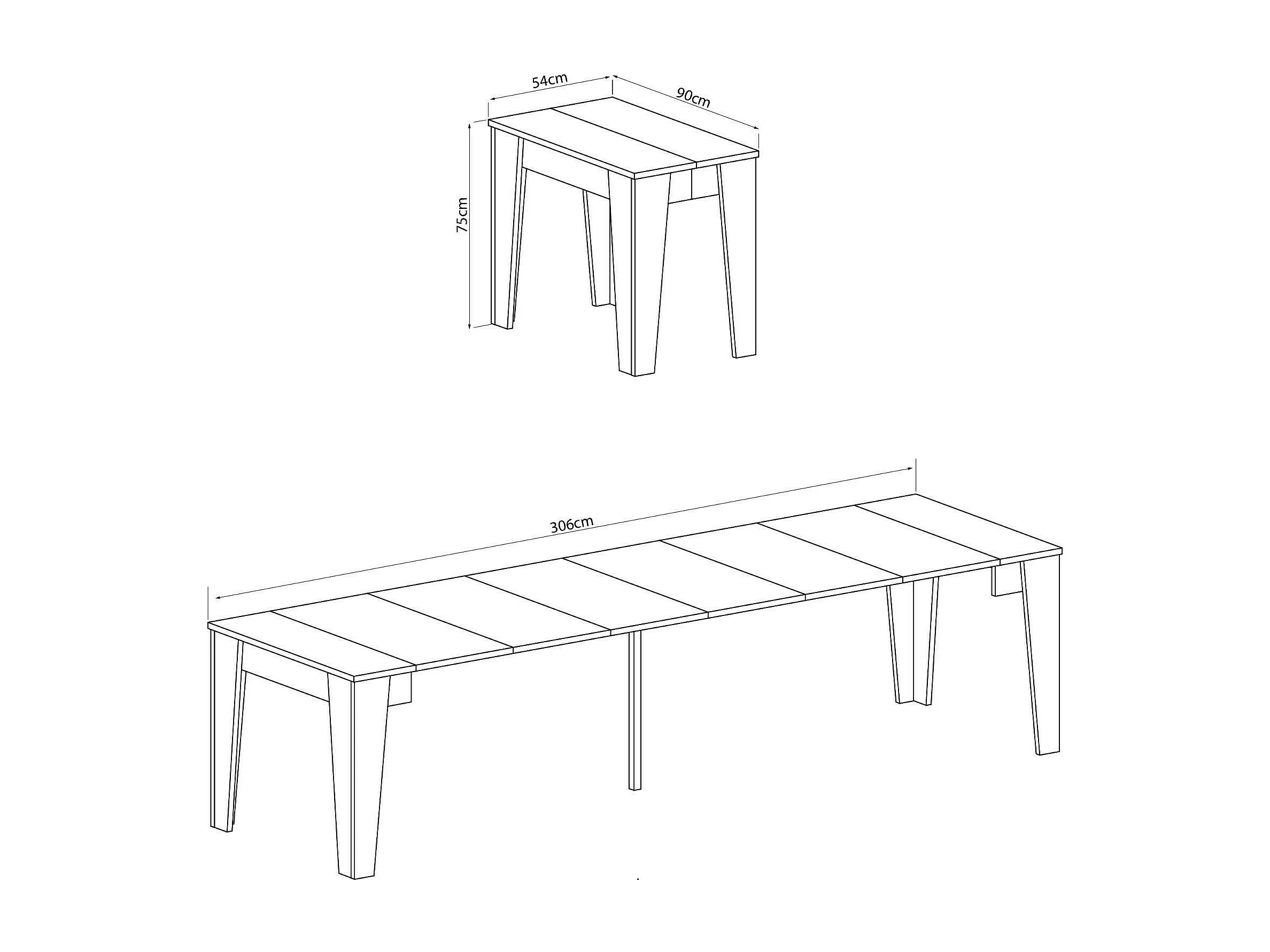 Consolle allungabile 90x40/300 cm Saki Premium bianco frassino gambe antracite
