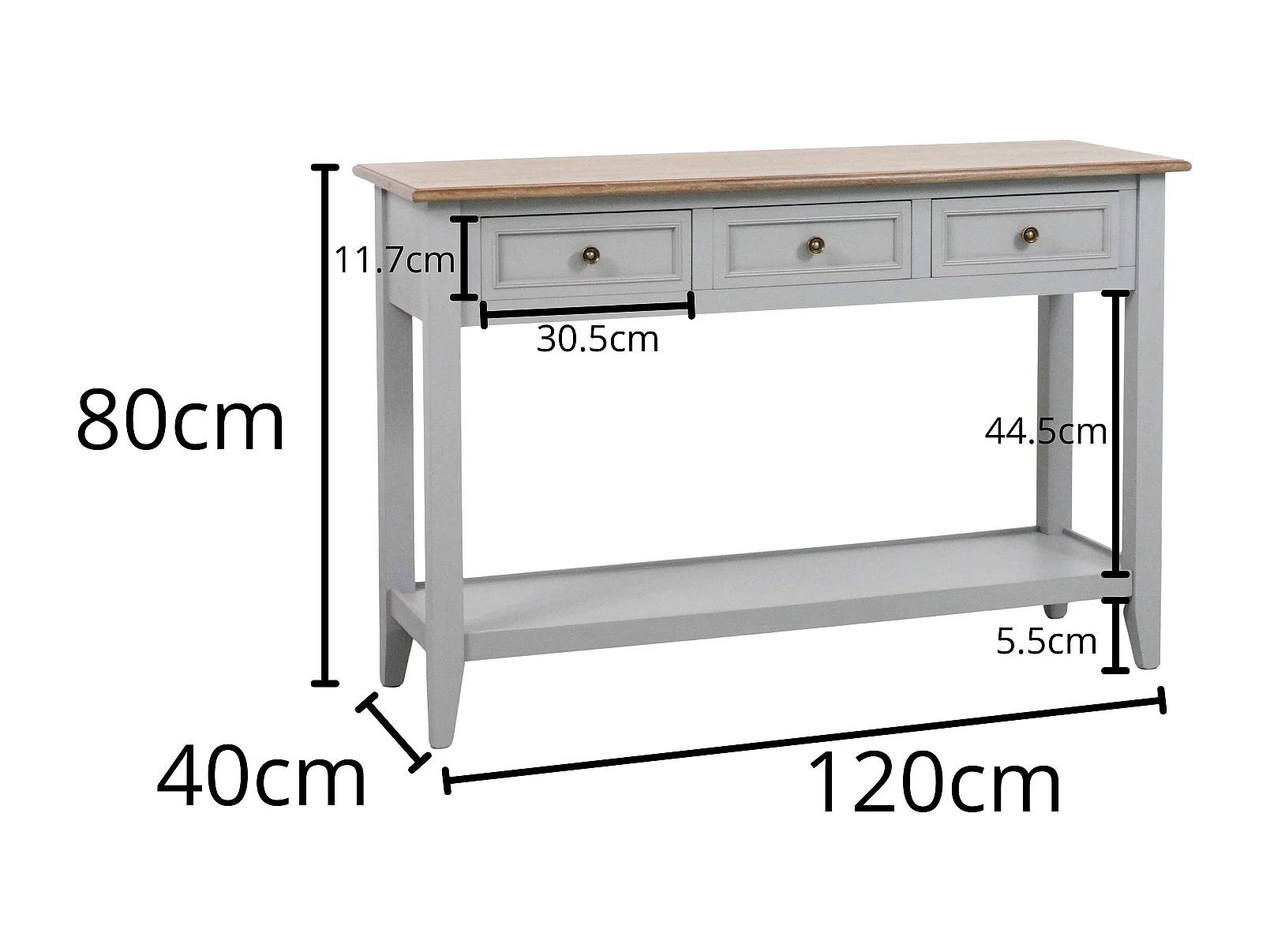Consolle con 3 cassetti colore grigio in legno di pino “Vicenzo”