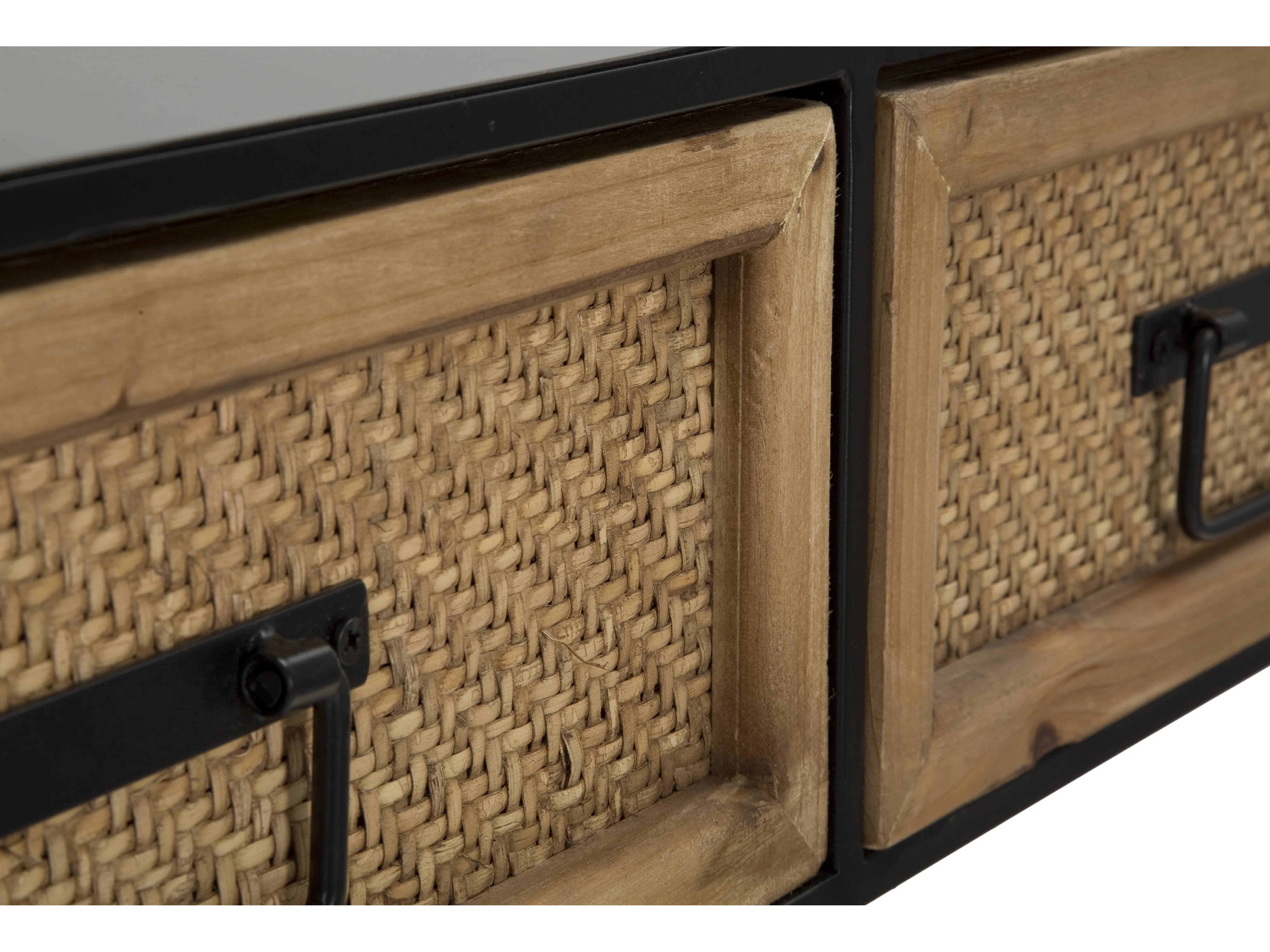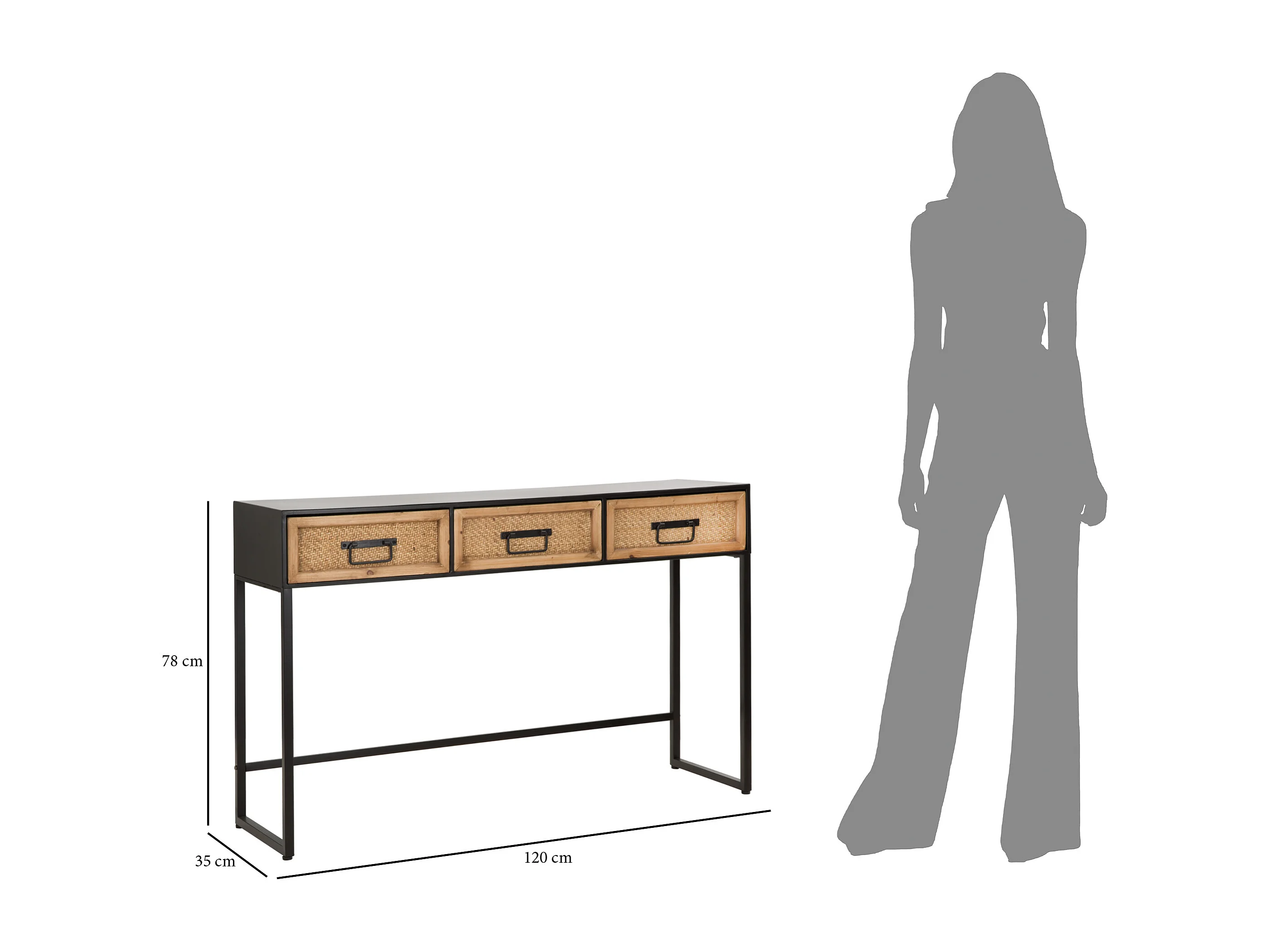Consolle con 3 cassetti in legno e metallo marrone e nera cm 120x35x78