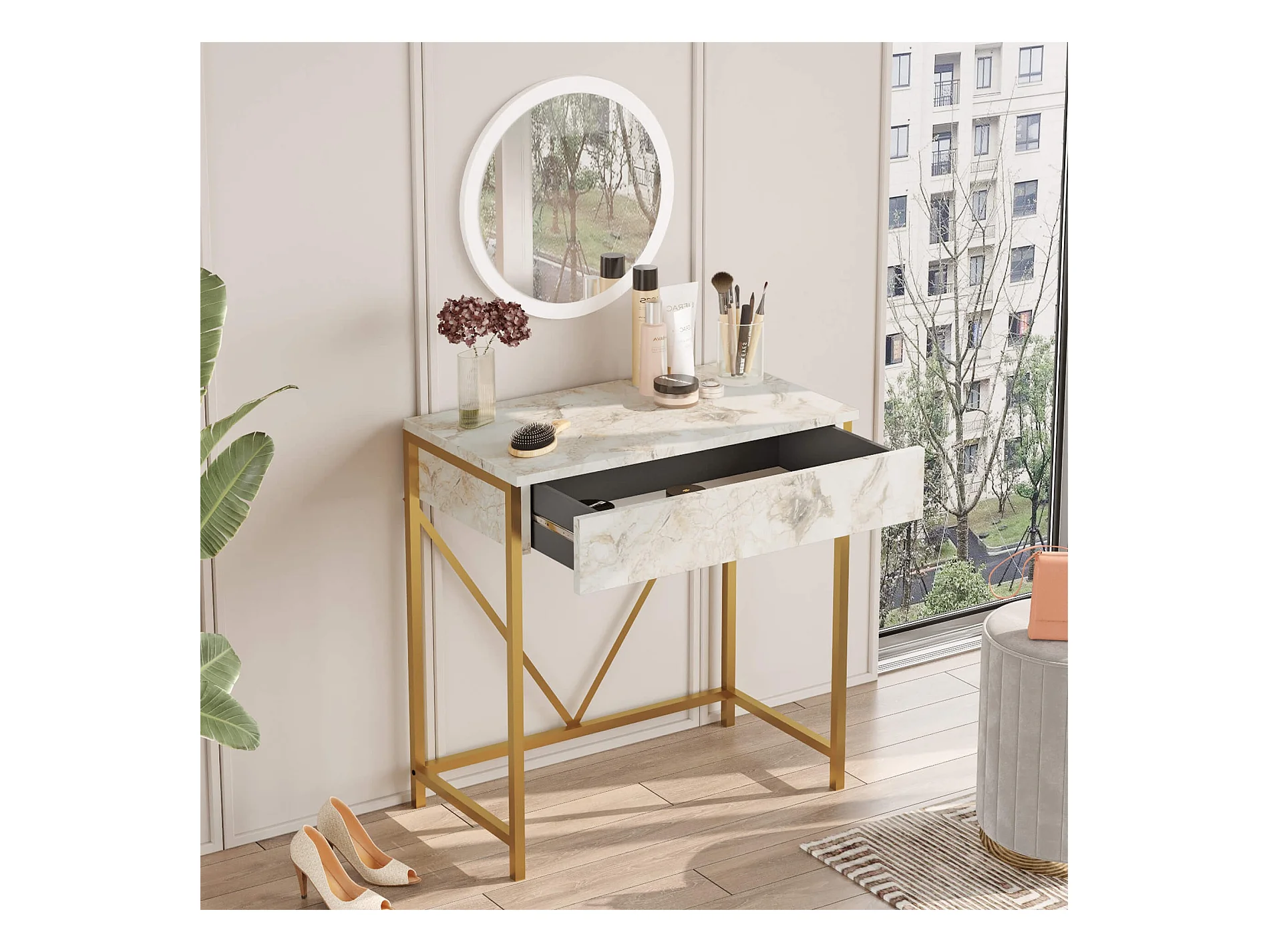 Consolle con Specchio Rebecca Mobili Lycium 72x75x40 Truciolato Ferro Bianco Dorato Moderno