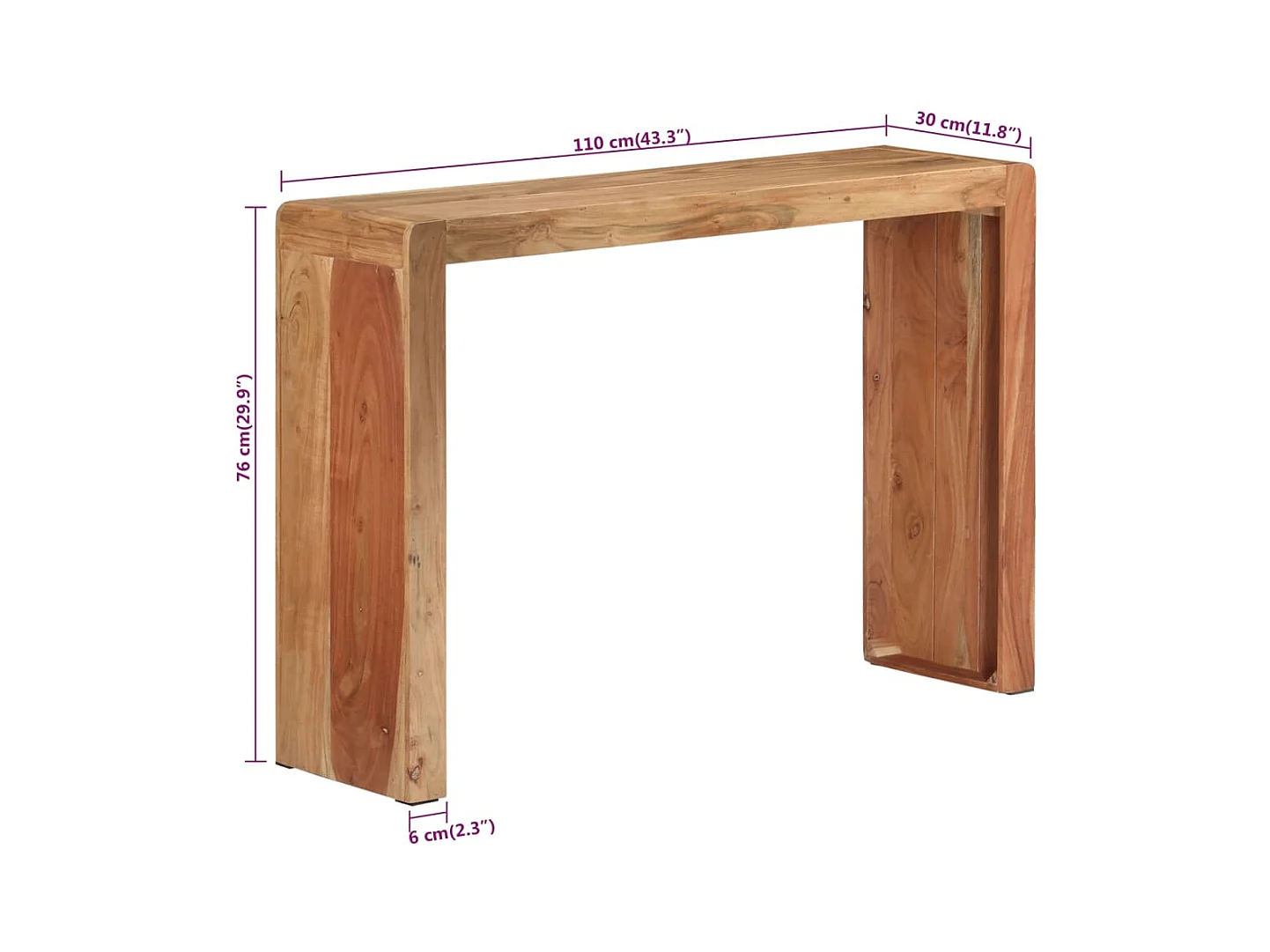Consolle da tavolo 110x30x76 cm bois massif d'acacia