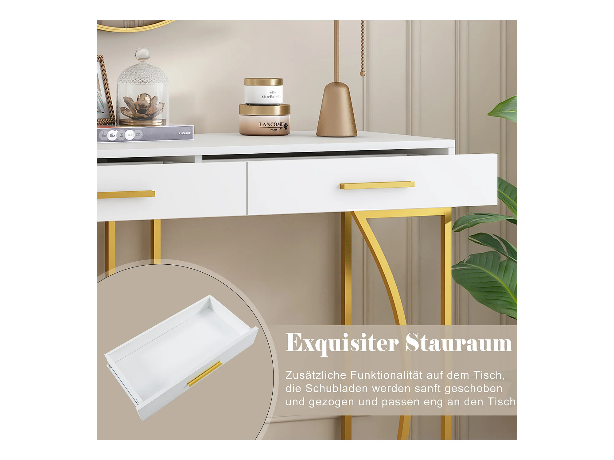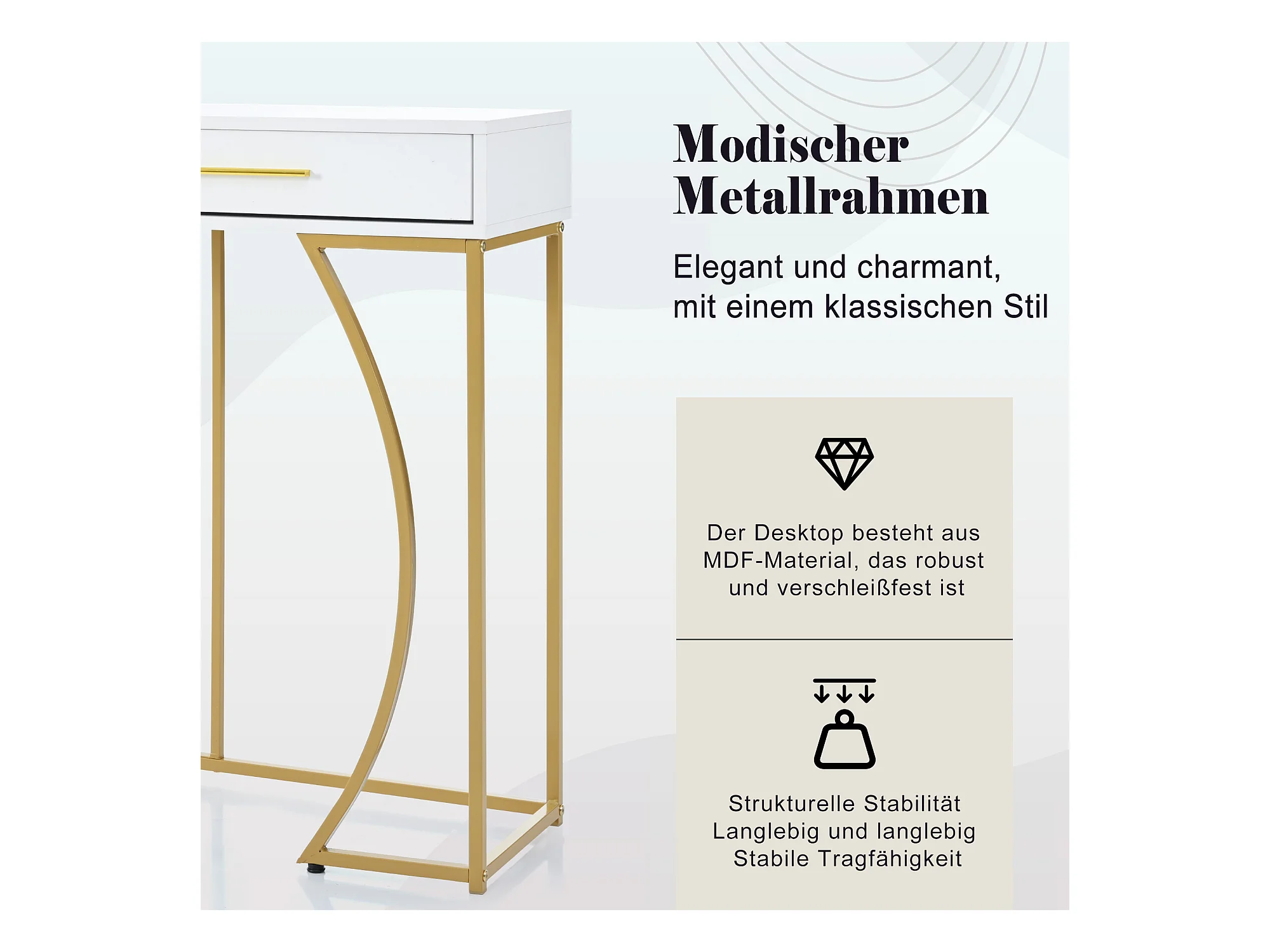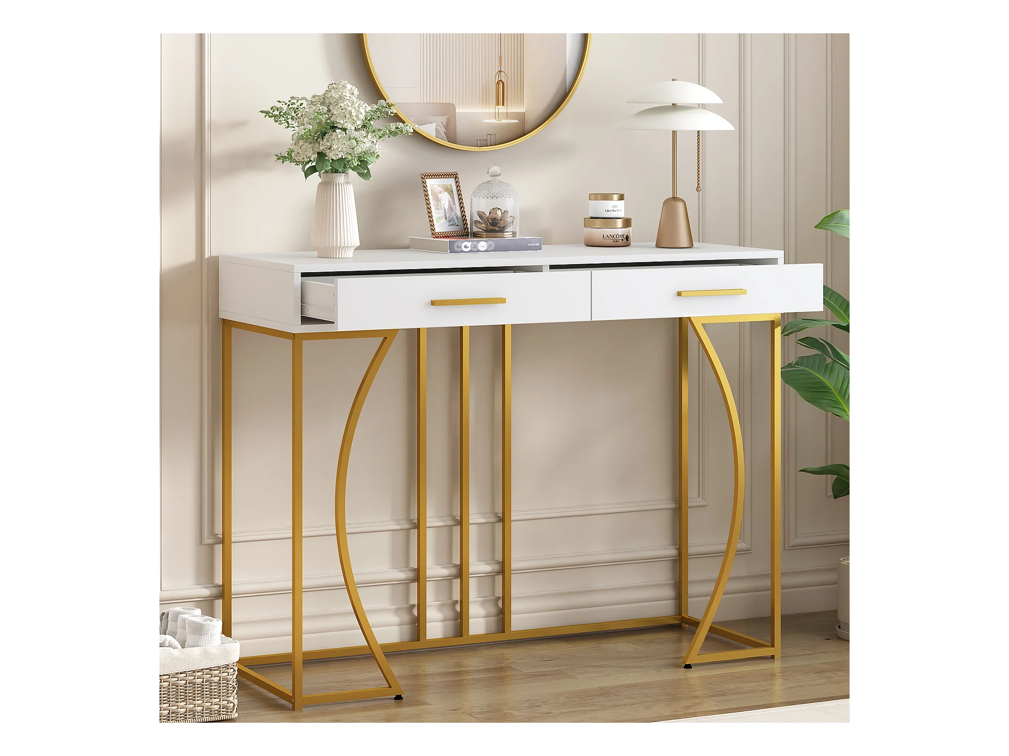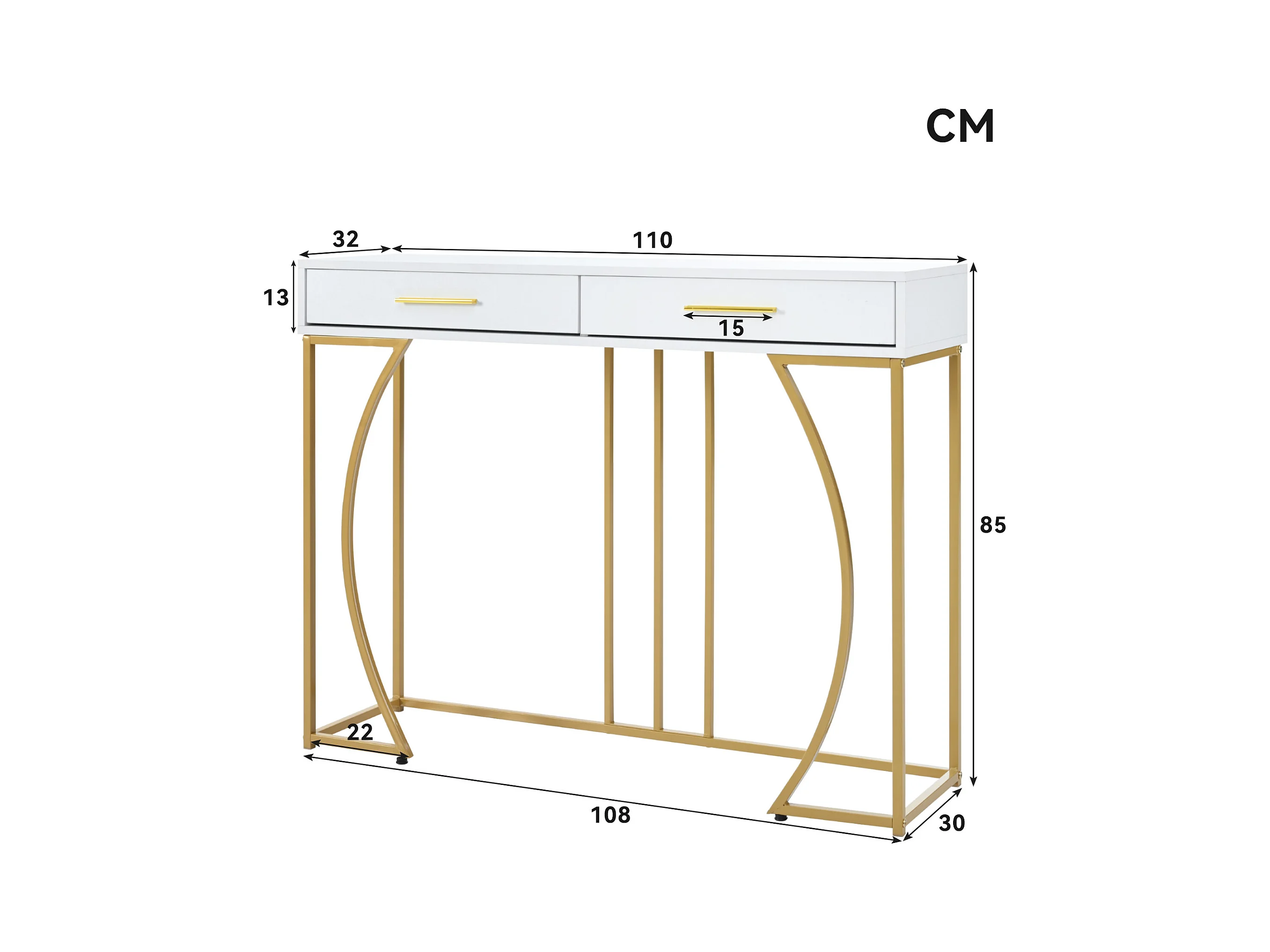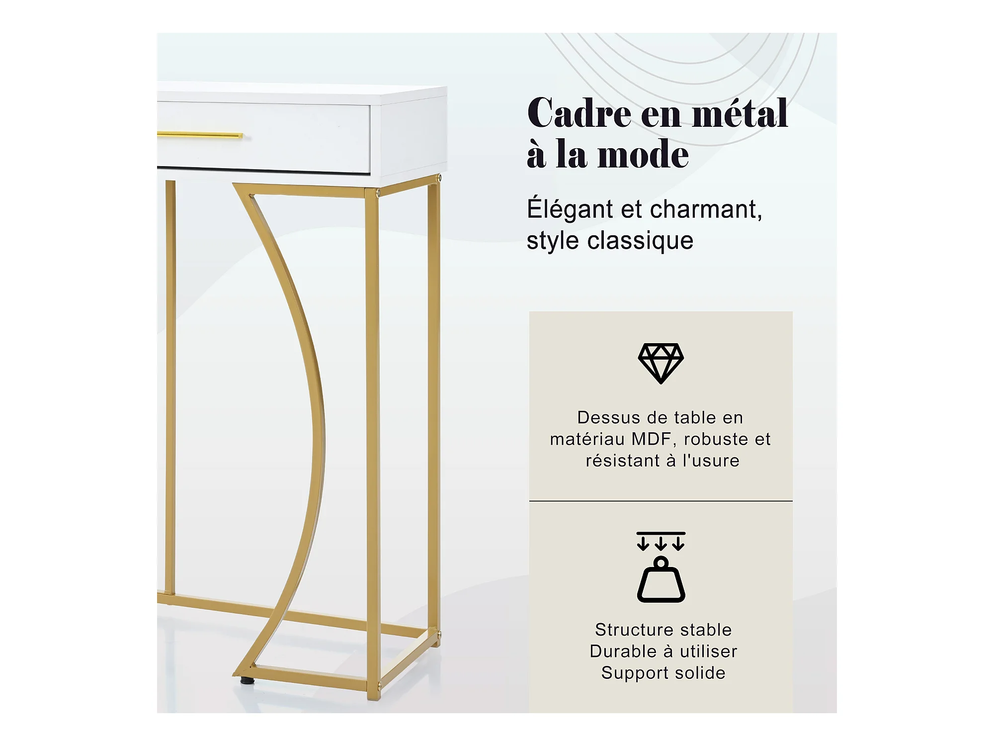 Consolle MDF metallo con 2 cassetti salon couloir blanc doré 120x38x76 cm