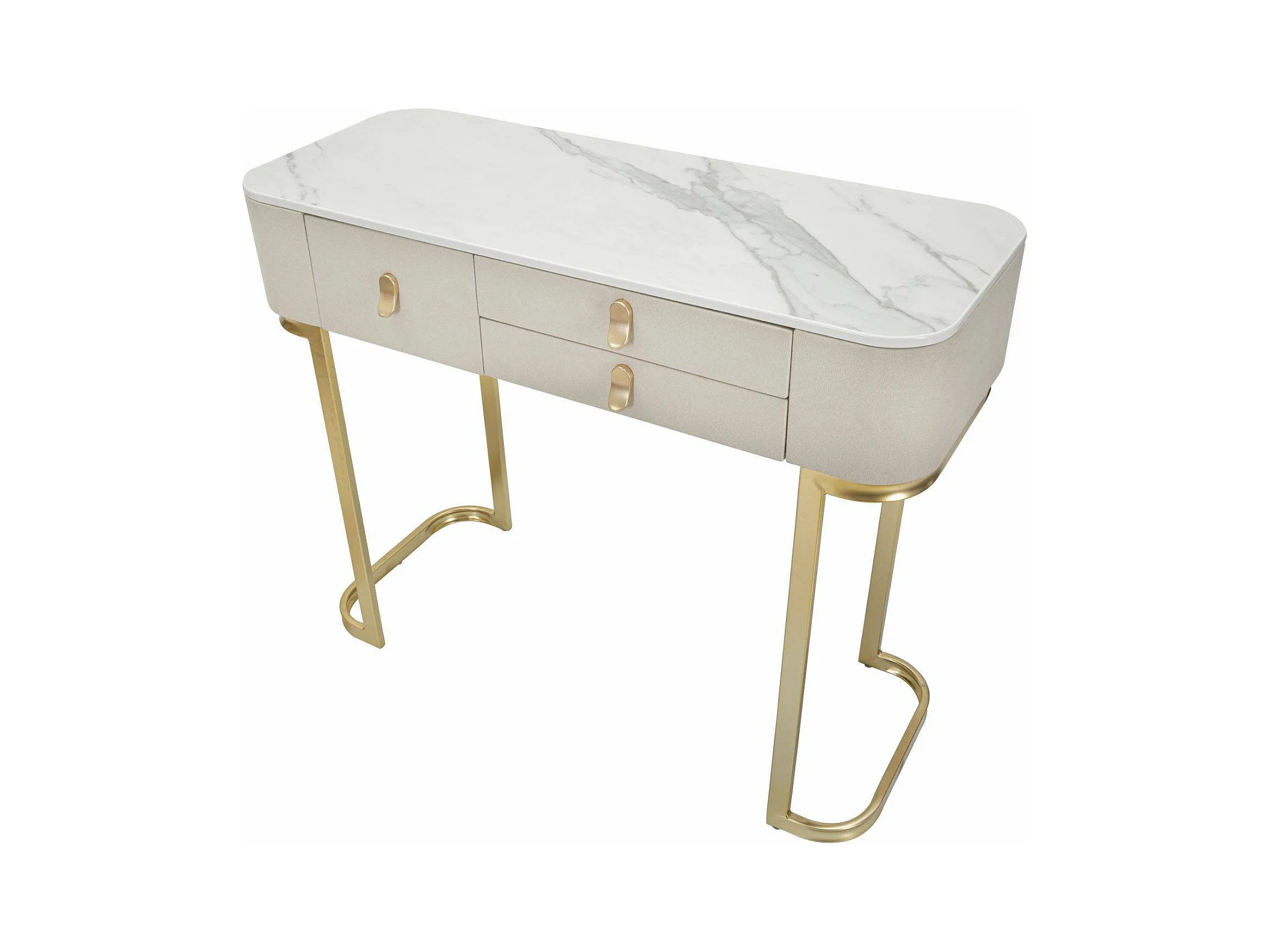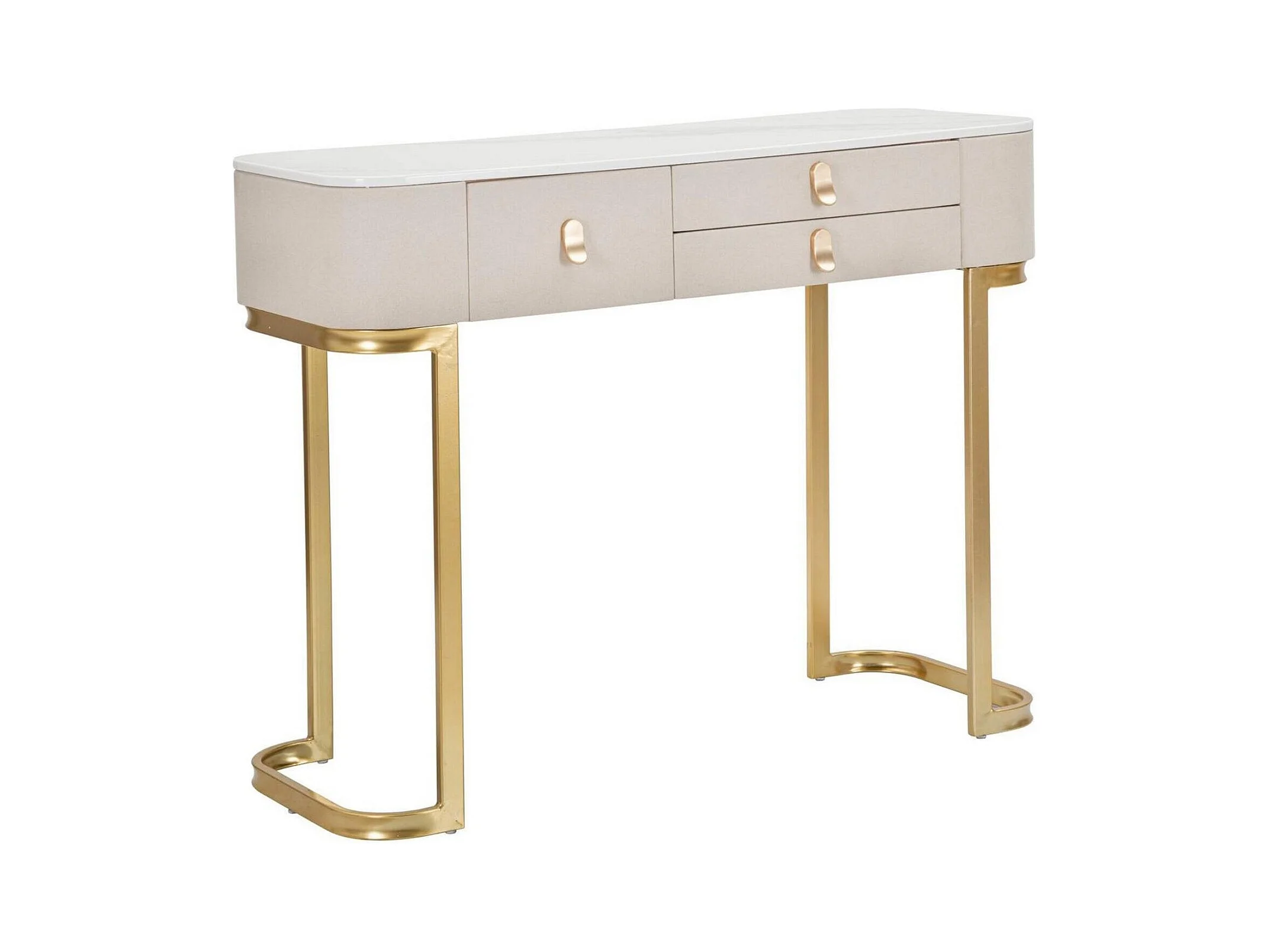 Dmora - Consolle Ronda, Crema e Oro, 100x40 h80 cm