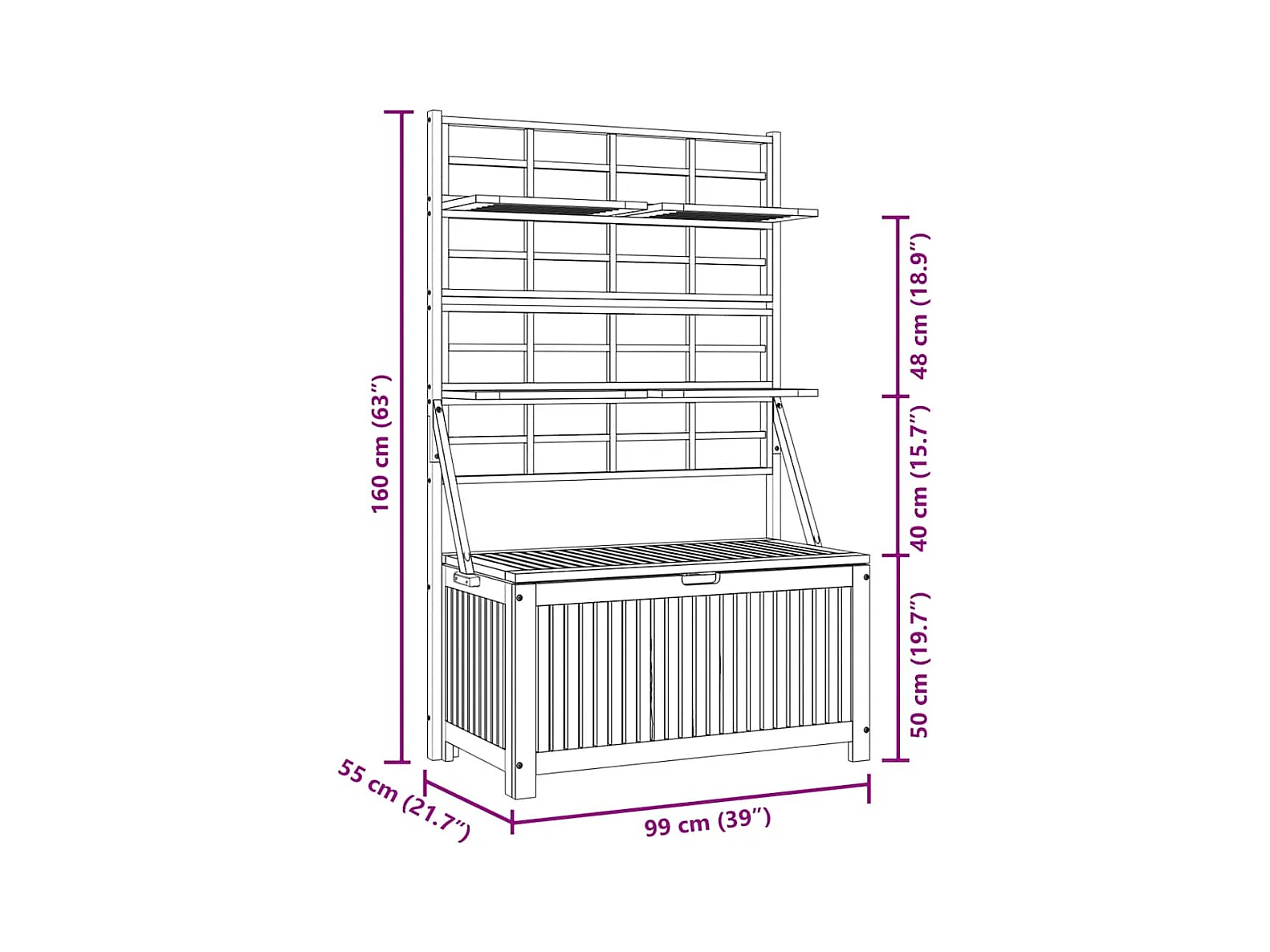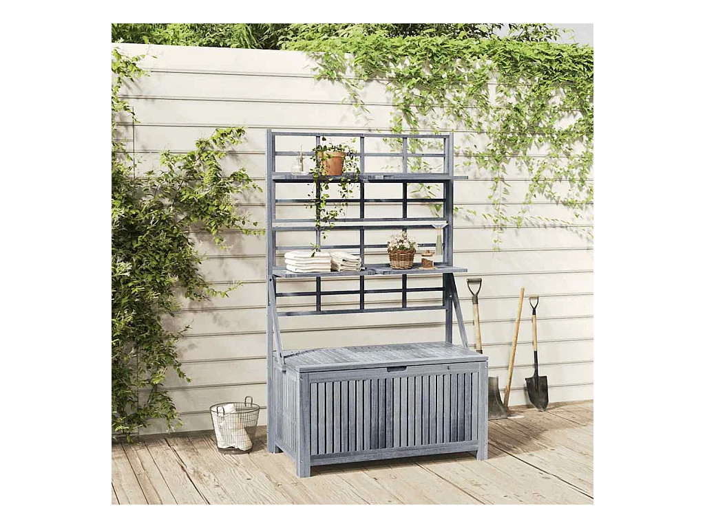 Contenitore con Traliccio Grigio 99x55x160 cm in Legno Acacia