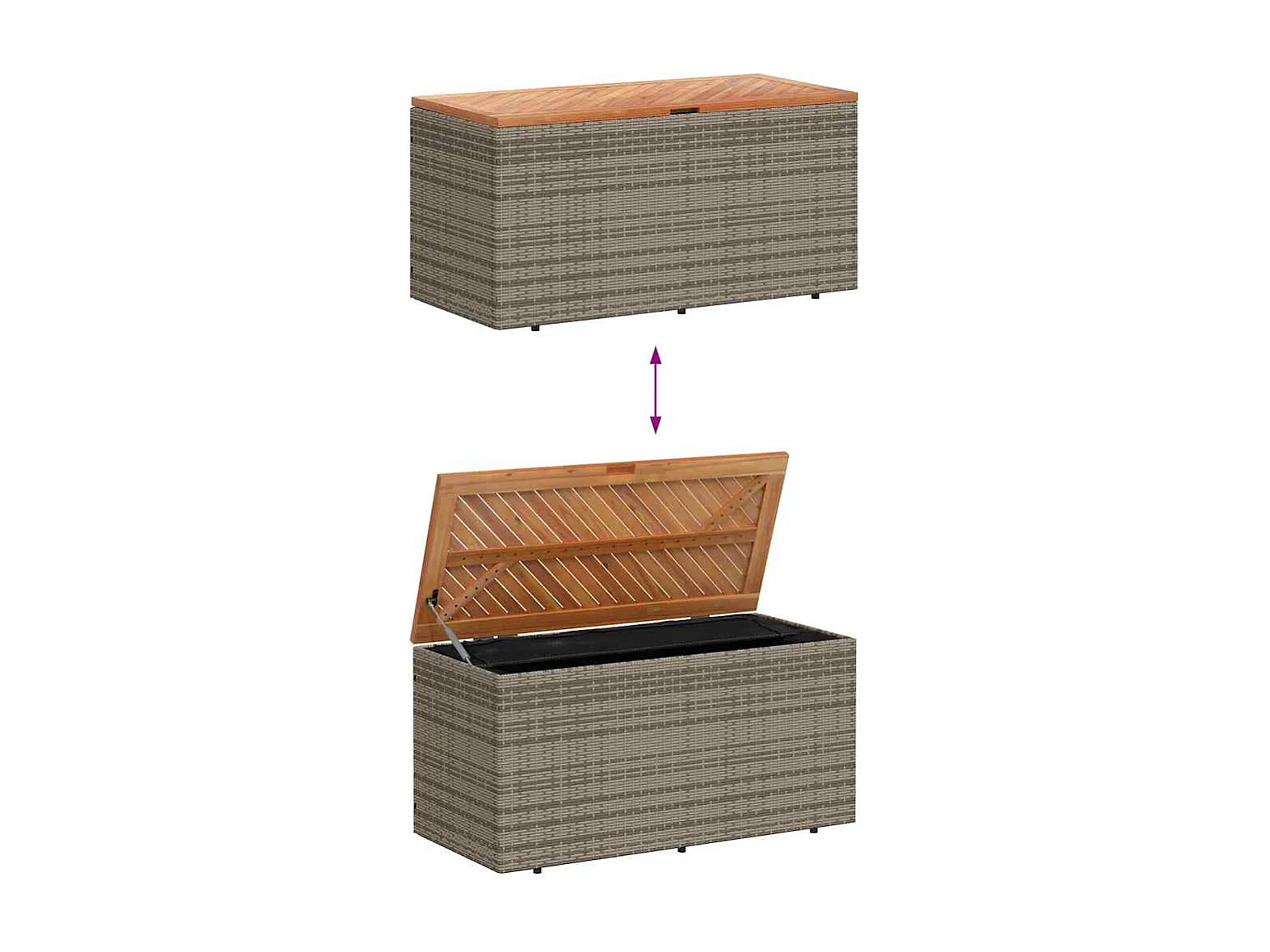 Contenitore da giardino grigio in resina intrecciata e legno di acacia