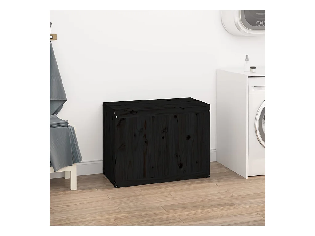 Contenitore per biancheria nero 88,5x44x66 cm in legno massello di pino