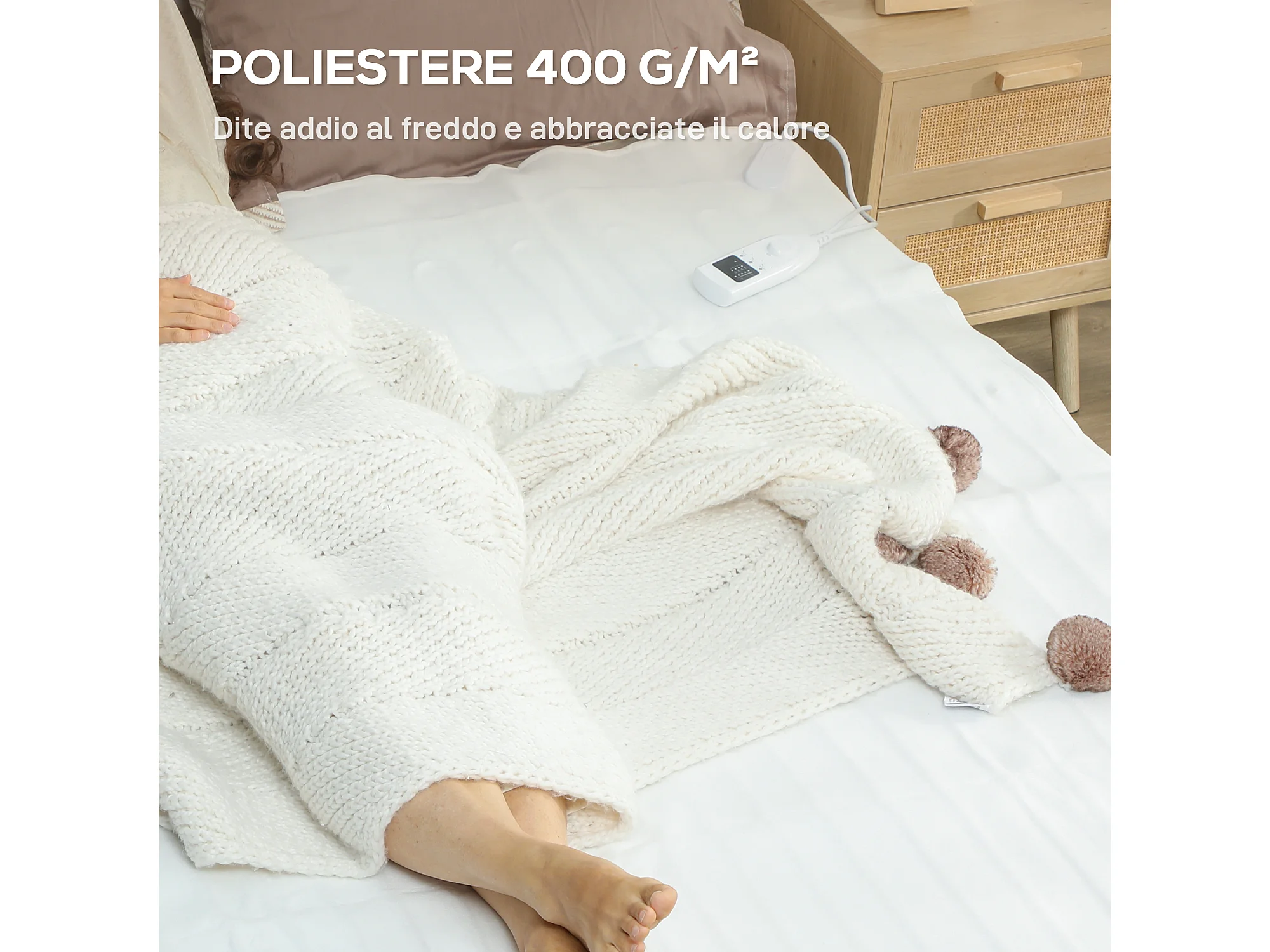 Coperta elettrica 160x140 cm con 5 livelli di calore bianco