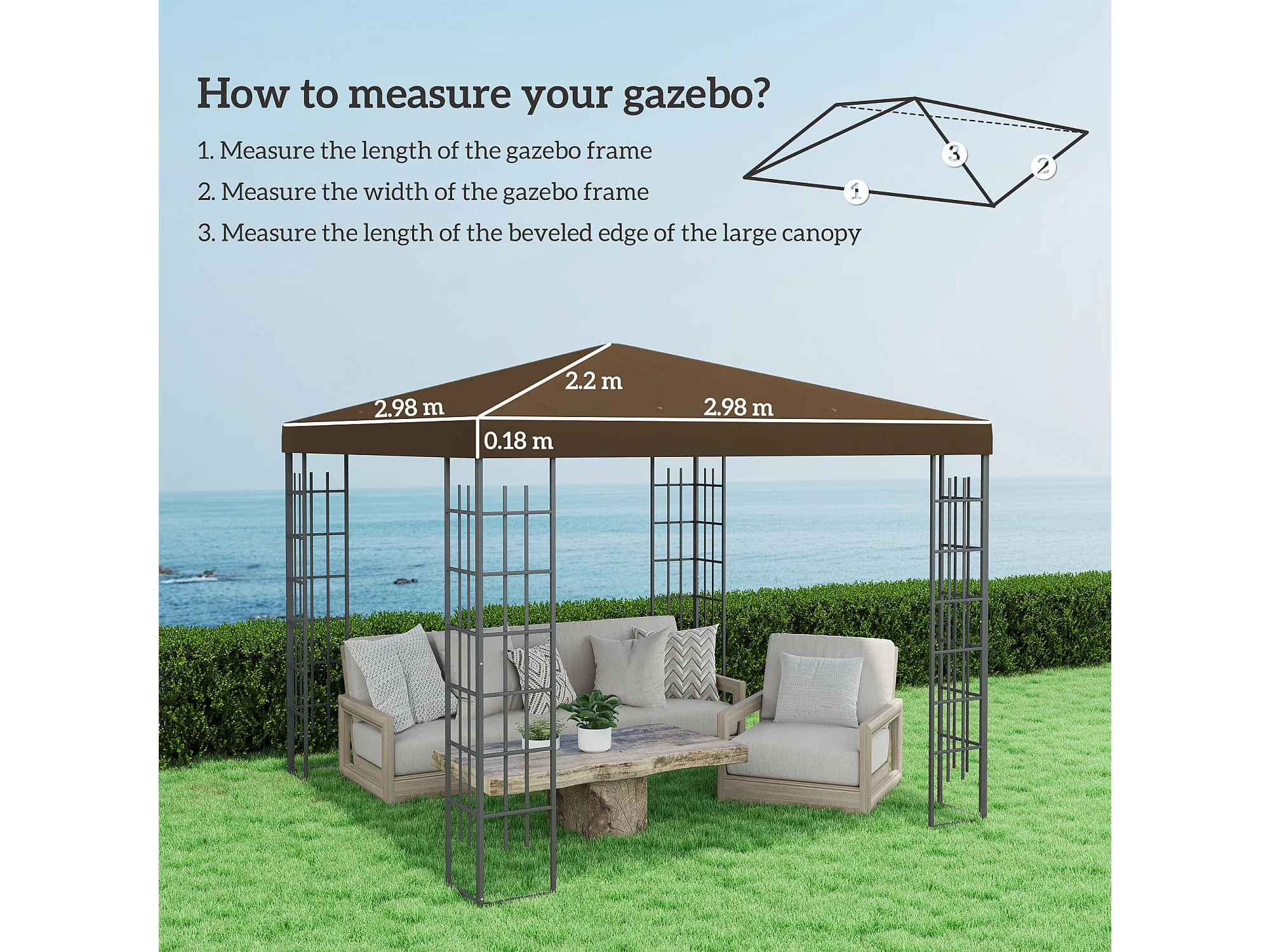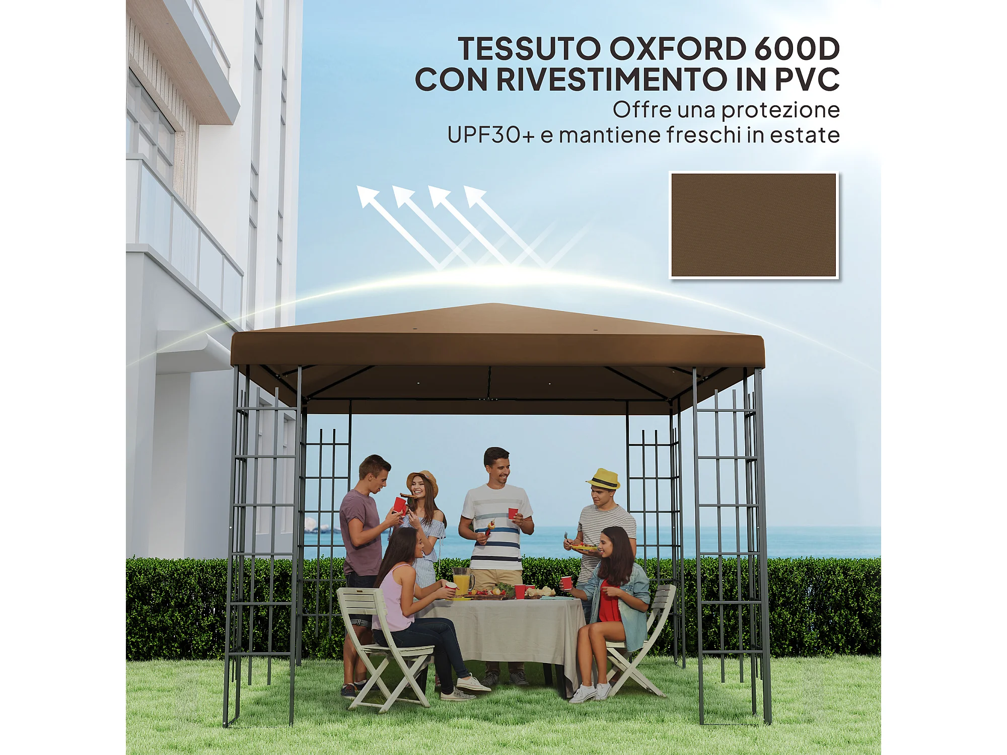 Copertura per gazebo 3x4 m a 2 livelli in tessuto oxford 600d caffè