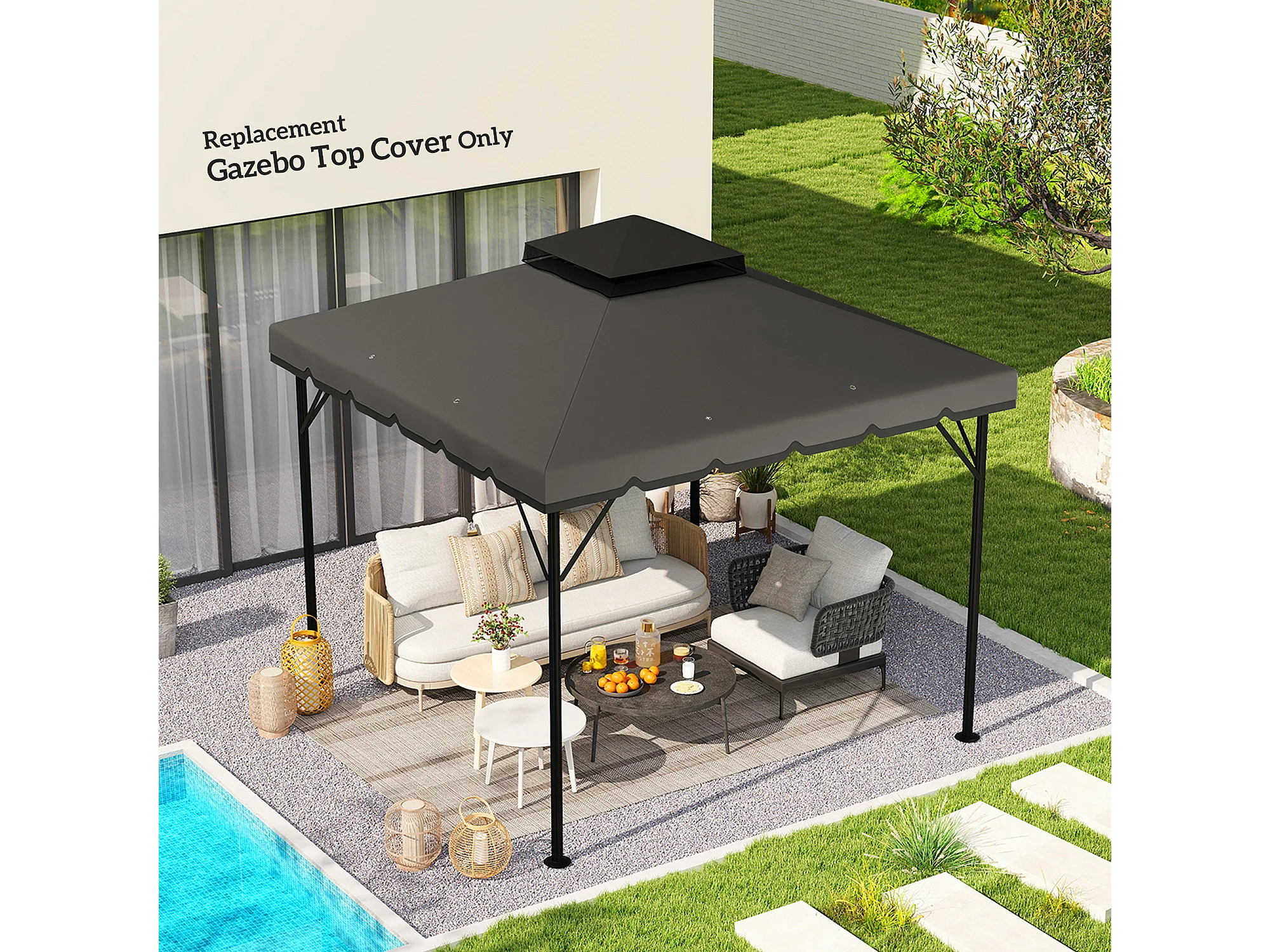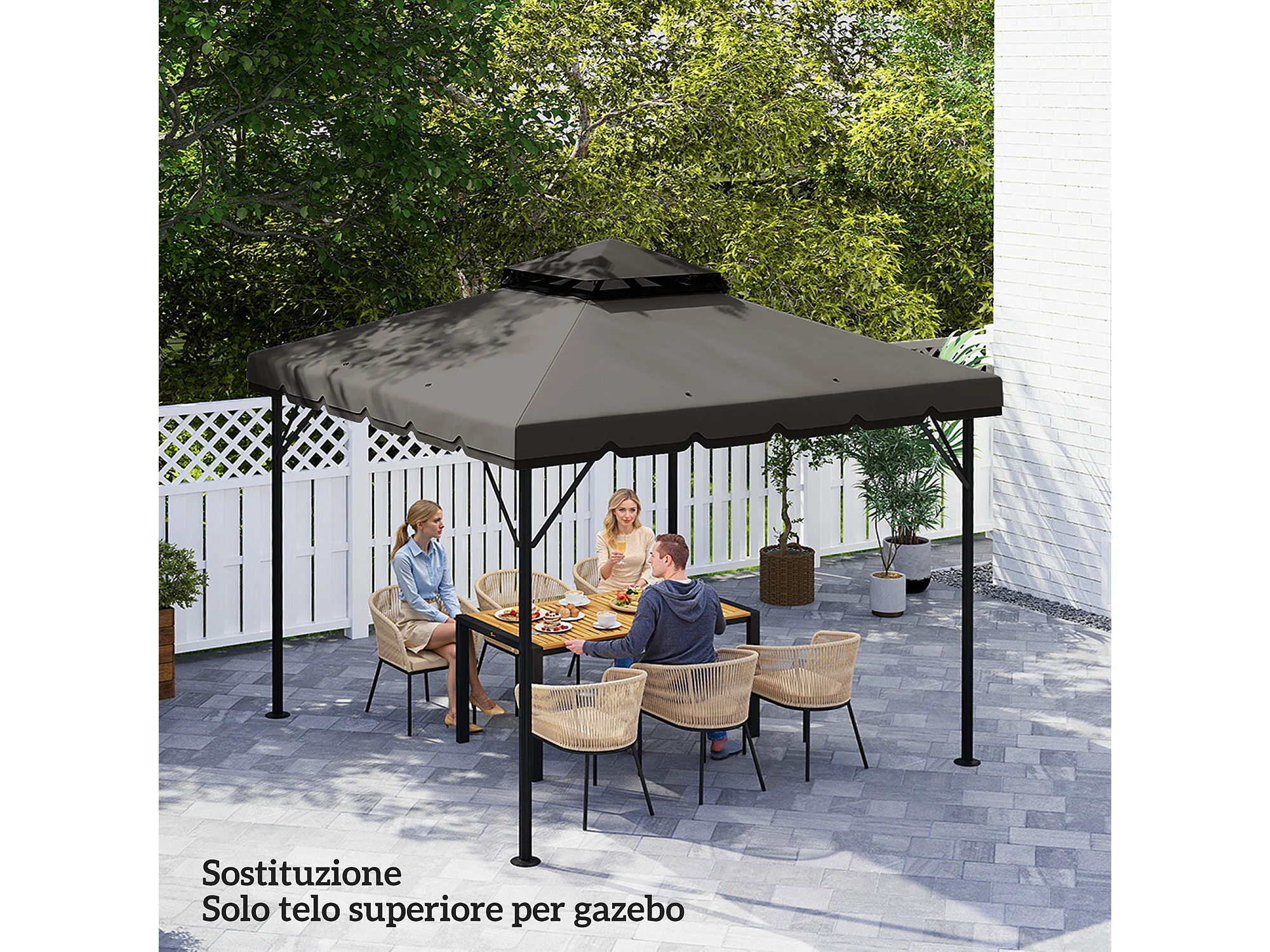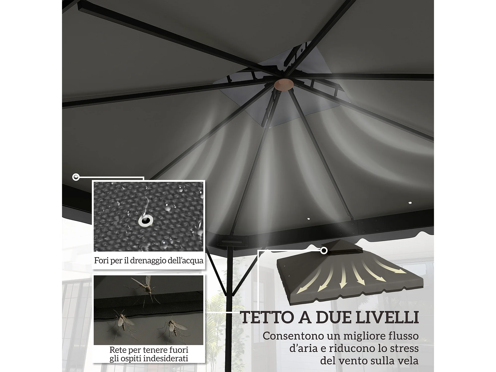 Copertura per gazebo 3x3m 2 livelli in poliestere grigio chiaro scuro