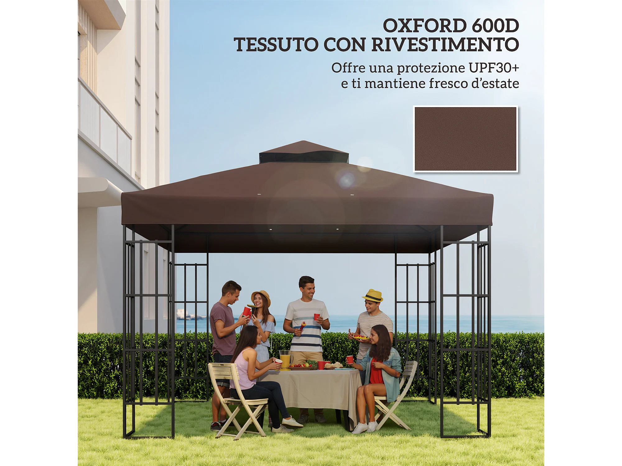 Copertura per gazebo da giardino 3x3 upf30+ a 2 livelli caffè