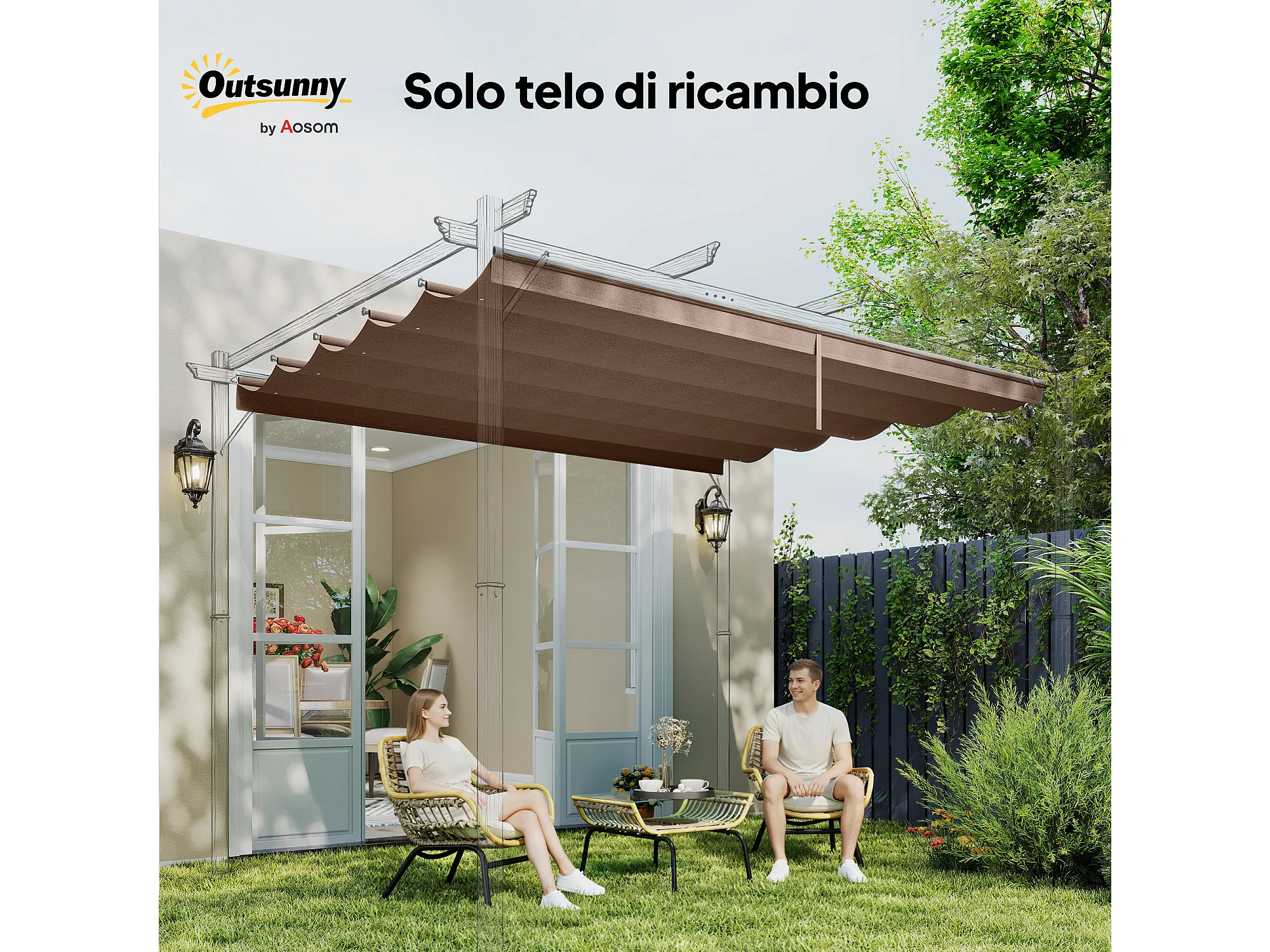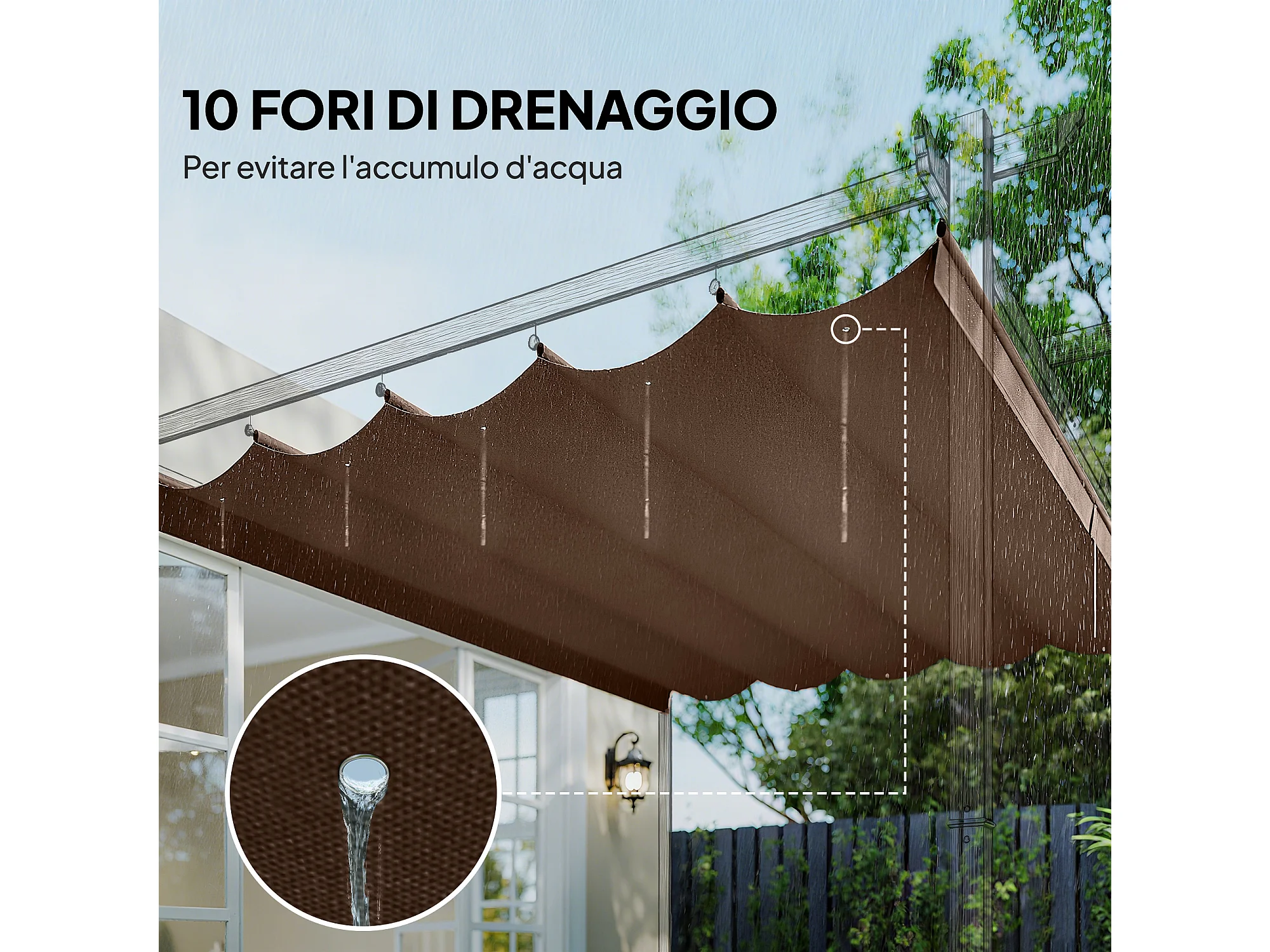 Copertura per gazebo pergola 4x3 m con 10 fori di drenaggio caffè