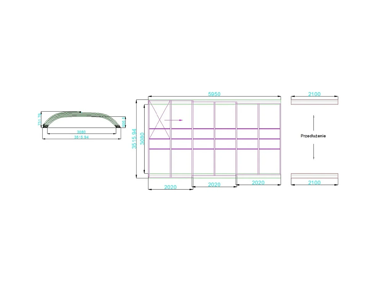 Copertura telescopica per piscina Horizon - 5.95x3.08 m - Policarbonato alveolare da 8 mm - per la piscina BAS7305 - ECO305 - ALTANKA