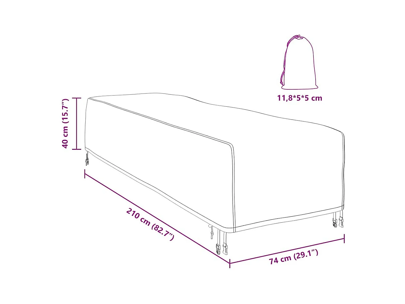 Copertura per chaise longue 12 occhielli 205x75x40/70 cm polietilene