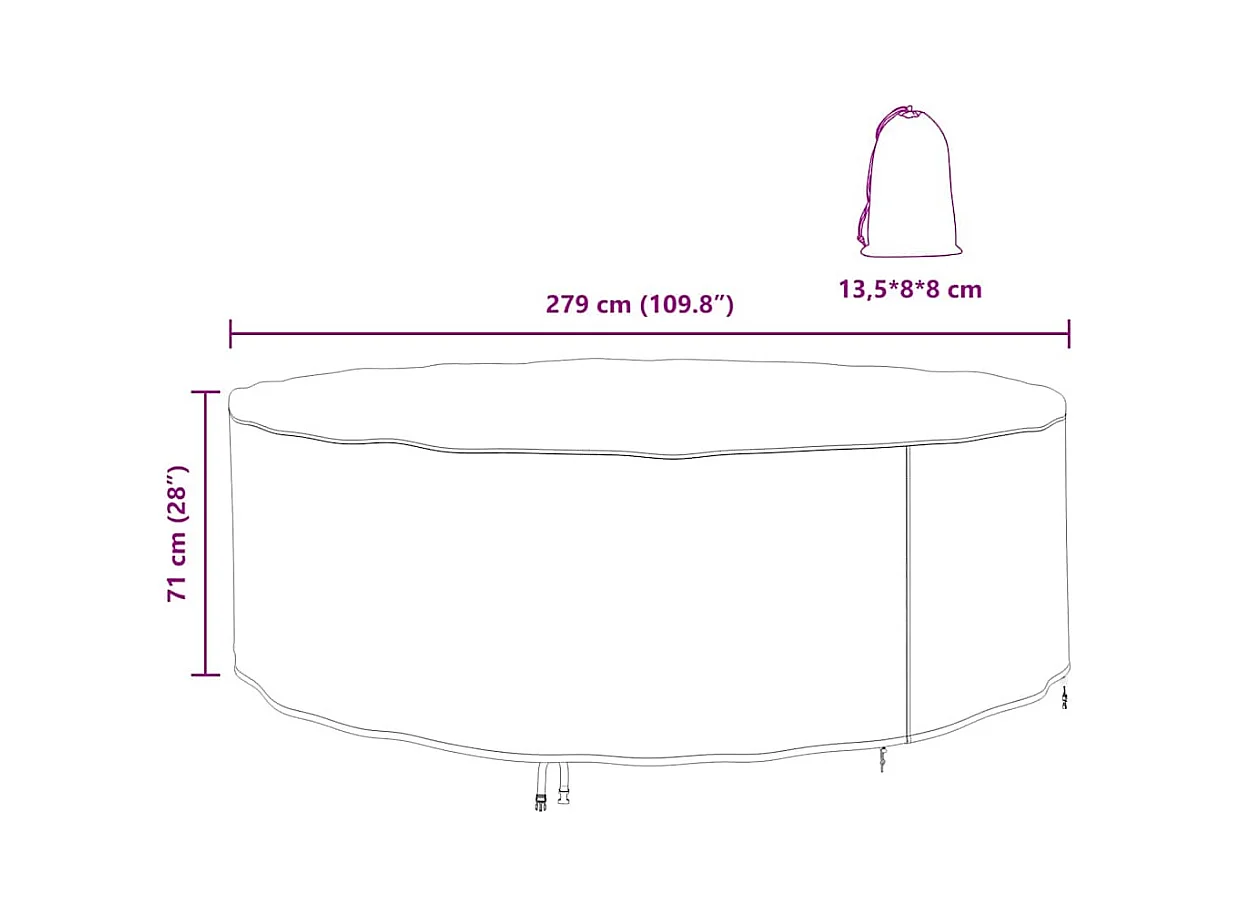 Copertura per mobili da esterno 279 x 279 x 71 cm tessuto 420D